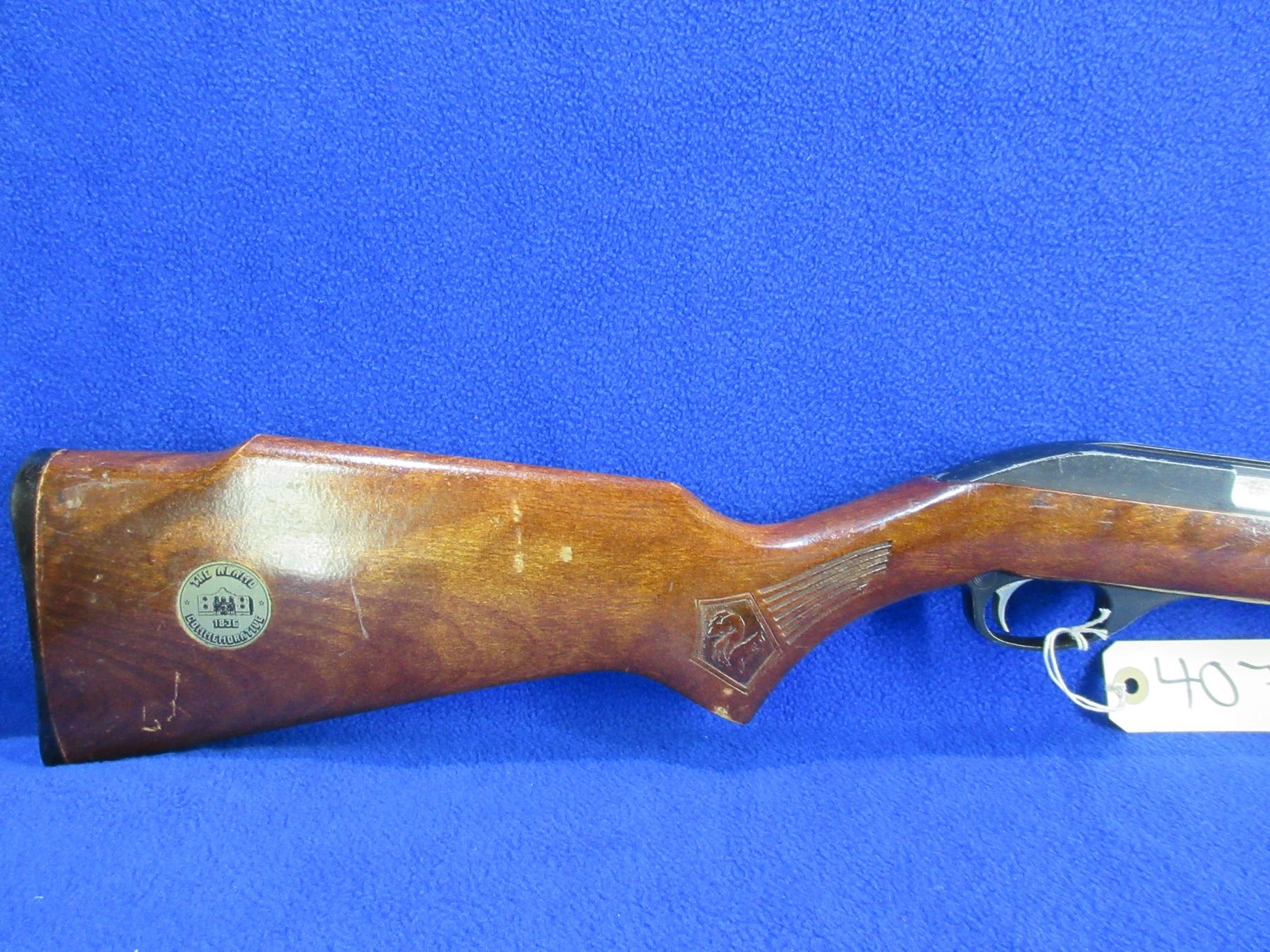 Non-Restricted - Marlin Model Limited Edition 6081 in 22 LR - Marked "The Alamo Commemorative 1836", this is a semi-auto rifle with tube magazine, action appears to be in good to very good working order. Barrel is 21", rifling is good to very good, bluing has some light rust and pitting, has both sights and integral rail, stock is good with usage marks, butt plate good, trigger guard is broken behind the back screw. Ser # OZ013806
