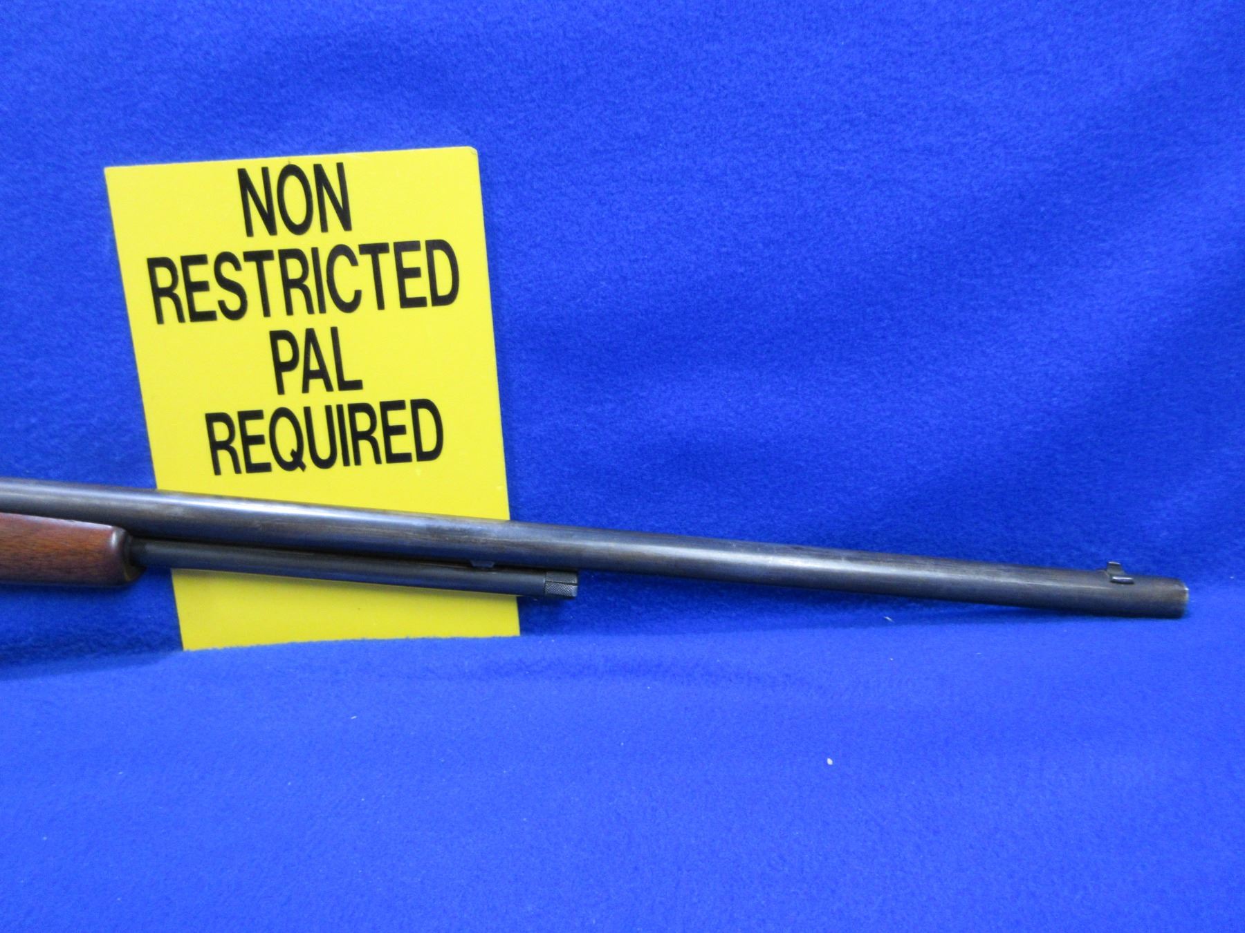 Non-Restricted - Marlin Model No. 29 in 22 Cal - This pump action take down rifle with tube magazine appears to be in good working order. Barrel is 23", rifling is good to very good, bluing is turning grey, has both sights, stock is good to very good with usage marks, forearm is good but has a name lightly etched in, metal butt plate good. Ser # None
