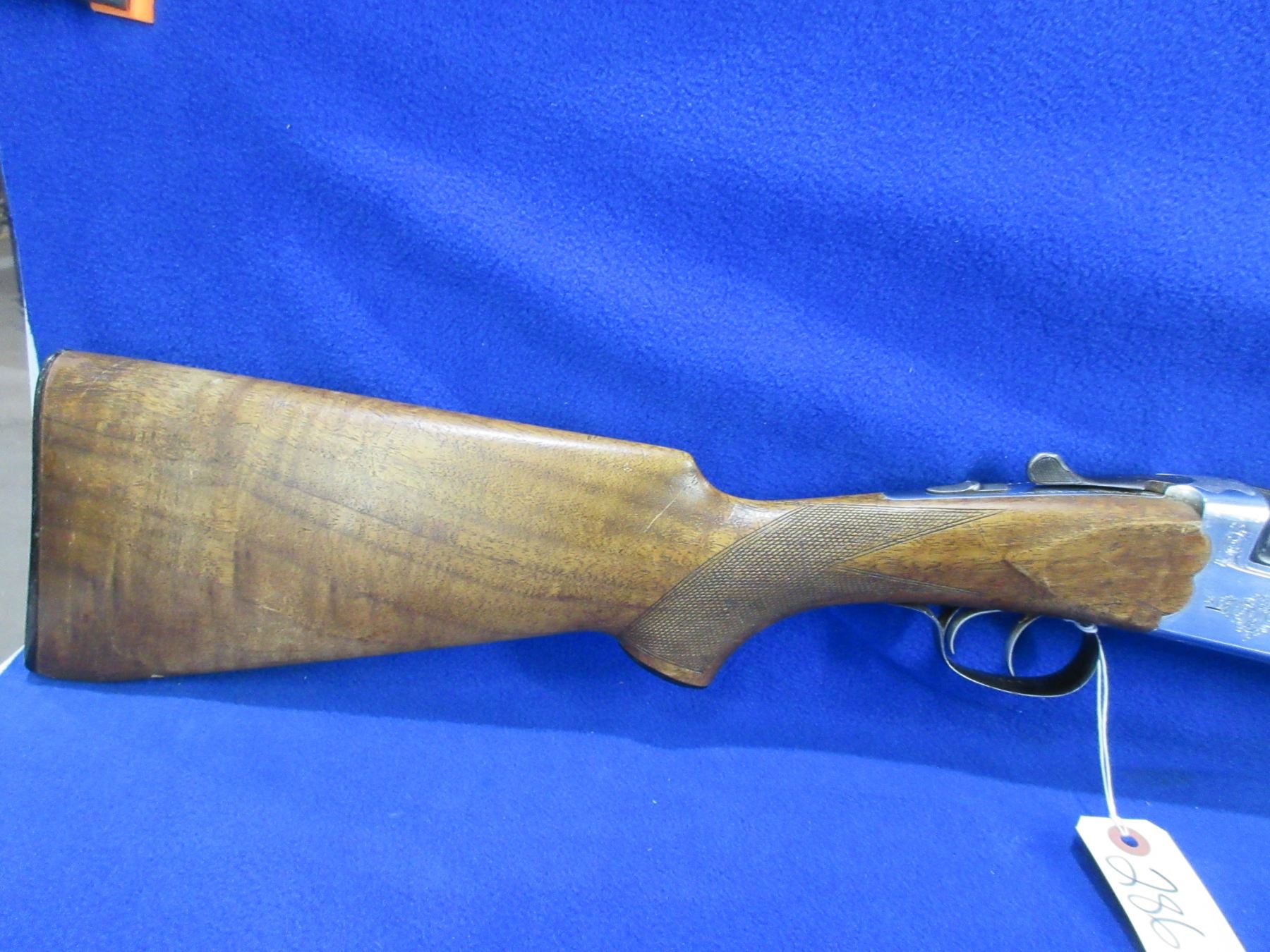 Non-Restricted - Marocchi O/U in 12 Ga. 2 3/4" - This over/under shotgun appears to be in good to very good working order. Vent rib barrels are 28", bottom barrel has a small dent on the edge of the barrel, bores are good to very good, bluing is fair to good, bead front sight is missing, stock is good but has large chip on the toe, forearm has a large piece missing on the left side, butt plate is chipped on the toe. Ser # 10868