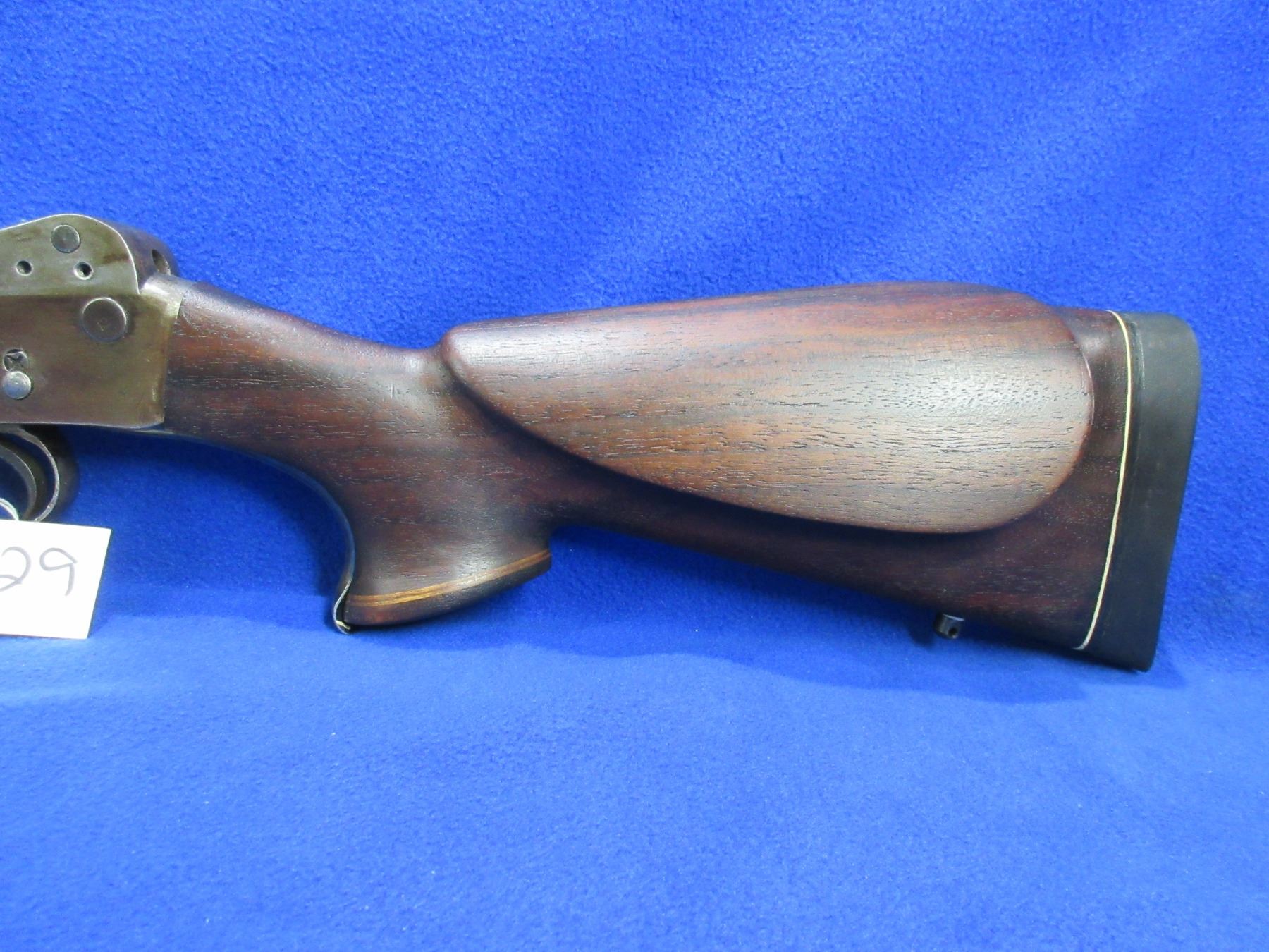 Non-Restricted - Martini-Henry in 45-70 Gov't - This custom single shot falling block rifle appears to be in good working order. Barrel is 26", rifling is good to very good, barrel and action are browned and in fair to good condition, has front sight, no rear sight but has a Weaver style base, stock and forearm are good to very good with usage marks, rubber recoil pad good, comes with swivel studs. Ser # none