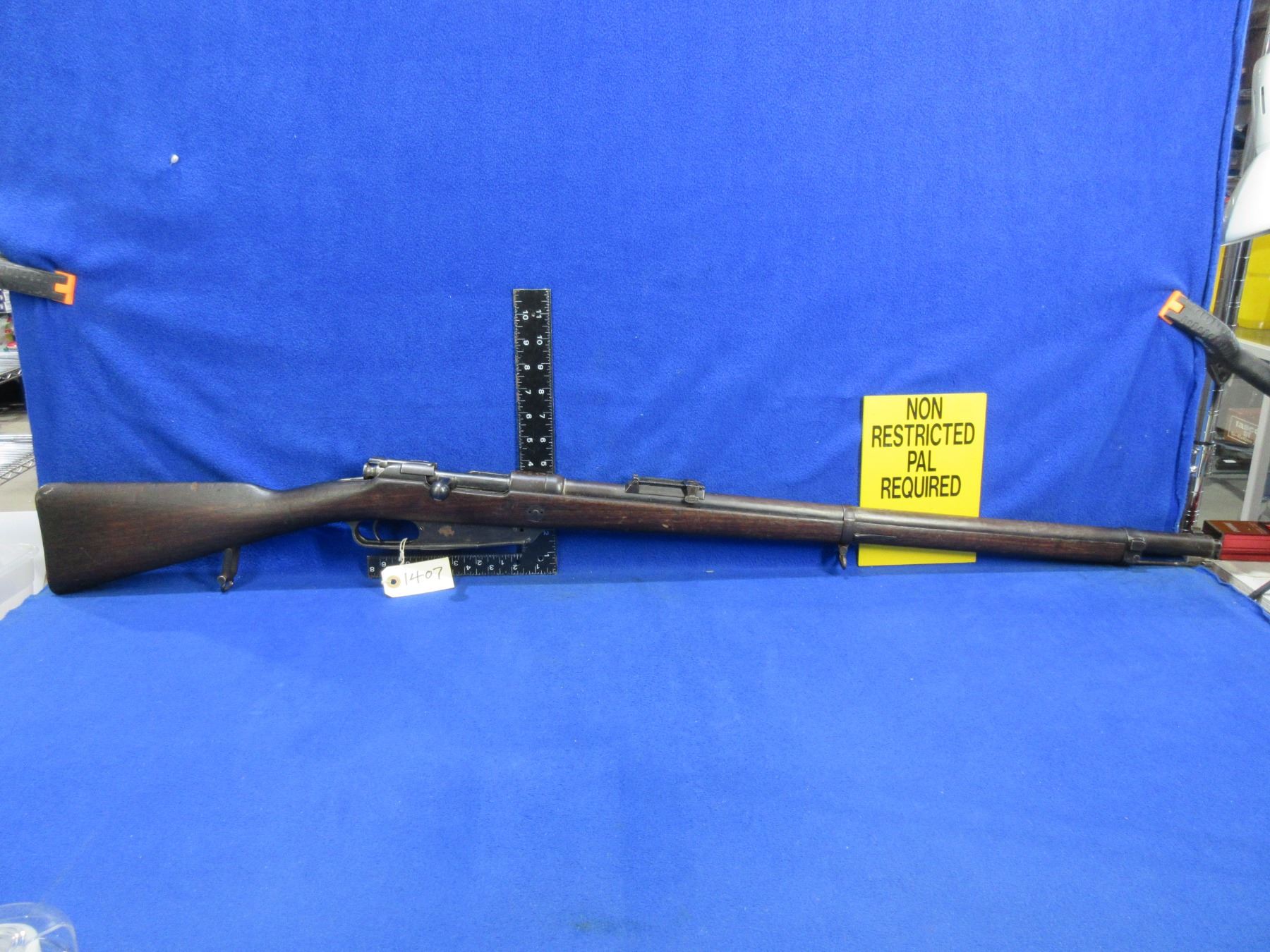 Non-Restricted - Mauser 1888 Gewehr appears to be in 7.92x57 Mauser - This bolt action rifle with internal magazine using stripper clips appears to be in good to very good working order. Barrel is 29 1/2", rifling is dark, bluing is turning brown, has both sights, stock is good to very good for age, metal butt plate good, comes with swivels, comes with cleaning rod. Ser #8024