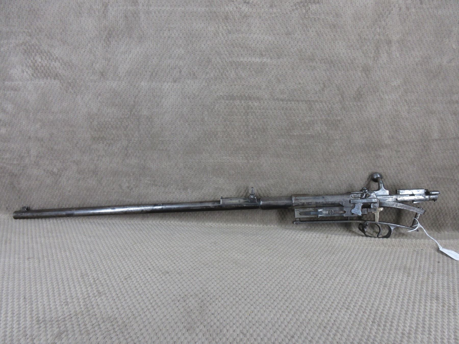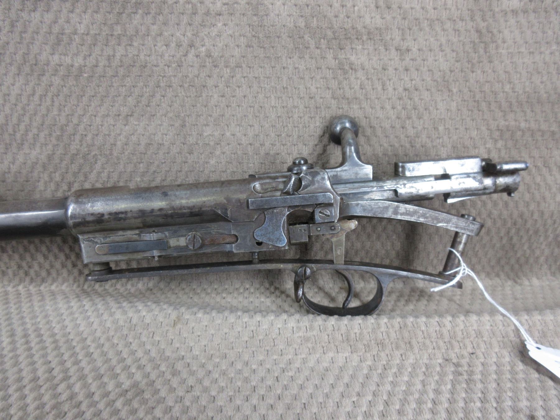 Non-Restricted - Mauser Model 71 Action Only in 43 Mauser - This bolt action rifle appears to be in working order. Barrel is 24 1/2", rifling is good but dark, bluing is brown or missing, has both sights.