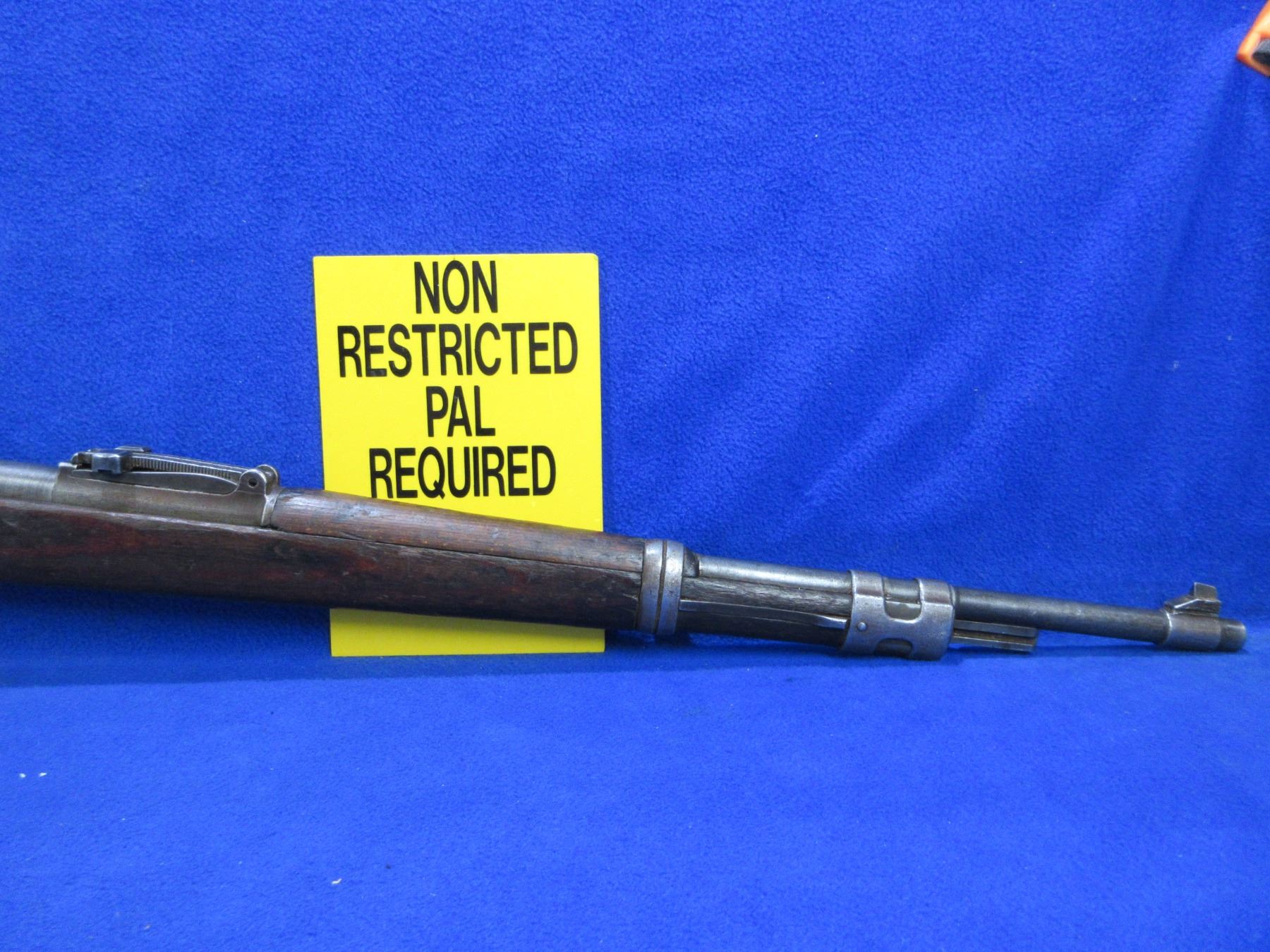Non-Restricted - Mauser Model K98 in 7.92X57 - This bolt action rifle with internal magazine appears to be in working order but safety is not working. Barrel is 24", rifling is poor, bluing is mostly gone, has both sights, full wood stock is cracked in the wrist area, metal butt plate good. Ser #5834B