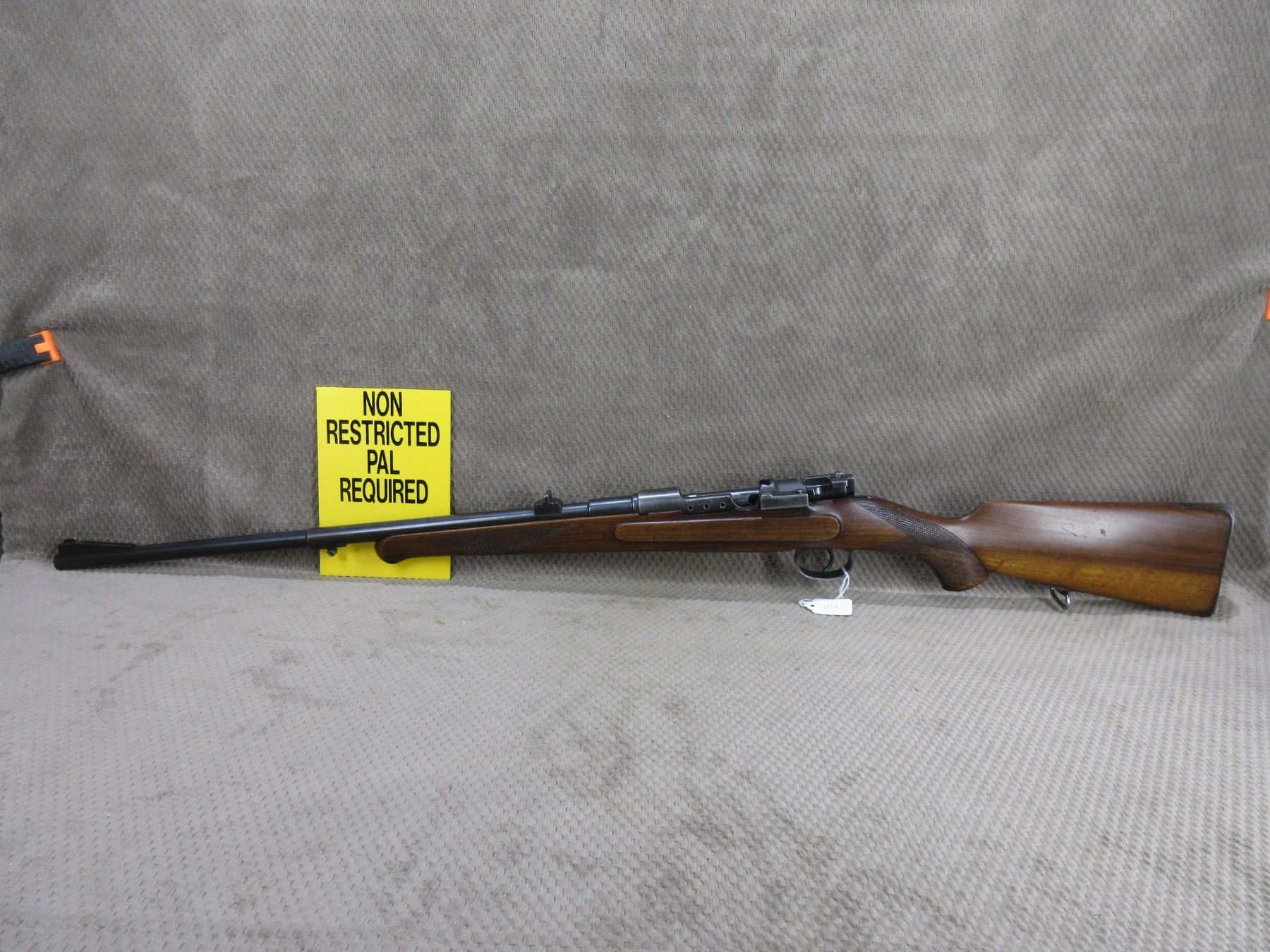 Non-Restricted - Mauser Sporter in 7.62 x 63 (30-06) - This bolt-action rifle with floor-plate magazine appears to be in good to very good working order. Barrel 23 1/2", bluing is good, rifling is good, has both sights, stock good with usual marks, has pistol grip added, metal butt plate good, Ser # 181334