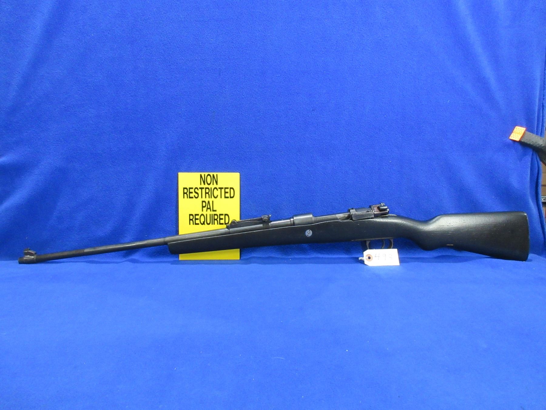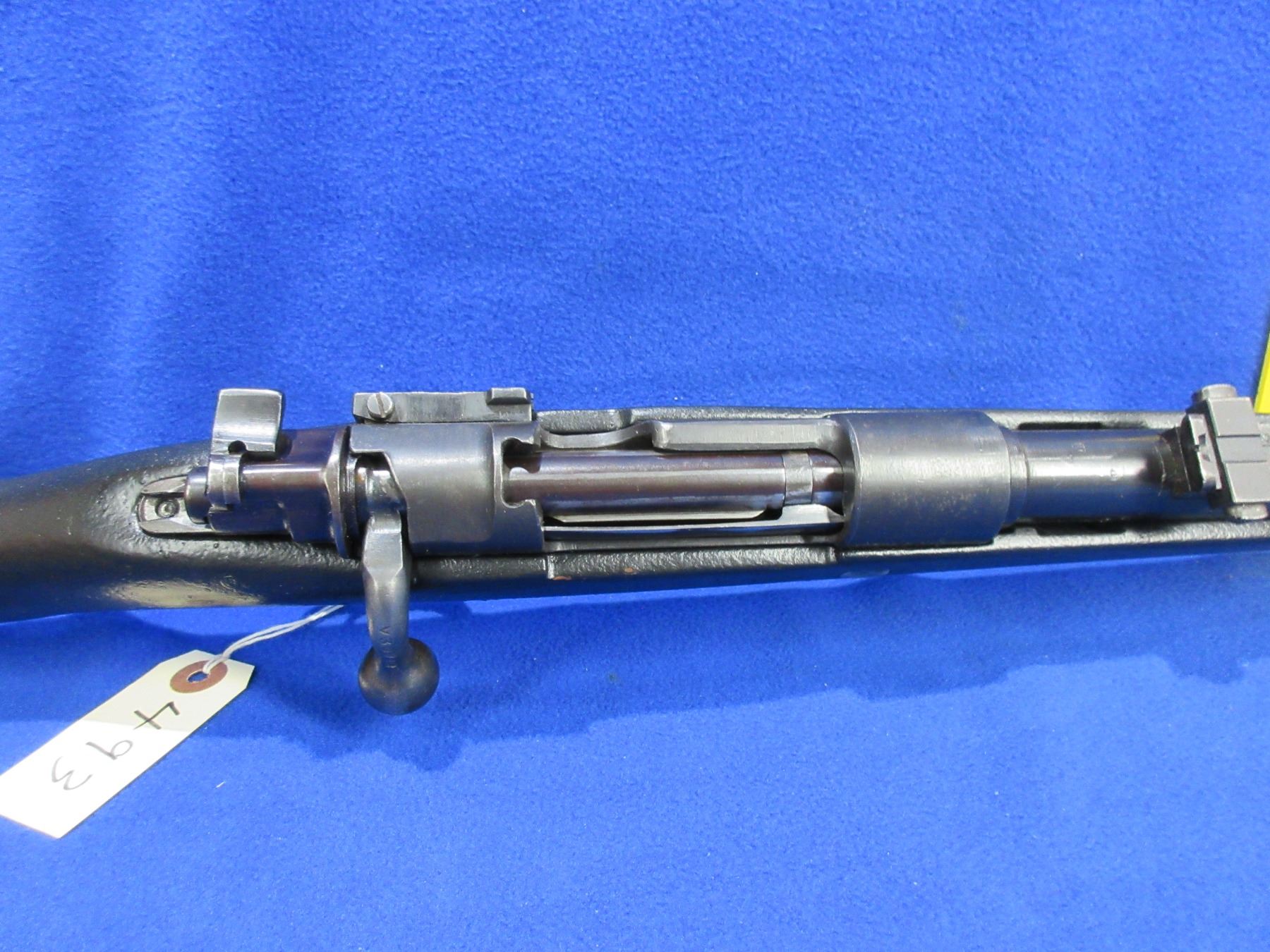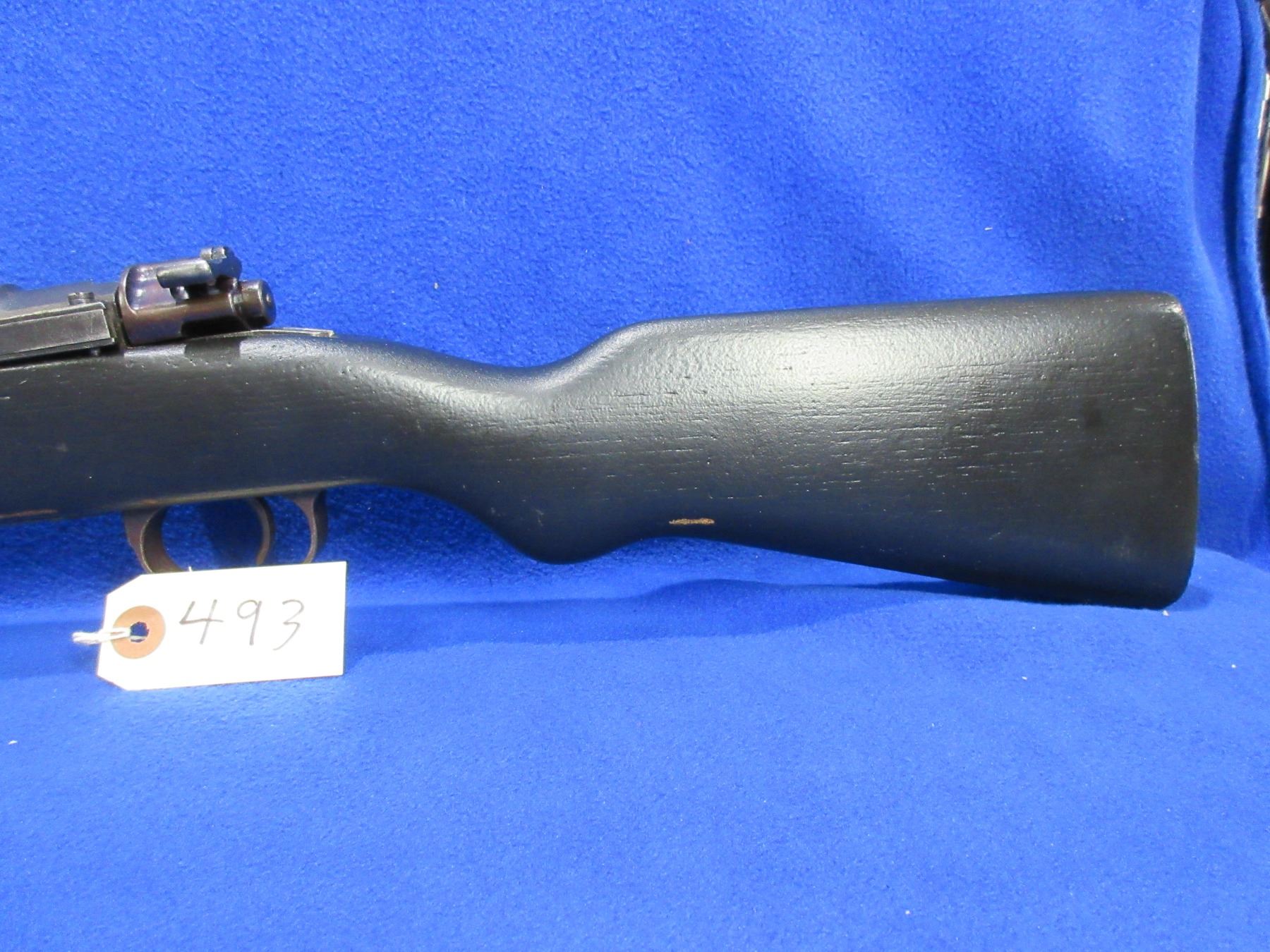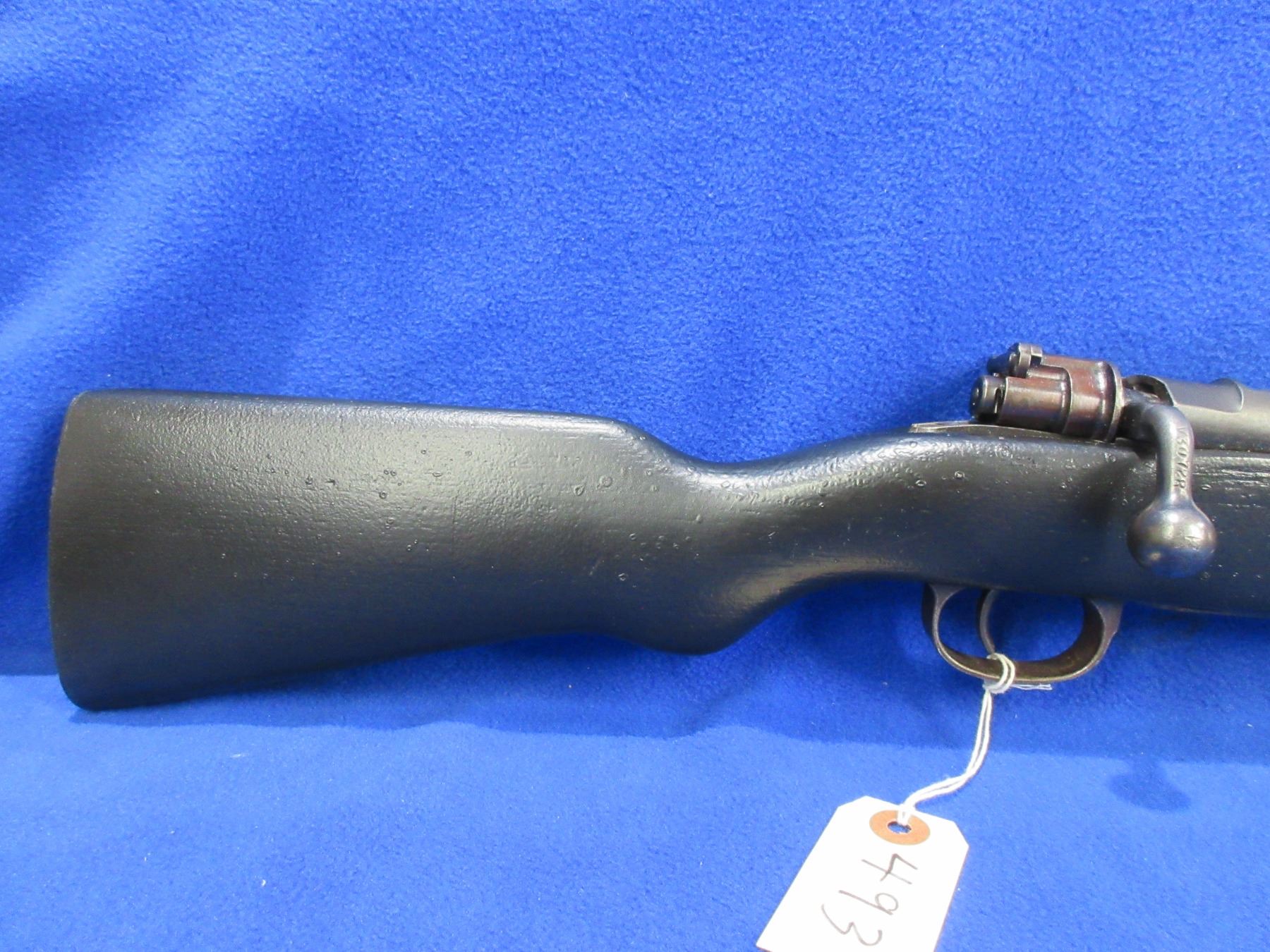 Non-Restricted - Mauser in 8MM - This bolt action rifle with floor plate magazine appears to be in good to very good working order. Barrel is 23 1/2", rifling is good to very good, bluing is fair to good, has both sights, stock is cut to a youth length and is painted black. Ser # V30728