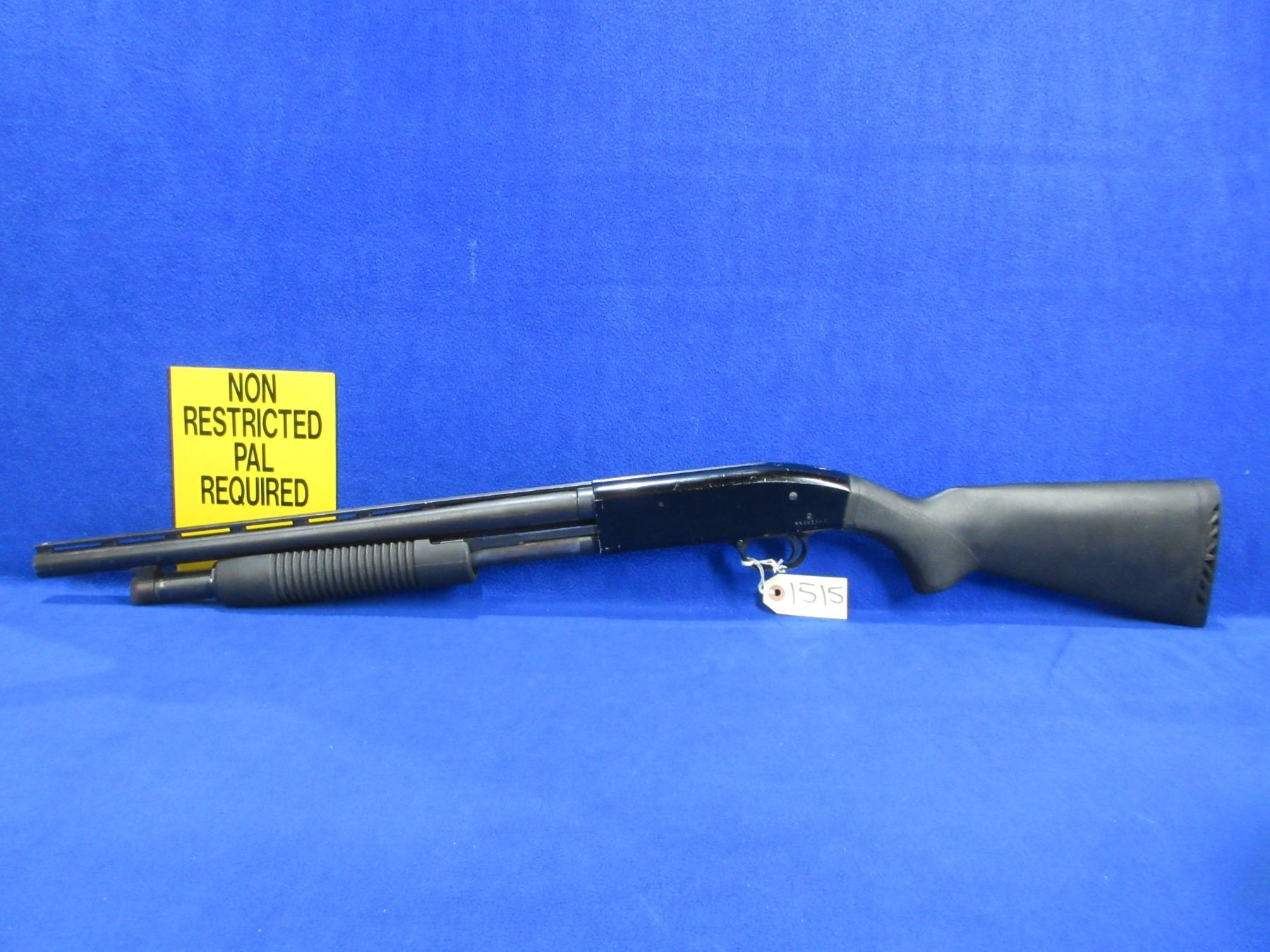 Non-Restricted - Maverick Model 88 in 12 Ga. 2 3/4" - This pump action shotgun appears to be in good to very good working order. Barrel is 18 1/4" and has been shortened, bore is good, bluing is good, bead front sight missing, synthetic stock is good, forearm is good, rubber recoil pad good. Ser # MV68154A