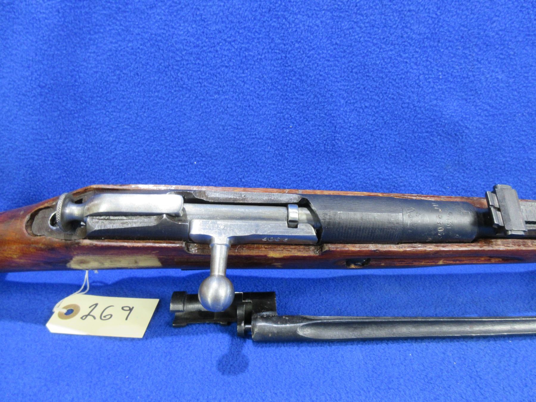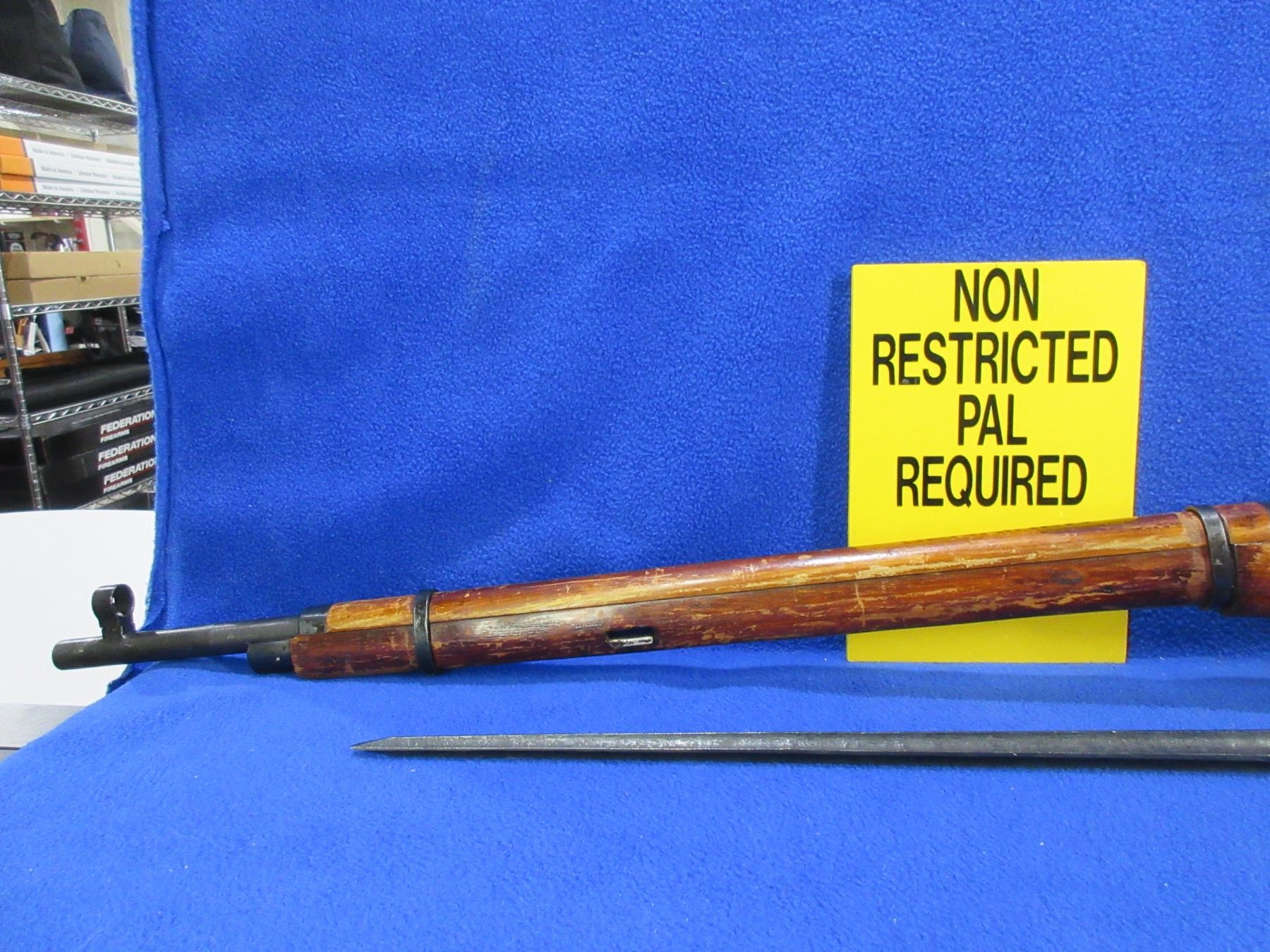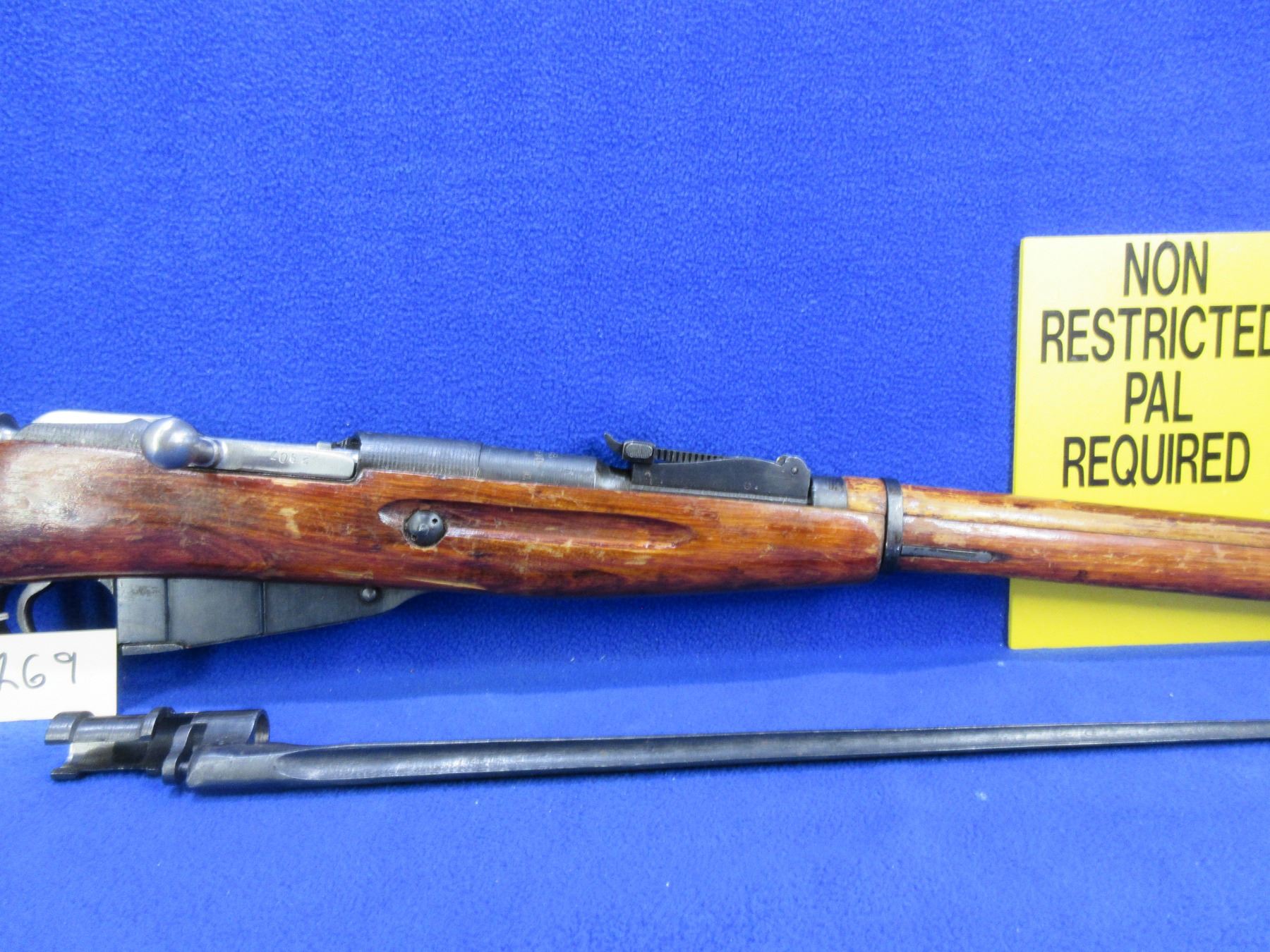 Non-Restricted - Mosin Nagant 1943 in 7.62X51 - This is a bolt action rifle with floor plate magazine, action appears to be in good to very good working order. Barrel is 28 1/2", rifling is good, bluing is good to very good, has both sights, stock is good with usage marks, length of pull is 13 1/2", metal butt plate, comes with bayonet. Appears numbers matching except bayonet. Ser # 2907