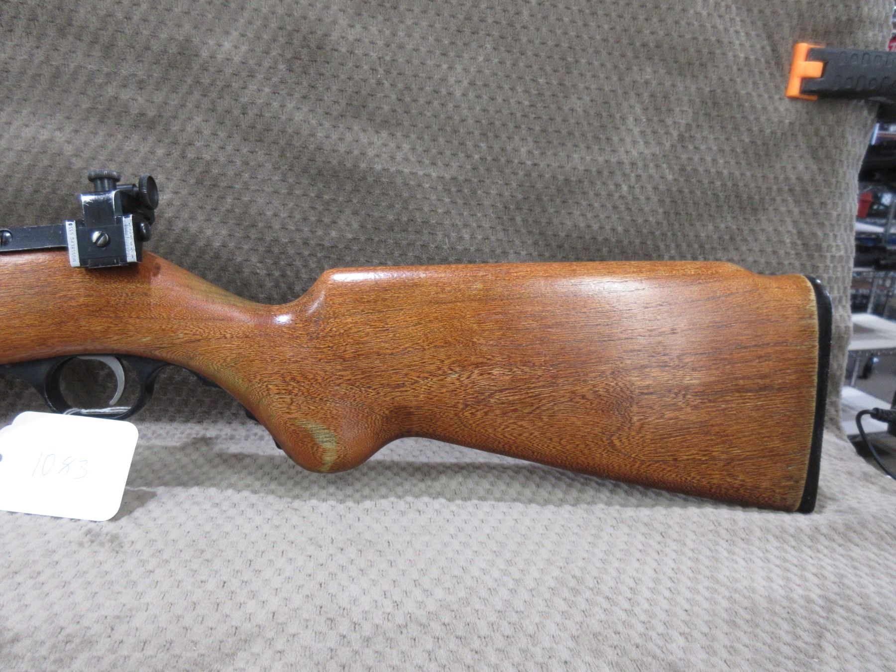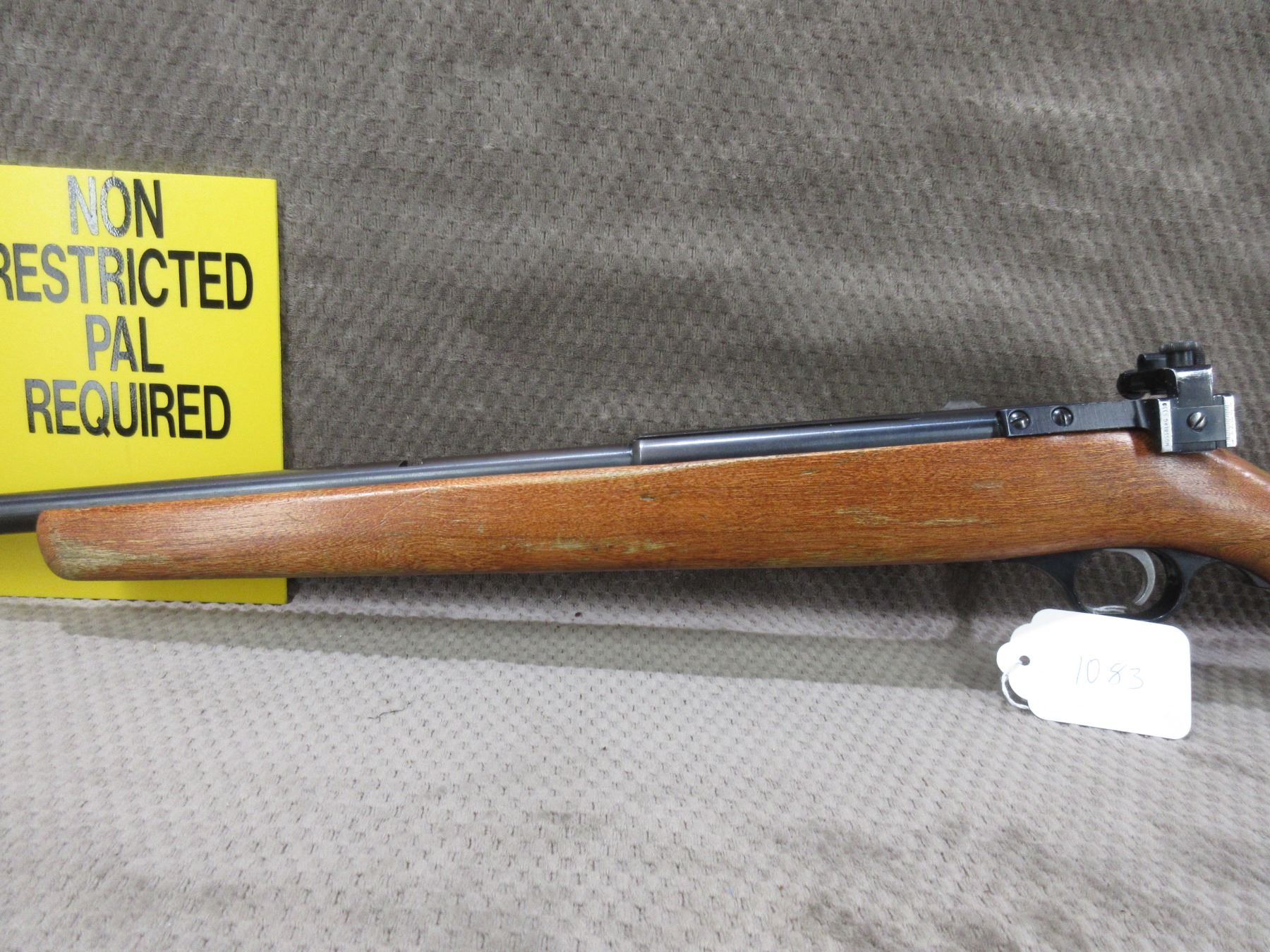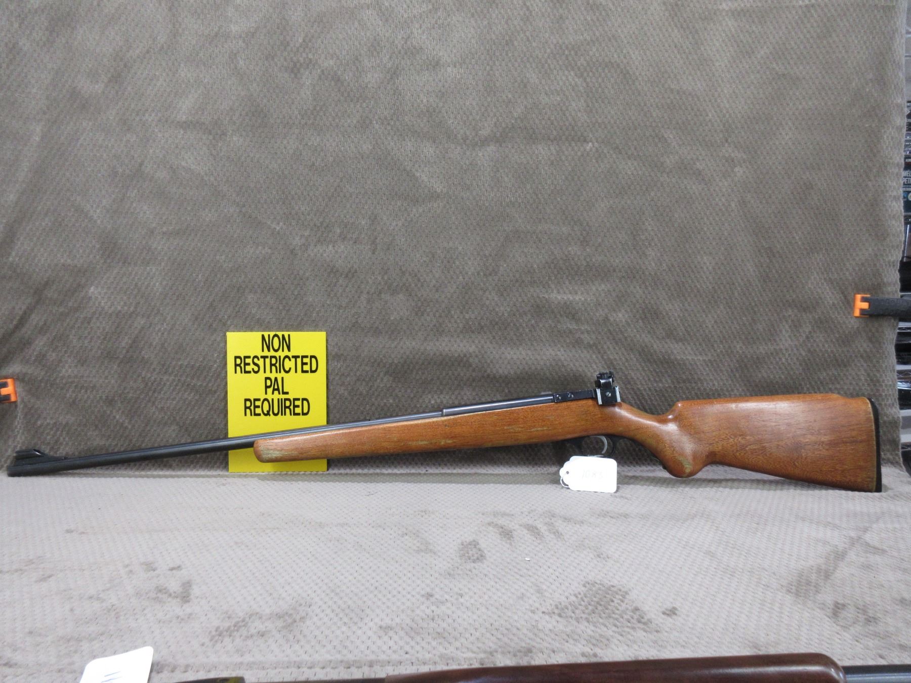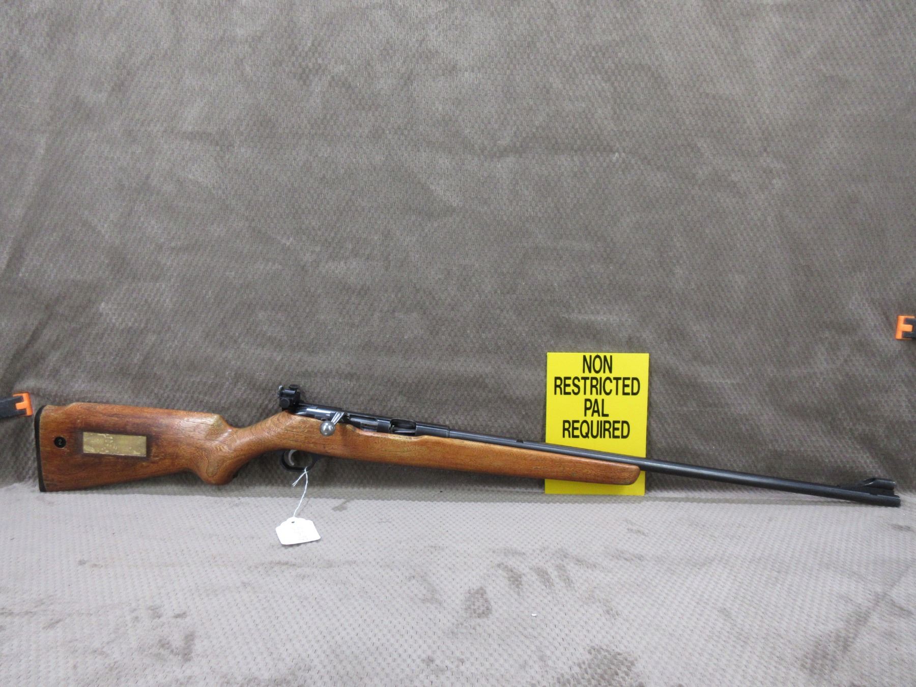 Non-Restricted - Mossberg Model 320KA in 22 LR - This single shot bolt-action rifle appears to be in good to very good working order. Barrel is 24", bluing is good but starting to grey, rifling is good to very good, has front sight, missing rear sight but has Mossberg S330 peep sight, stock fair as finish is coming off and inlaid plate is missing, has number 2 inlaid as well, butt plate good, Ser # None