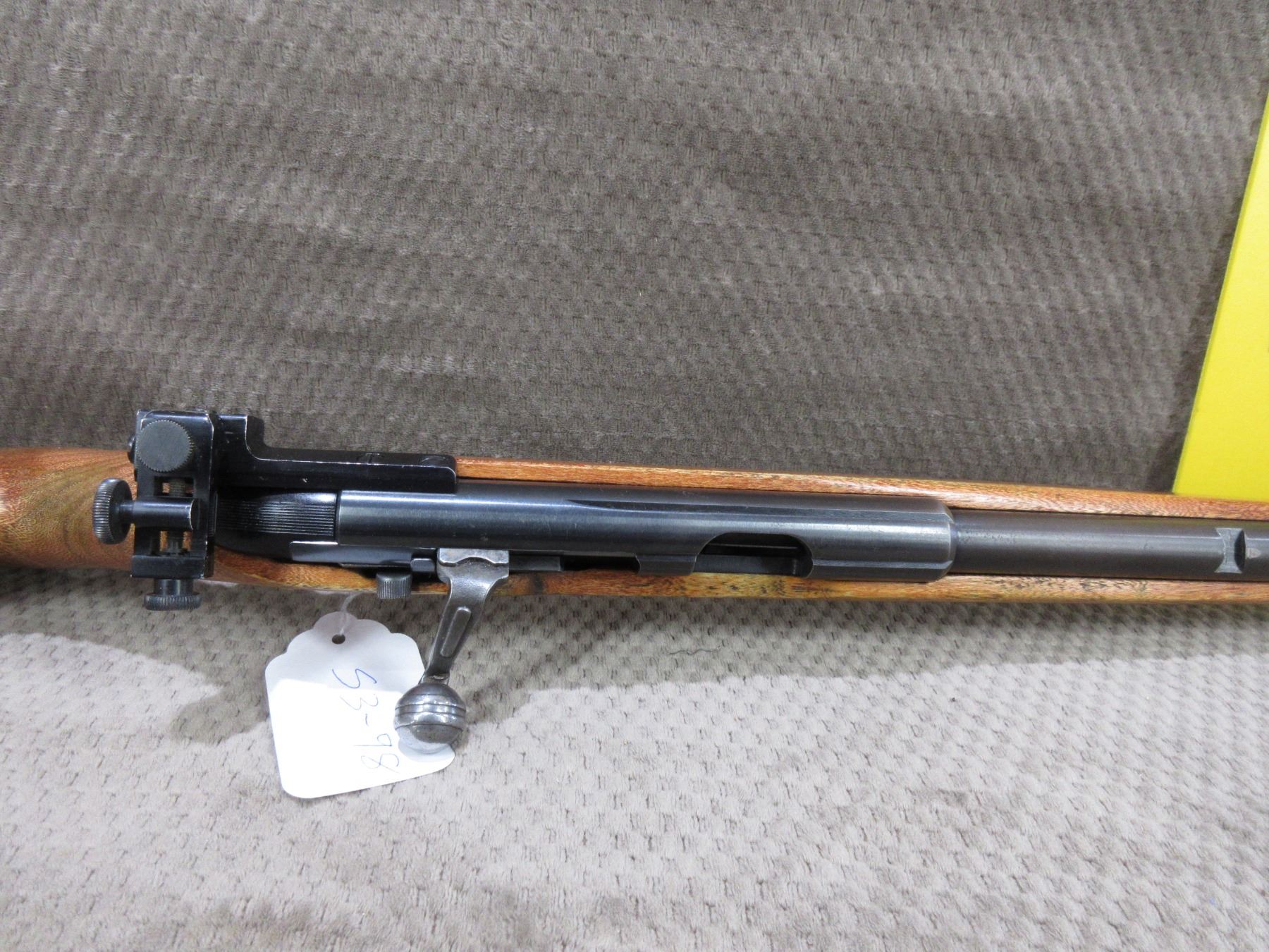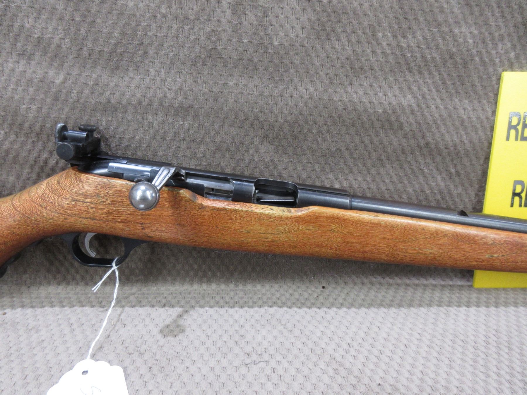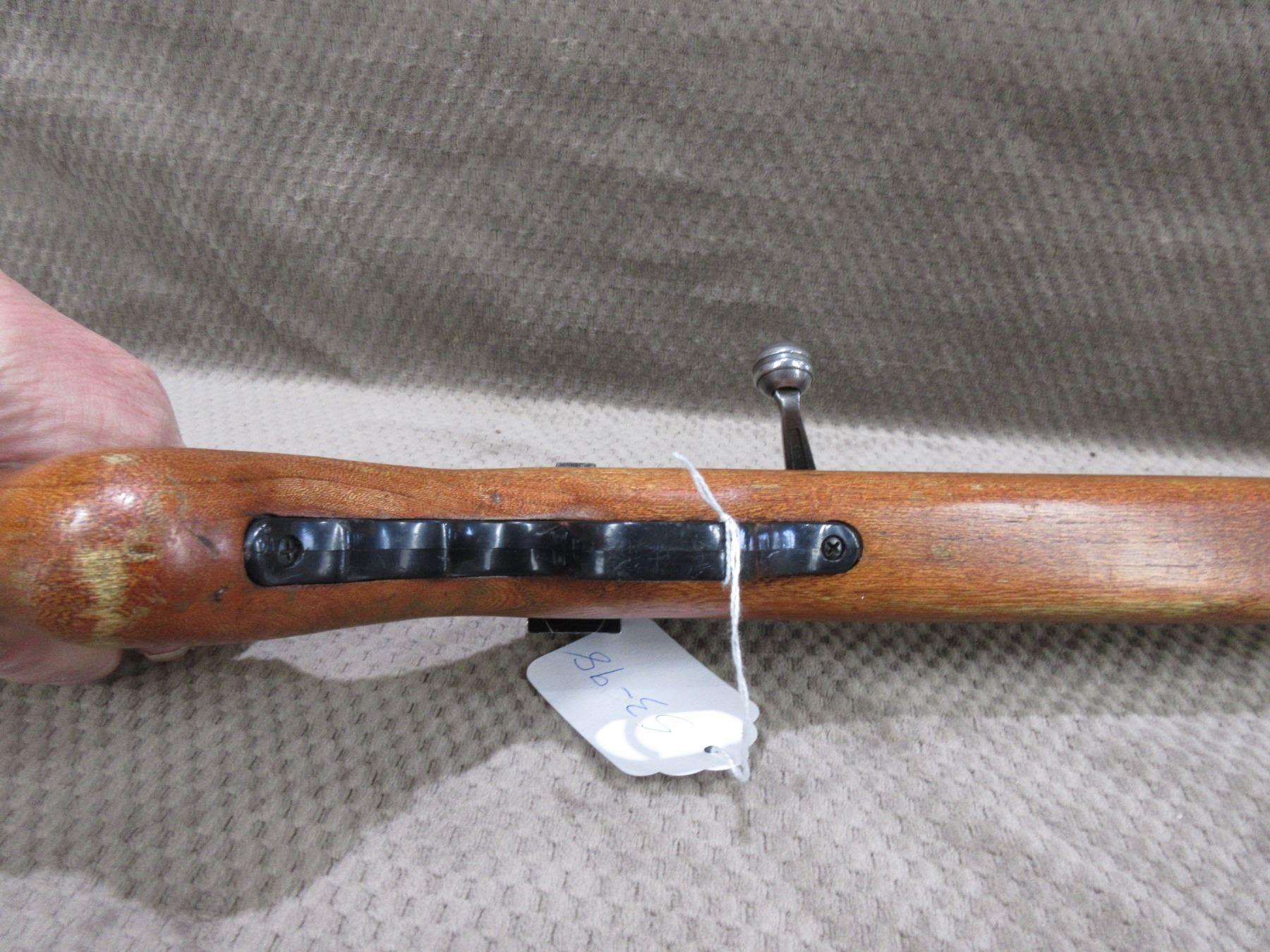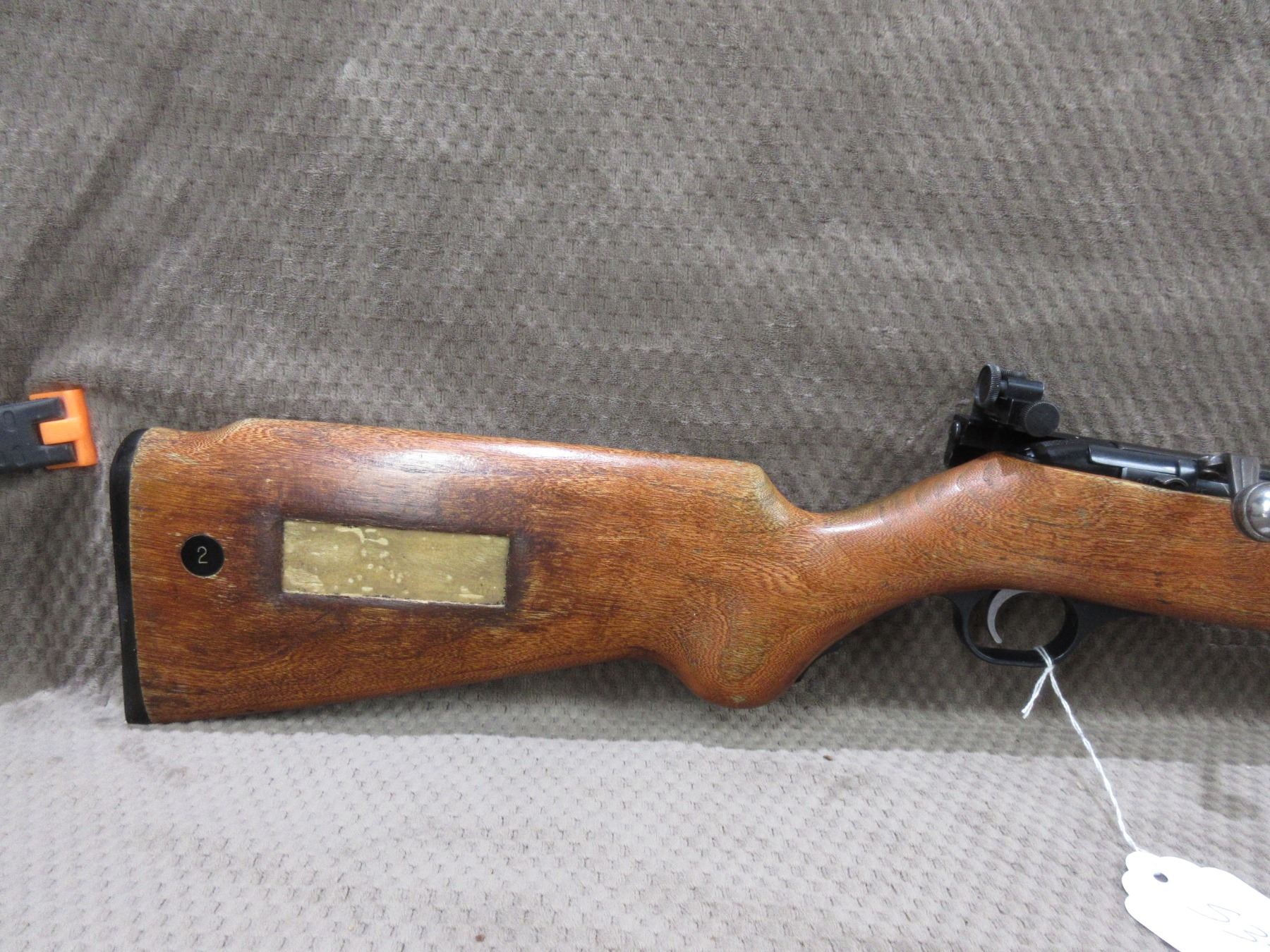 Non-Restricted - Mossberg Model 320KA in 22 LR - This single shot bolt-action rifle appears to be in good to very good working order. Barrel is 24", bluing is good but starting to grey, rifling is good to very good, has front sight, missing rear sight but has Mossberg S330 peep sight, stock fair as finish is coming off and inlaid plate is missing, has number 2 inlaid as well, butt plate good, Ser # None
