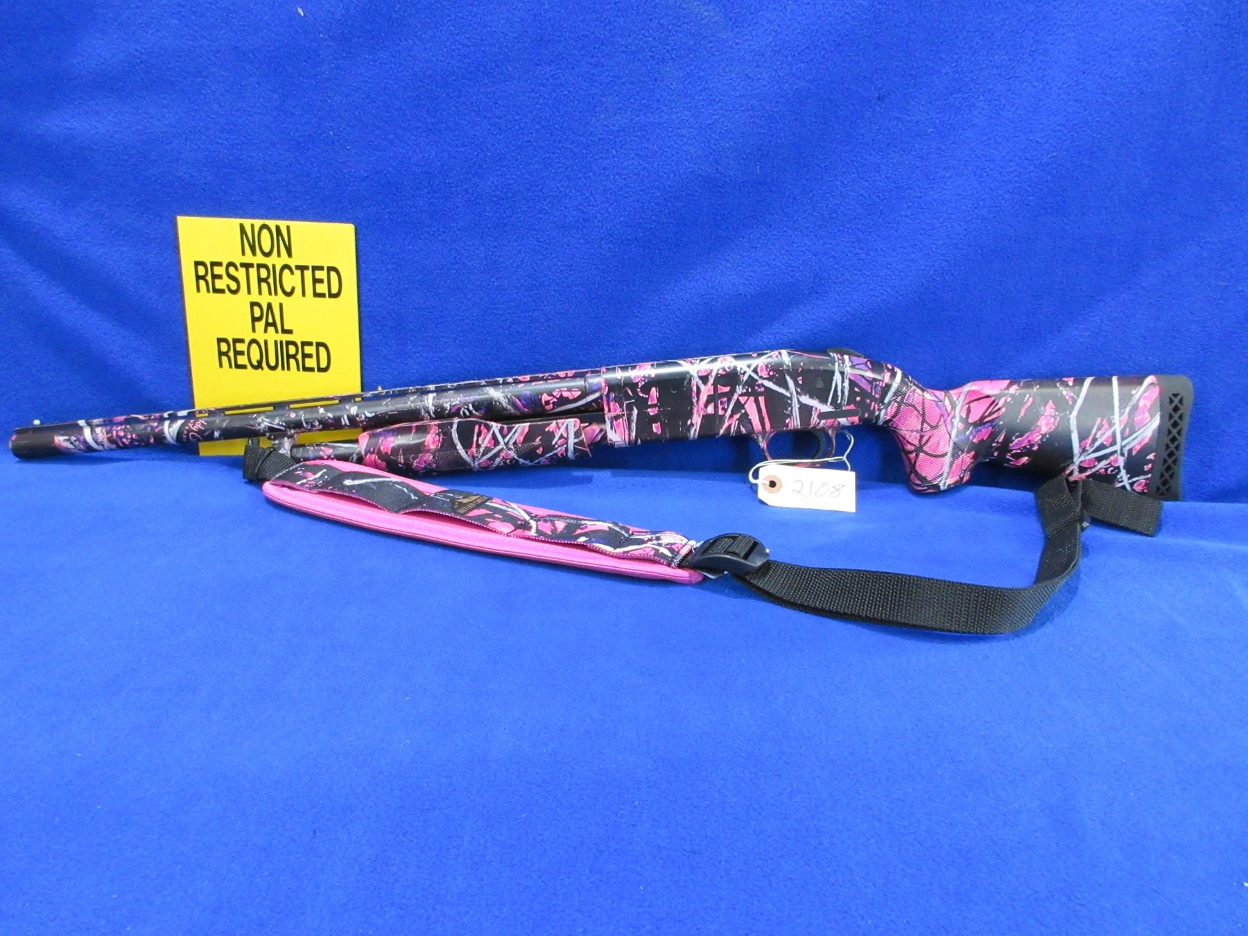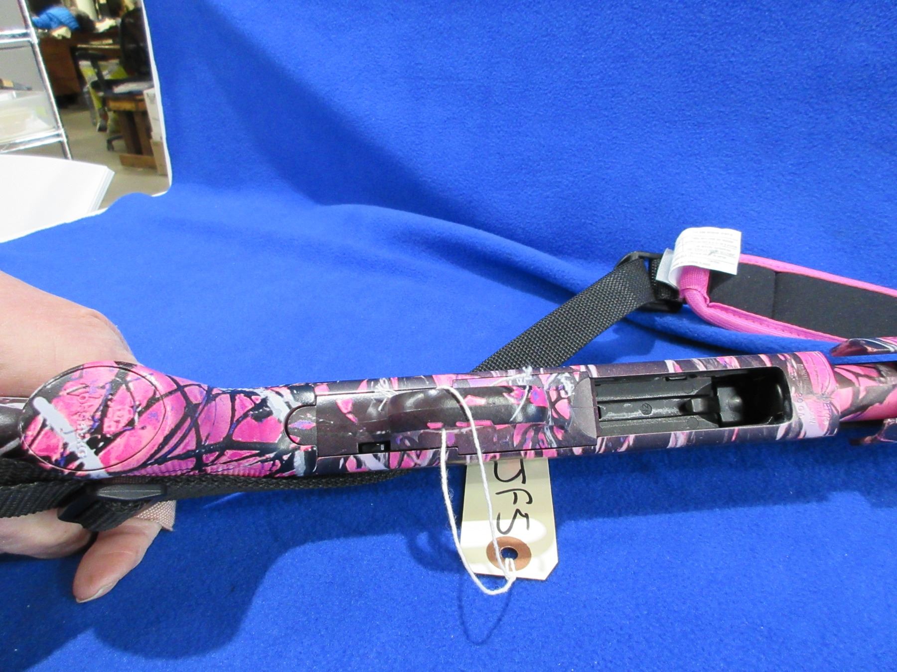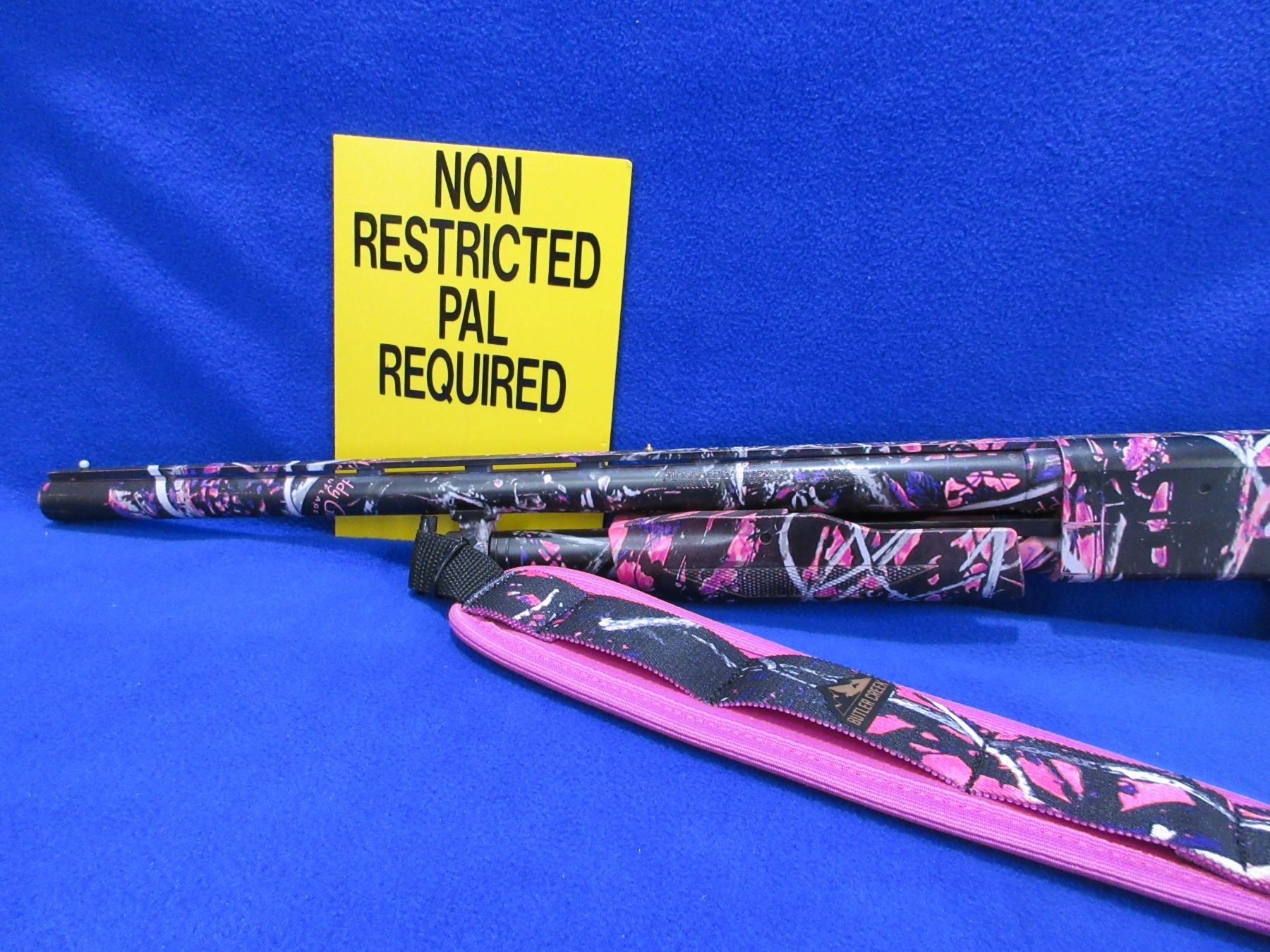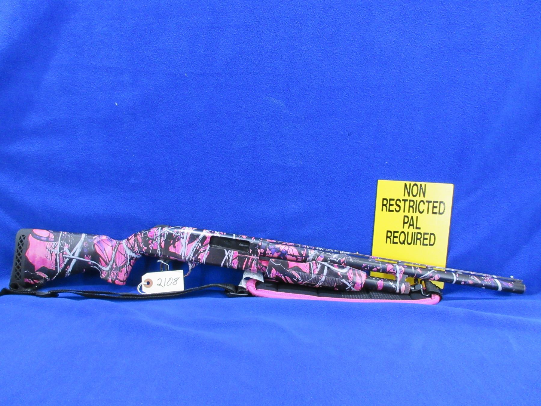 Non-Restricted - Mossberg Model 510 in 20 Ga. 3" - This pump action shotgun appears to be in good to very good working order. Barrel is 18 1/2", bore is shiny, camo finish is good to very good, has bead front and mid sight, Muddy Girl Camouflage synthetic youth stock (stock is very short) and forearm is good to very good, rubber recoil pad very good. Comes with swivels and a sling. Ser # V0045617