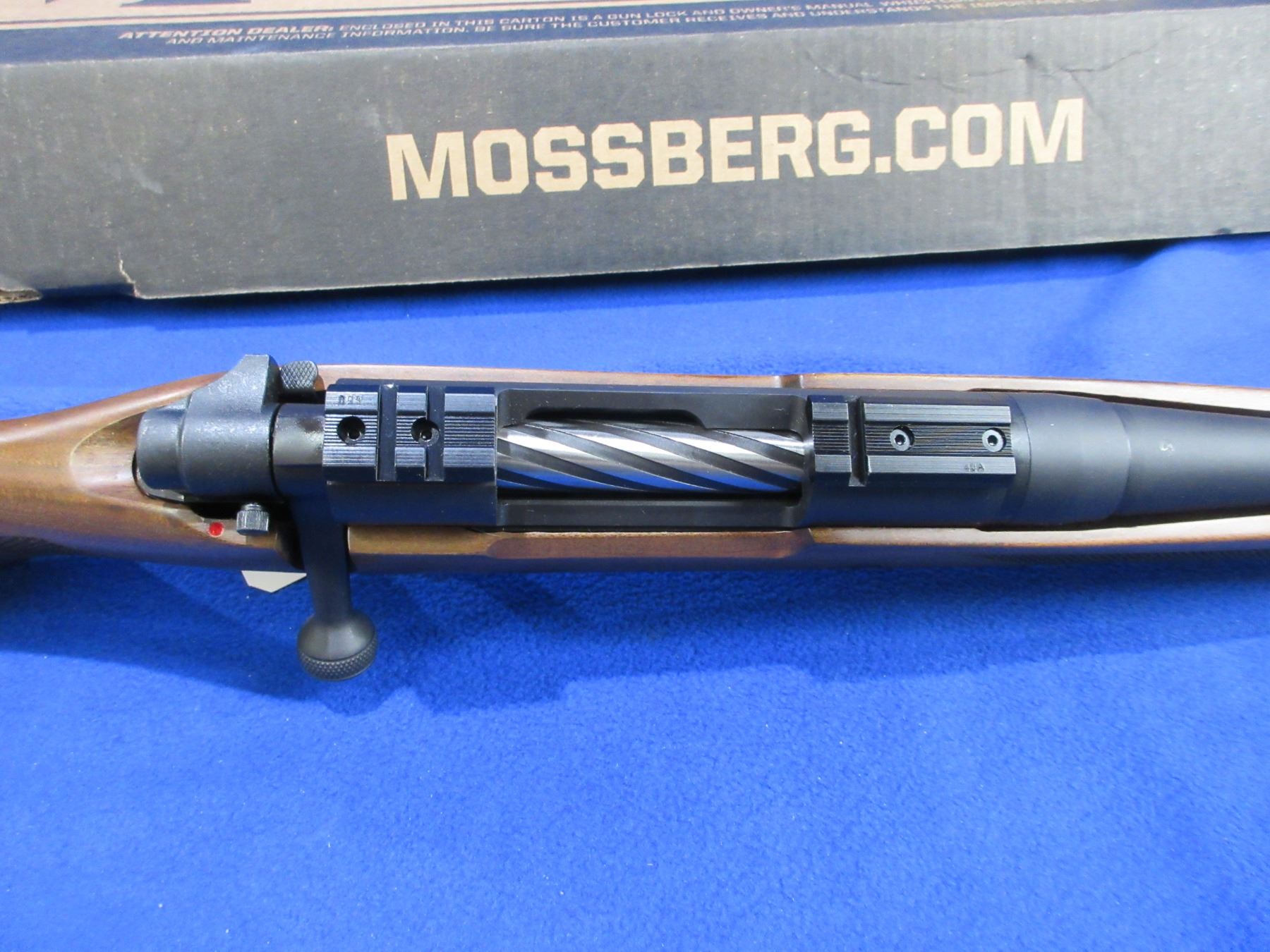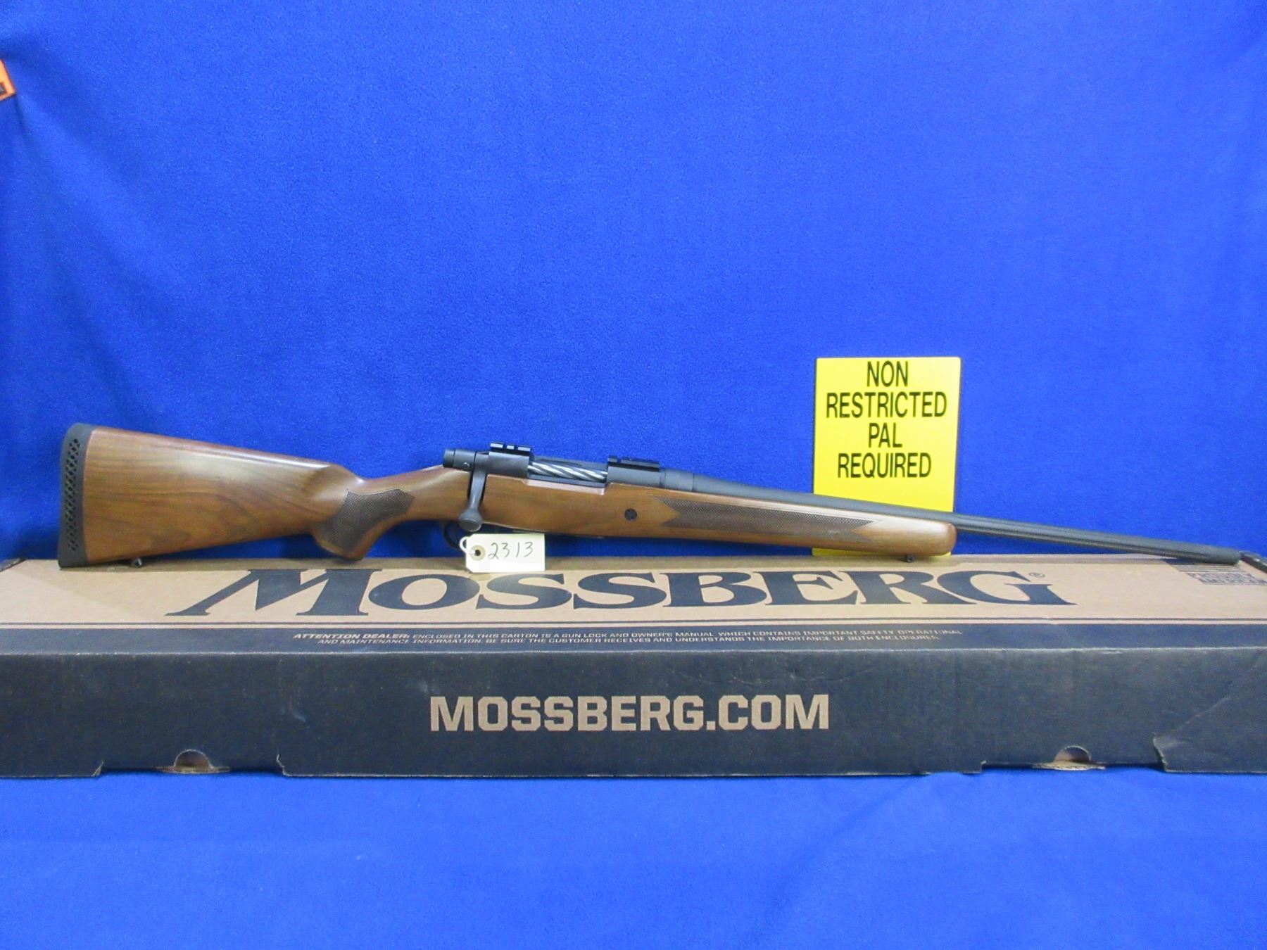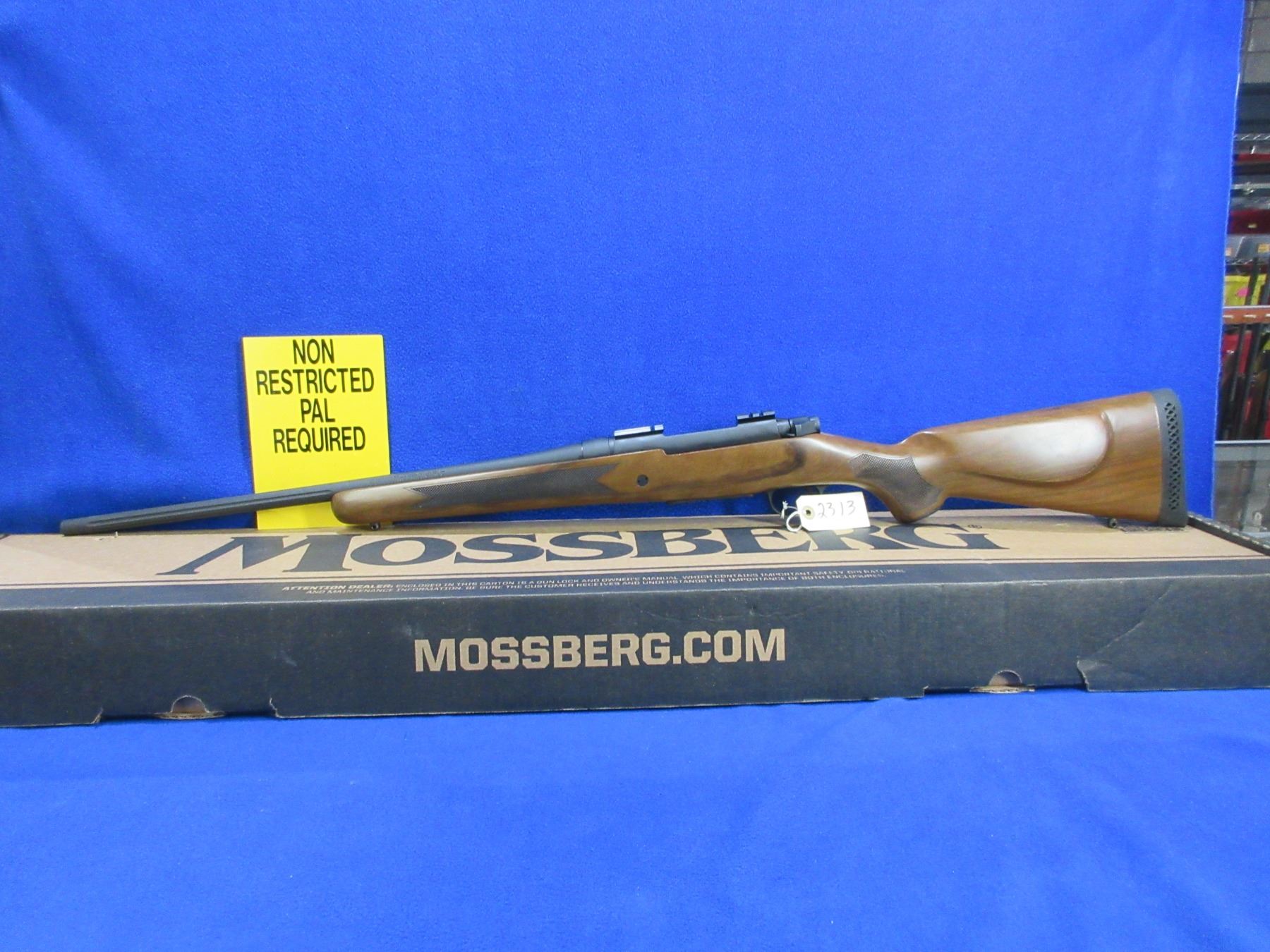 Non-Restricted - Mossberg Model Patriot in 7MM-08 Rem. - This is a Like New bolt action rifle with removable magazine, action appears to be in very good working order. Partially fluted barrel is 22", rifling is very good, matte black finish is very good, has no sights but has Picatinny style bases, stock is good to very good, length of pull is 13 3/4", rubber recoil padf good, comes with swivel studs, original box and paperwork. Ser # MPR0427396