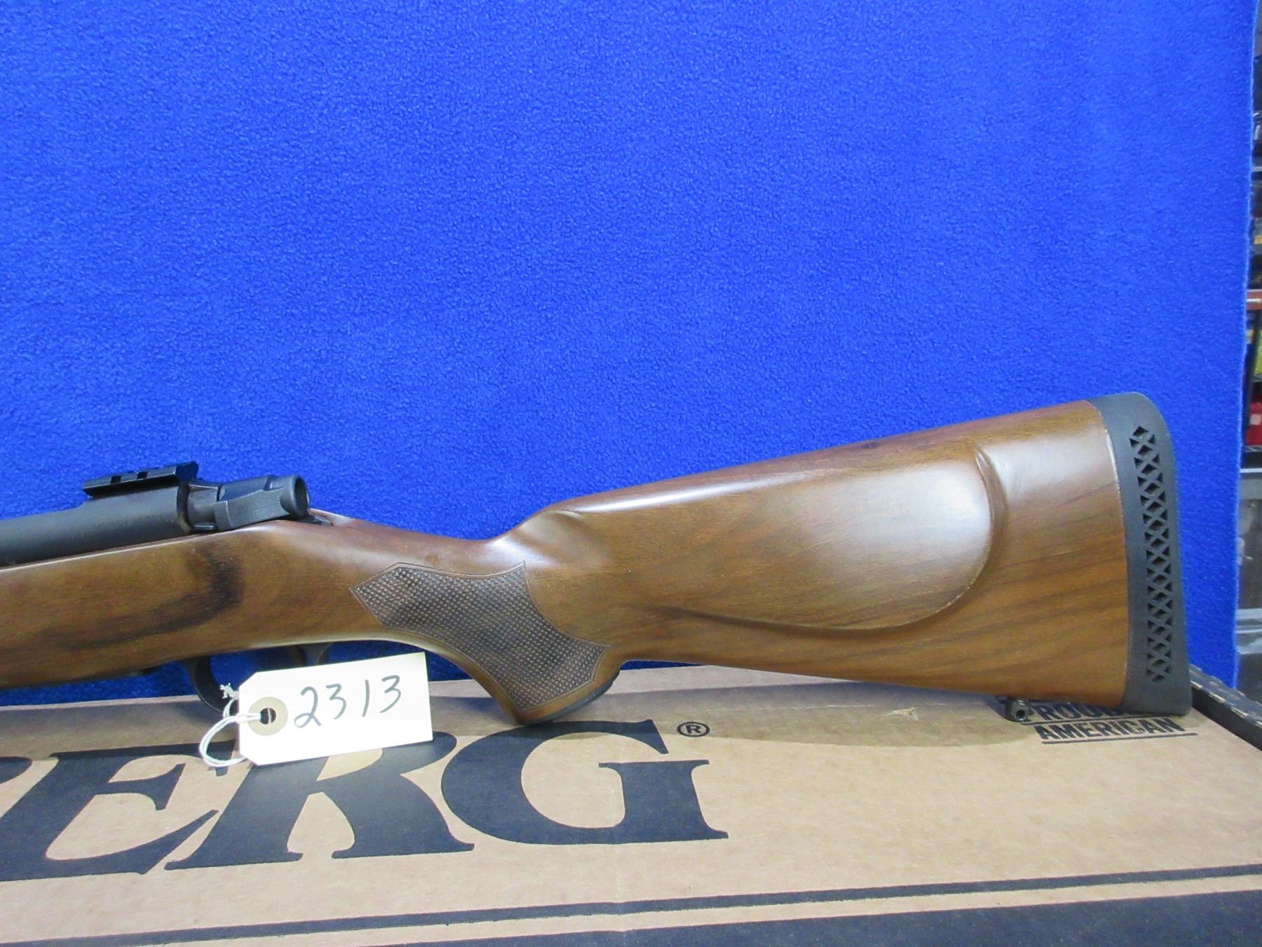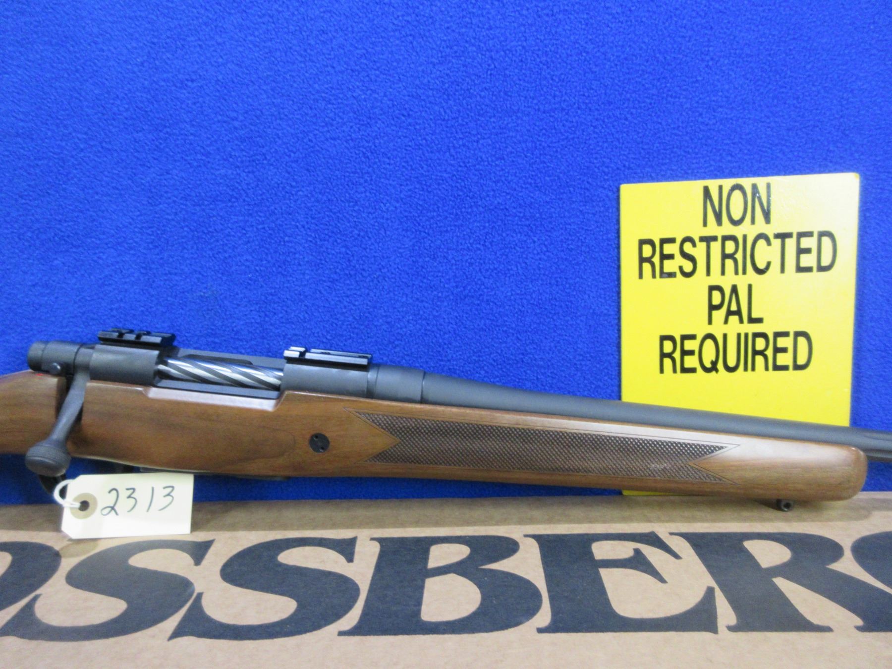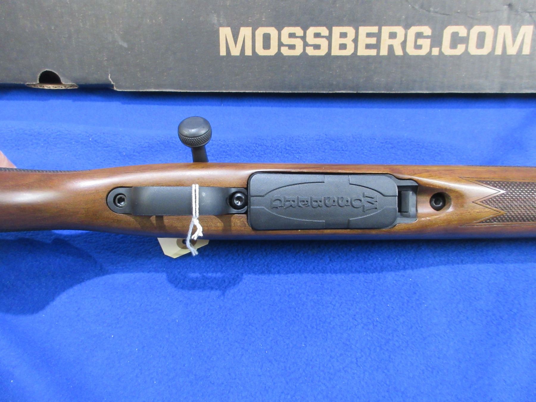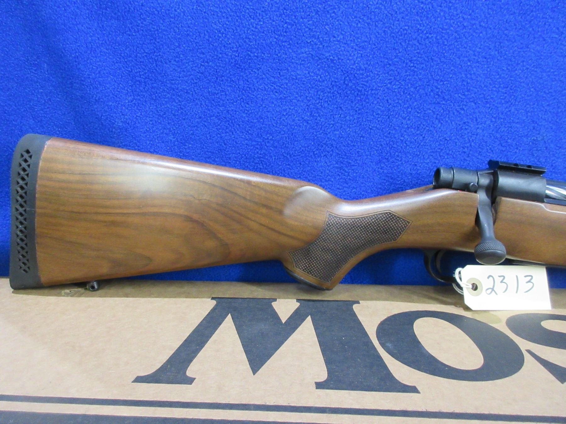Non-Restricted - Mossberg Model Patriot in 7MM-08 Rem. - This is a Like New bolt action rifle with removable magazine, action appears to be in very good working order. Partially fluted barrel is 22", rifling is very good, matte black finish is very good, has no sights but has Picatinny style bases, stock is good to very good, length of pull is 13 3/4", rubber recoil padf good, comes with swivel studs, original box and paperwork. Ser # MPR0427396