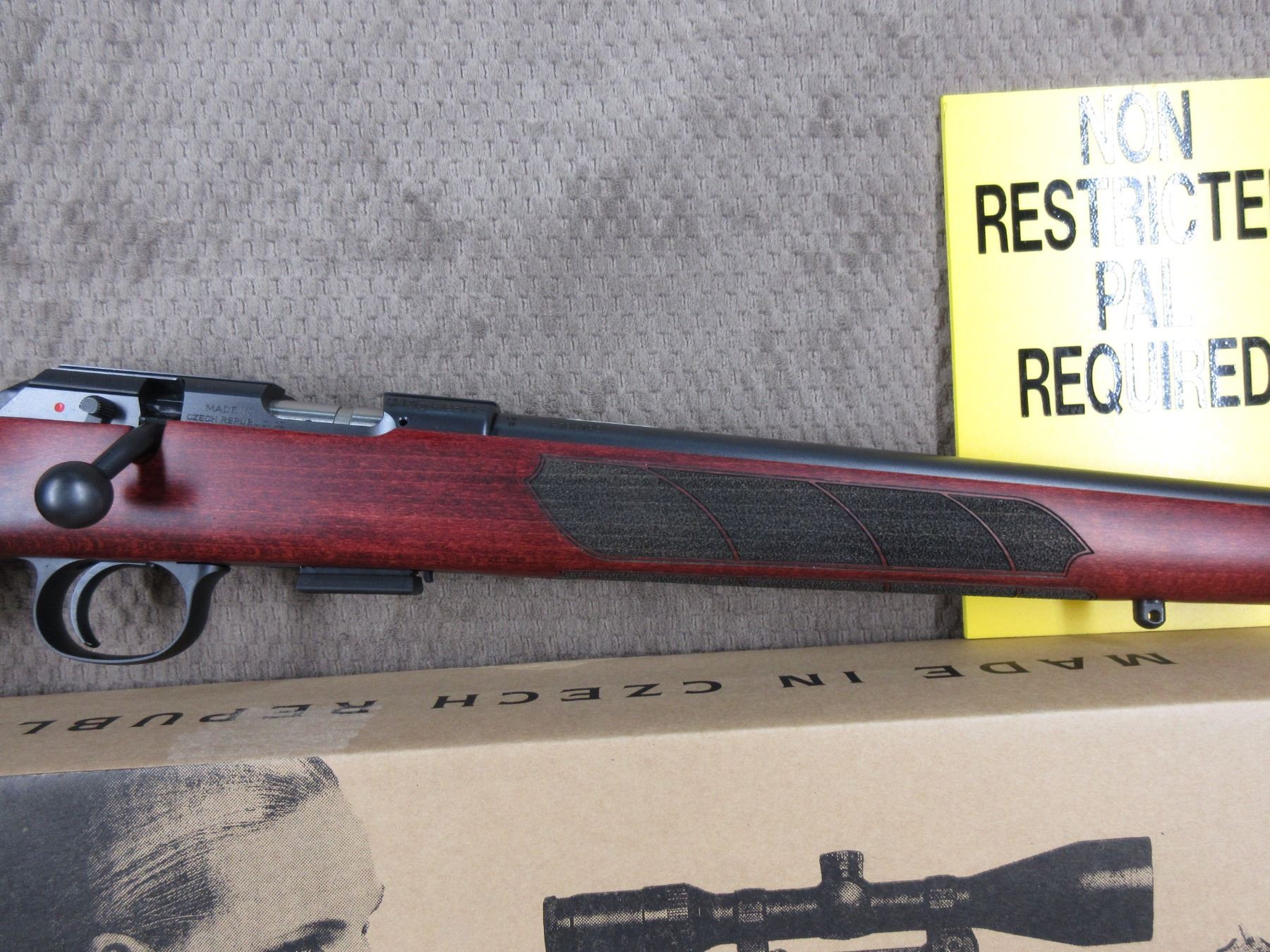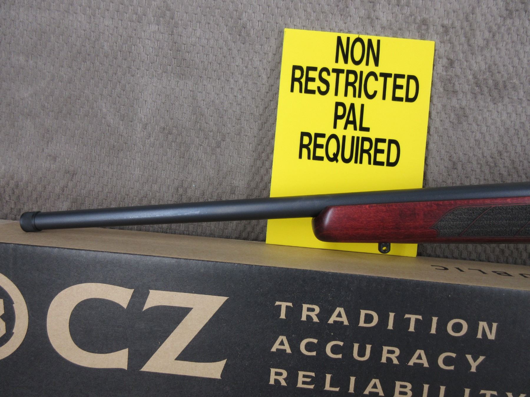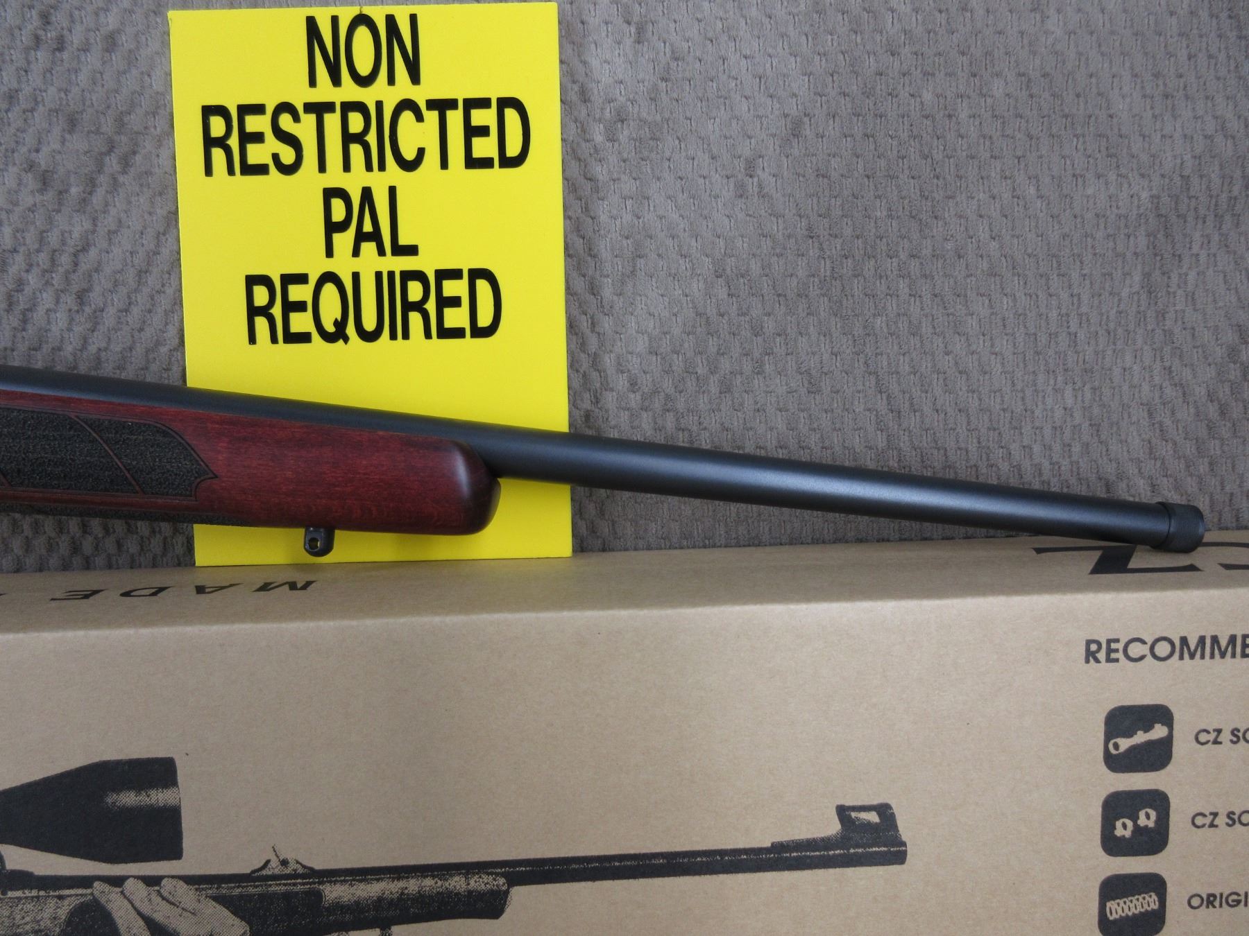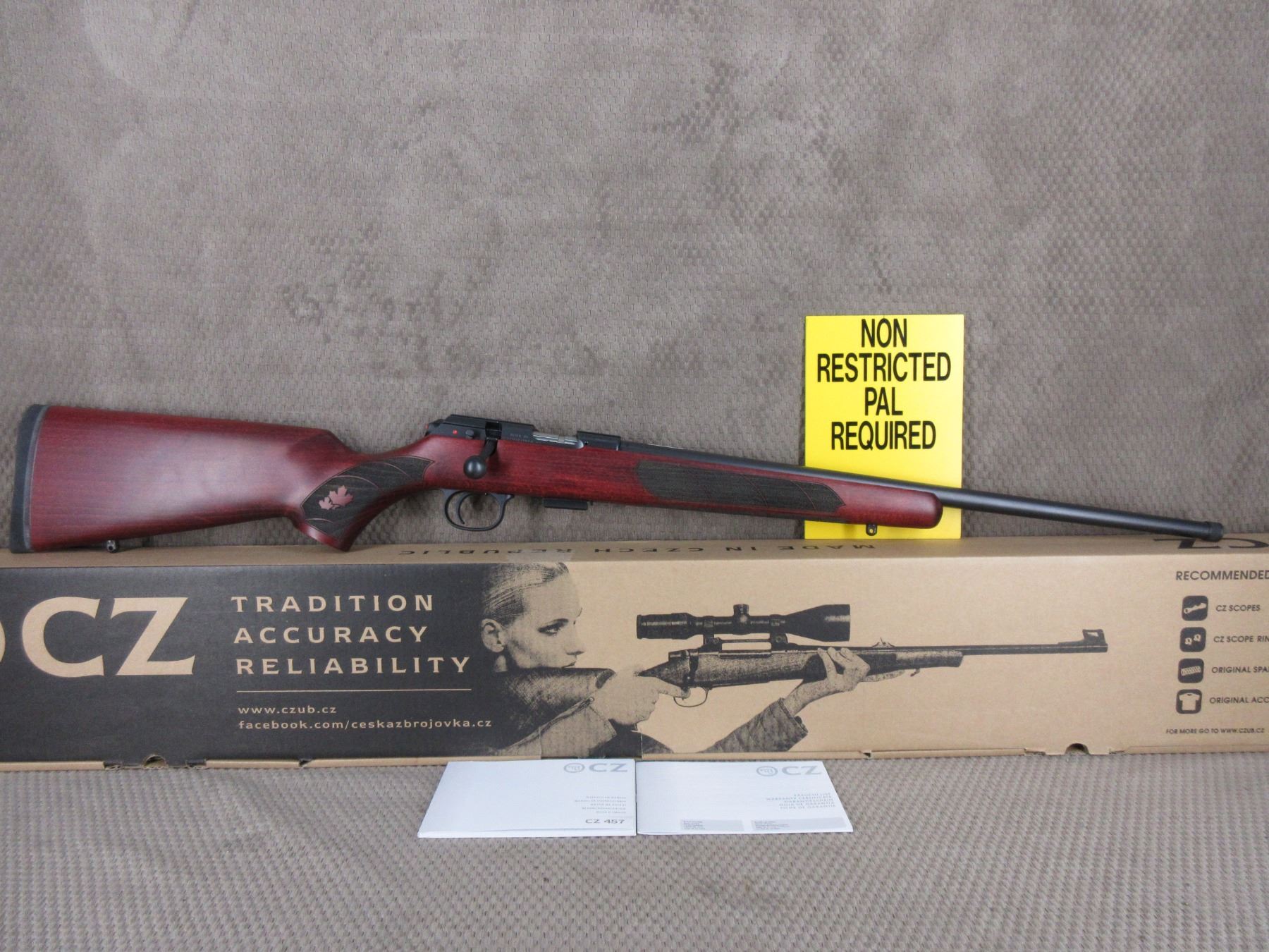 Non-Restricted - NEW - CZ Model 457 Canadian in 22 LR - This bolt action rifle with 5 shot magazine is NEW with complete warranty. Barrel is 20", no sights, threaded muzzle, rubber butt pad, swivel studs. Ser # F186193