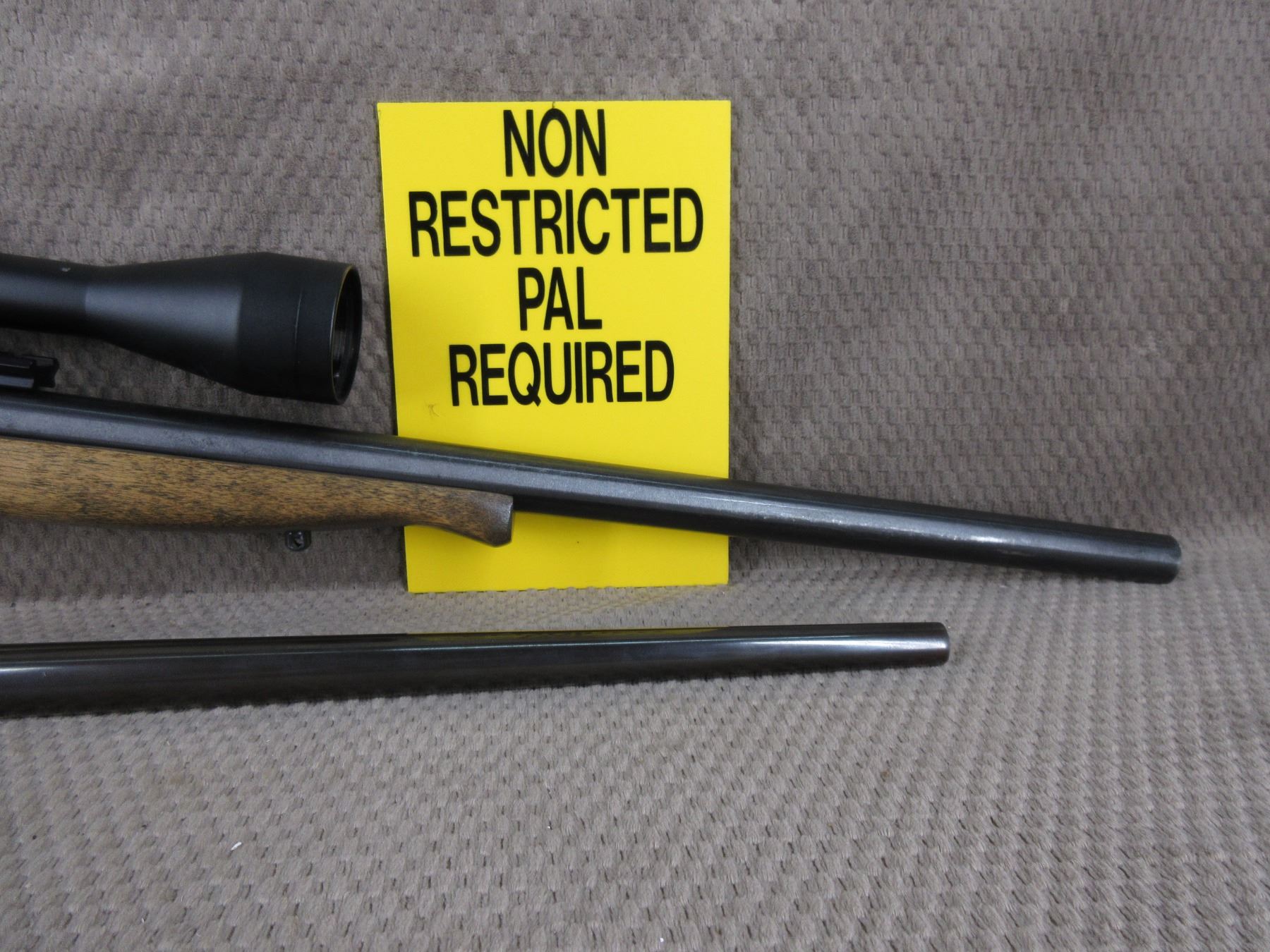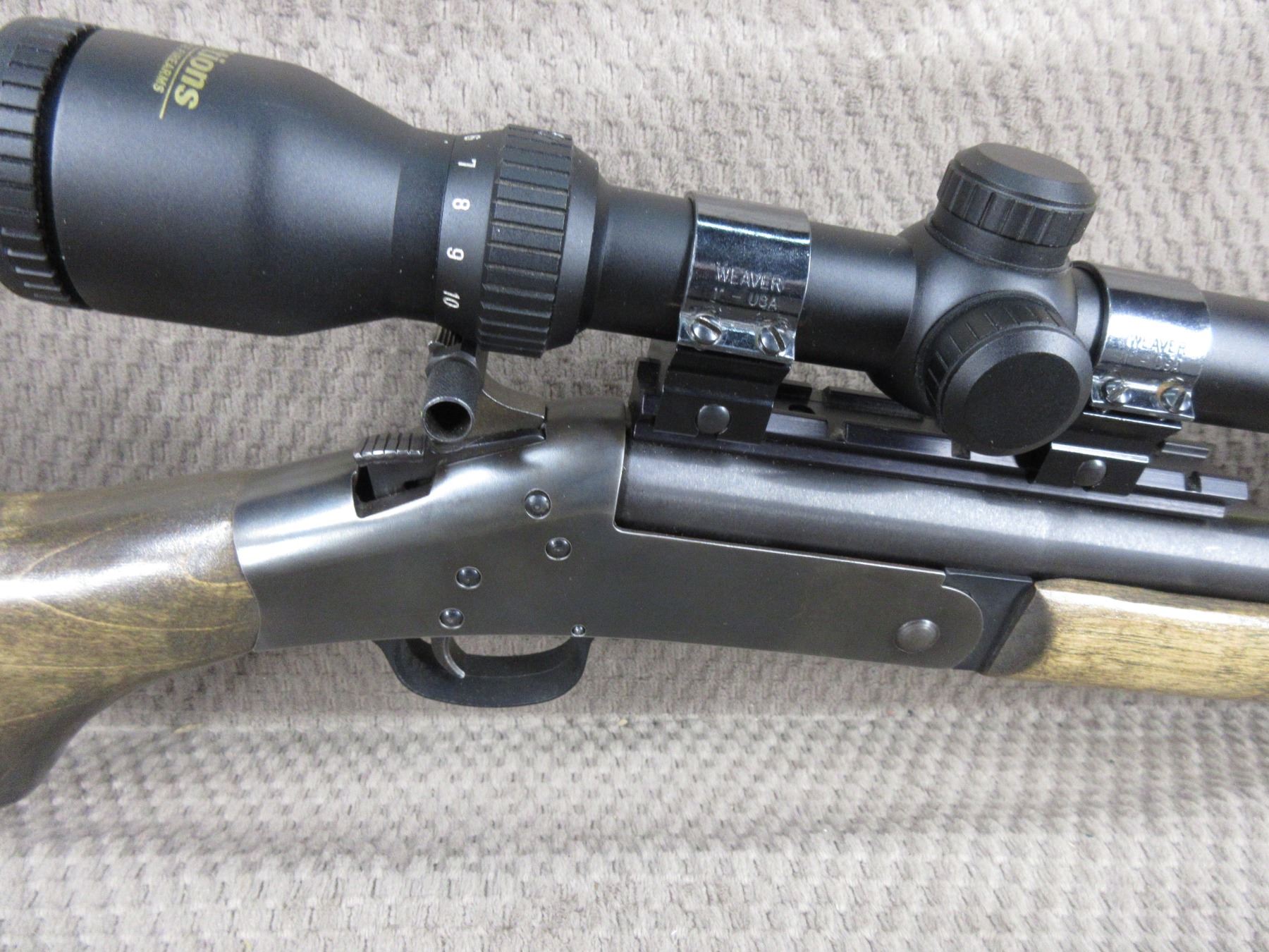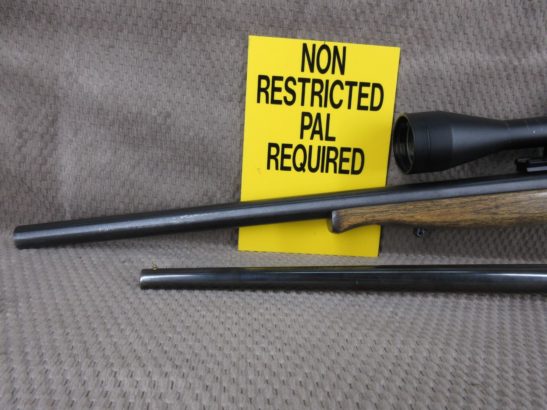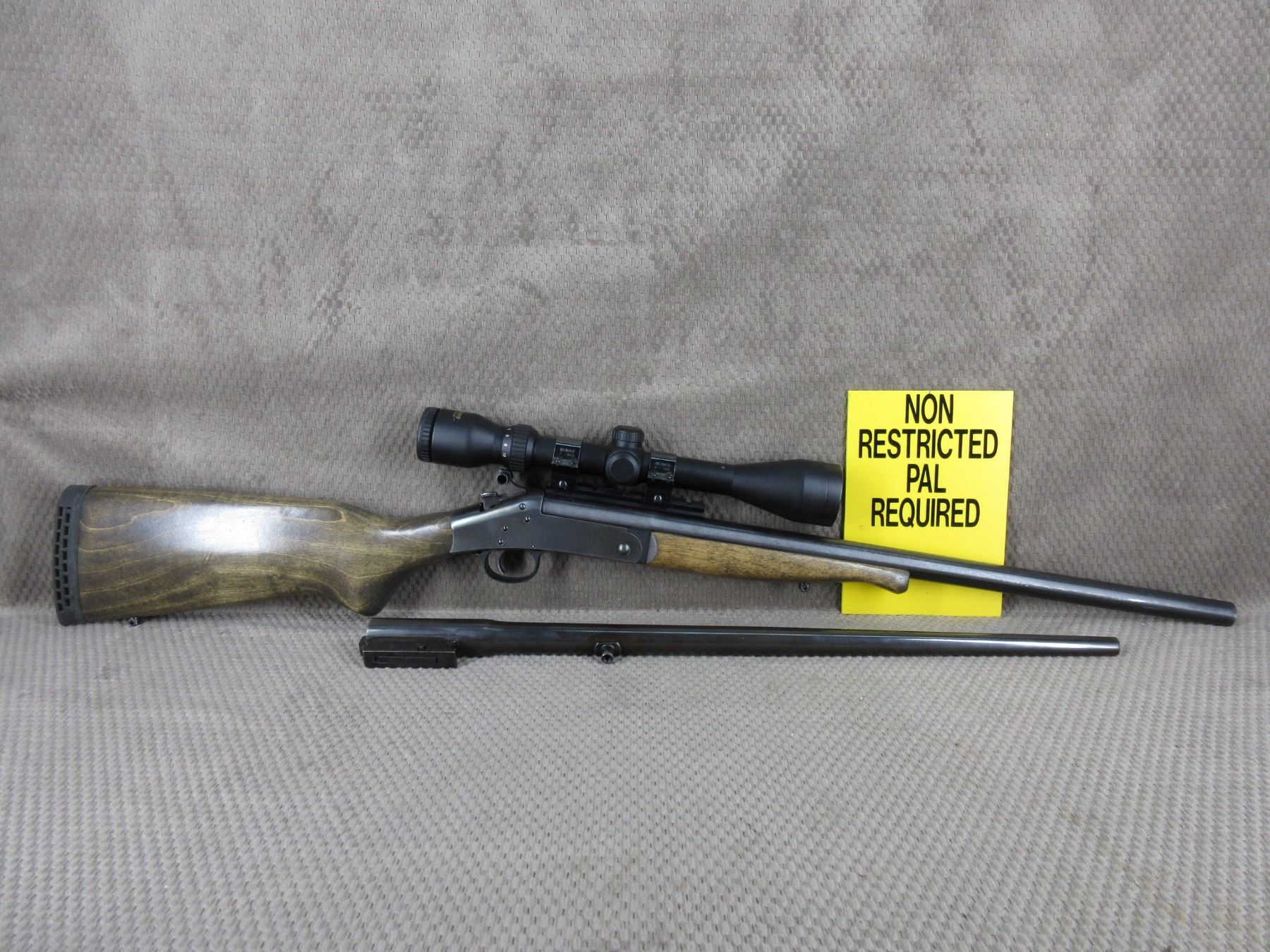 Non-Restricted - New England Firearms SB2 in 223 & 410 - This single shot tip barrel rifle appears to be in very good working order and comes with 2 barrels. Barrels are both 22", rifling in 223 is very good, bore in 410 is shiny, bluing is good to very good on all, has no sights but has Bushnel Traditions 3.5-10X44 appears clear duplex crosshairs , stock is very good, rubber recoil pad, Ser # NL267431
