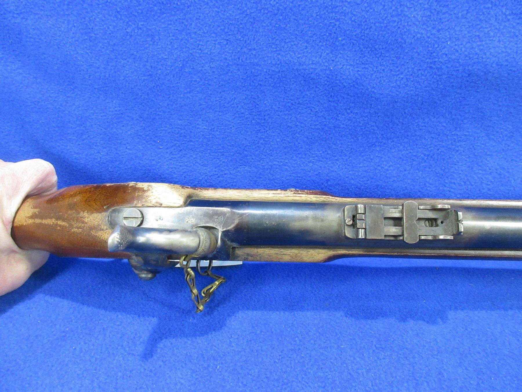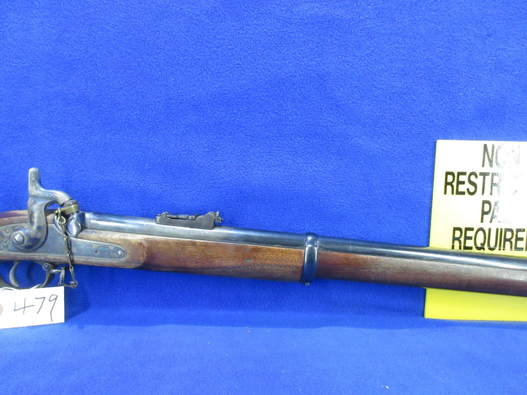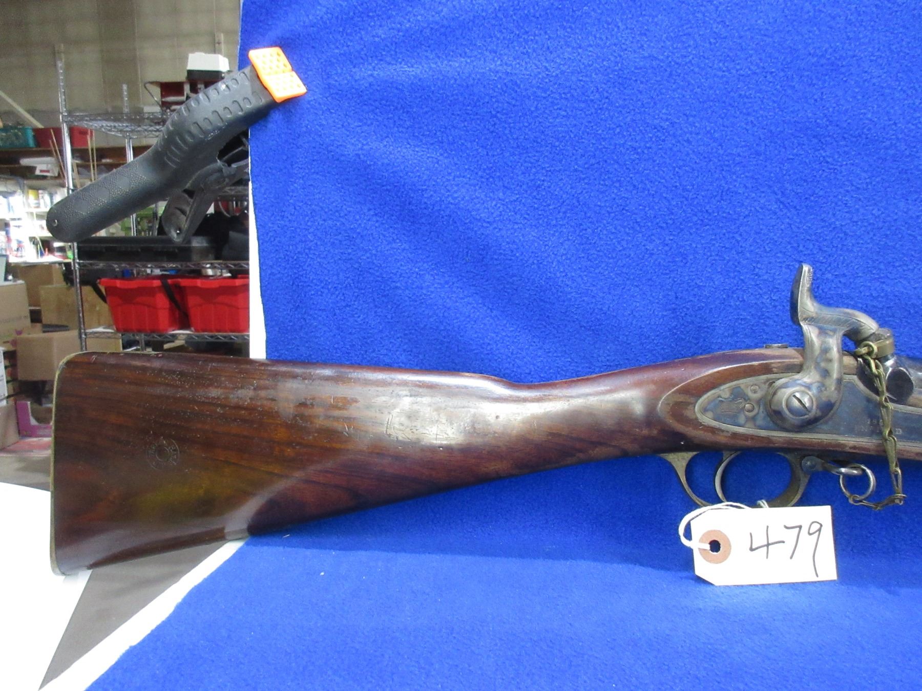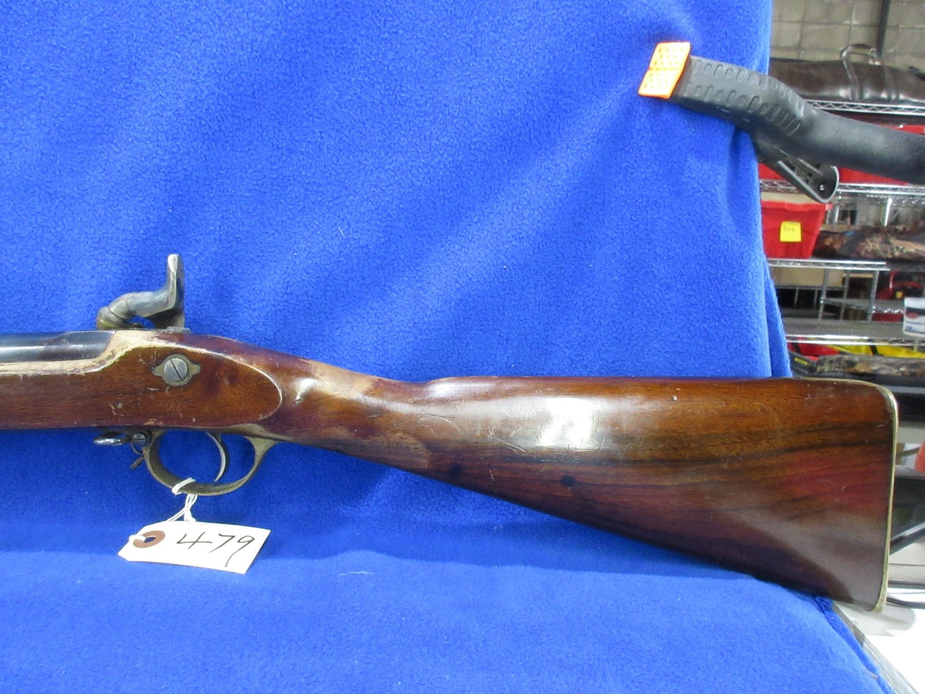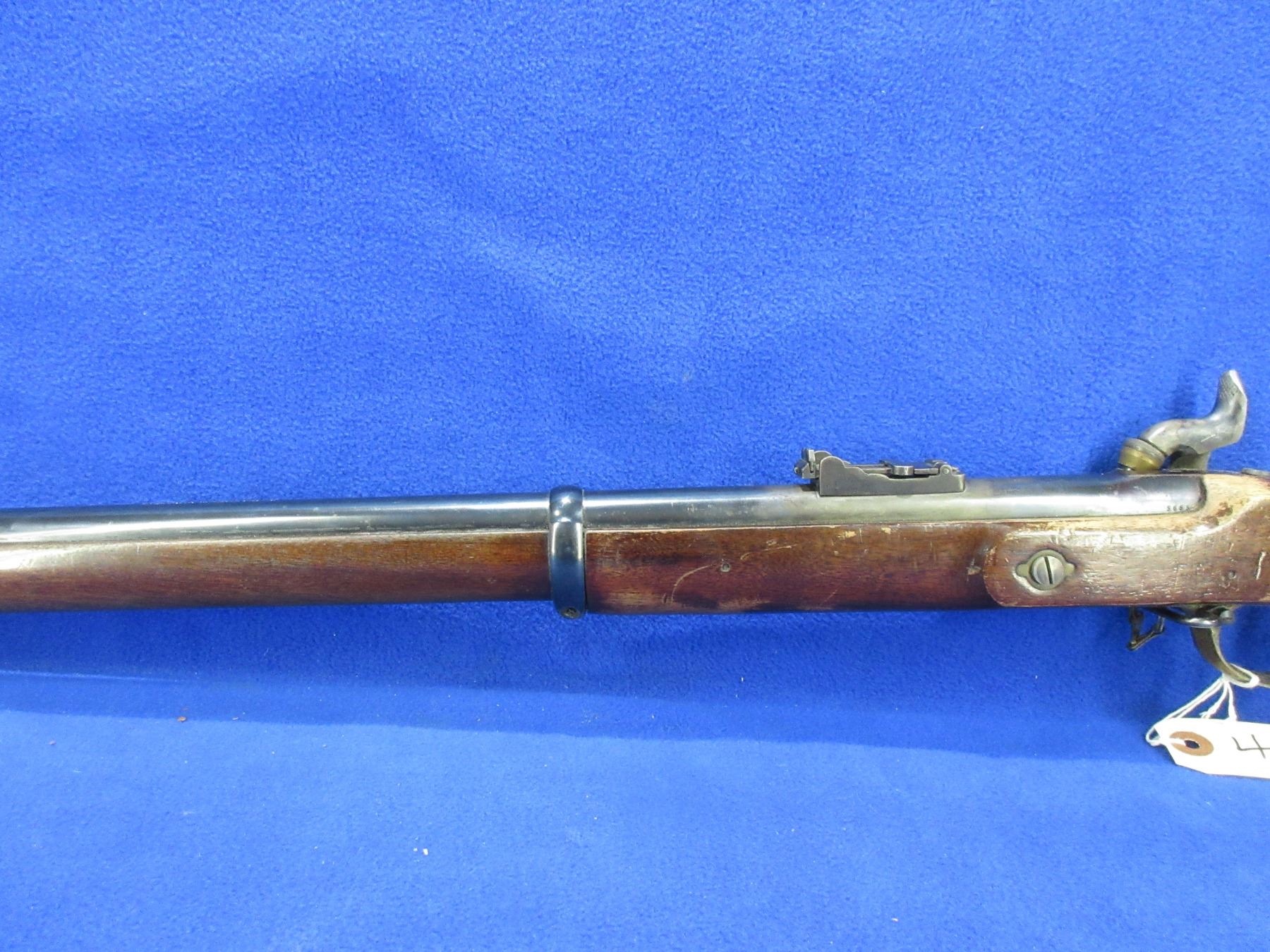 Non-Restricted - Parker Hale Reproduction 1858 Enfield in 577 3 Band Rifle - This muzzleloading percussion cap rifle appears to be in good to very good working order. Barrel is 38.5", rifling is good to very good, bluing is fair to good, has both sights, stock and forearm are good but have heavy wear marks, brass butt plate good. Ser # 5663