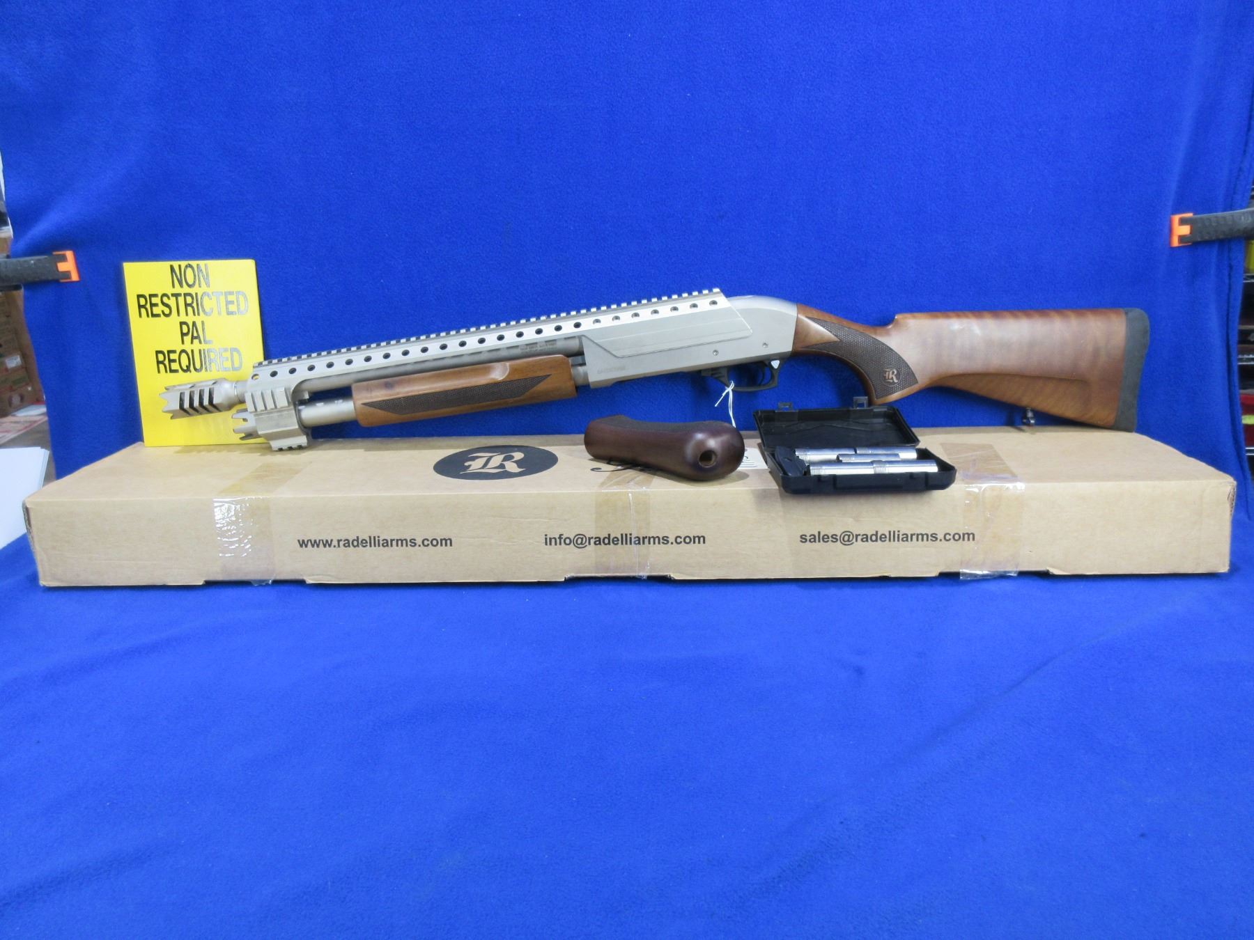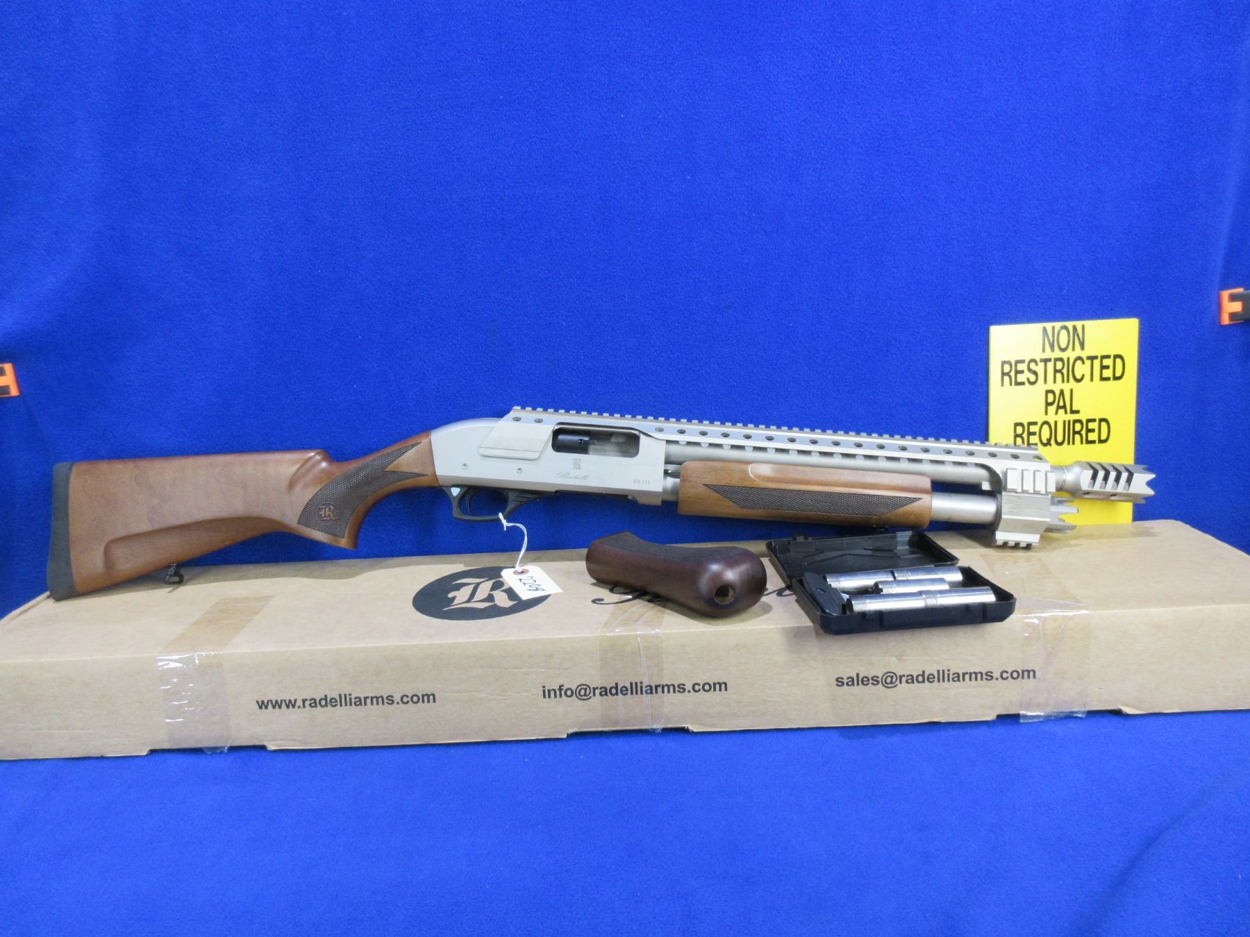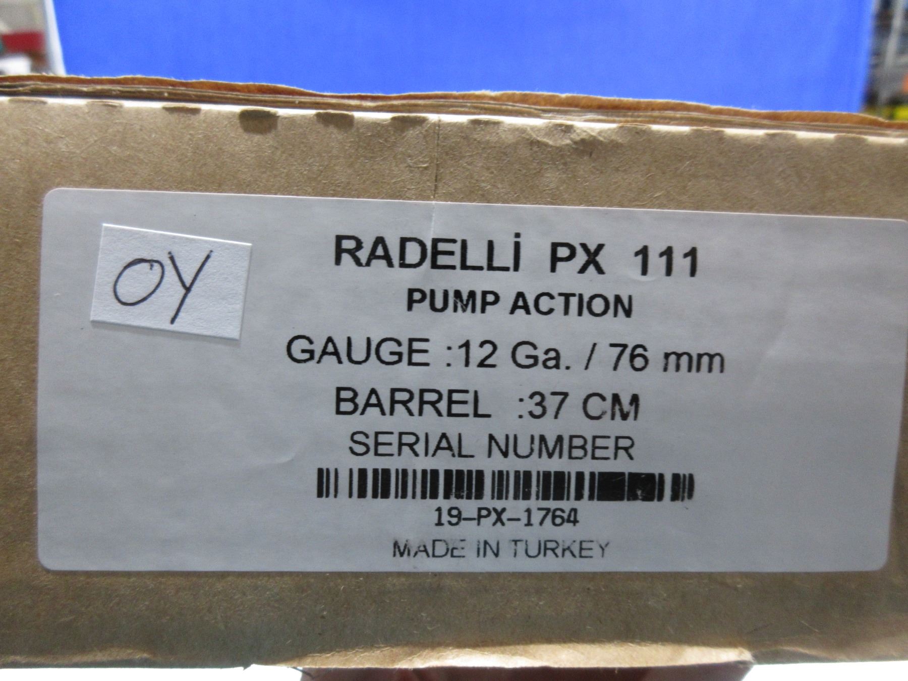 Non-Restricted - Radelli PX 111 Gatekeeper in 12 Ga. 3" - This pump action shotgun with 5 removable chokes appears to be in good to very good working order. Barrel is 14 1/2", bore is good but needs more cleaning, silver finish is good to very good, has no sights but has a Picatinny rail, stock is good to very good, forearm is good to very good, rubber recoil pad good, comes with a rear swivel, pistol grip and original box. Ser # 19-PX-1764