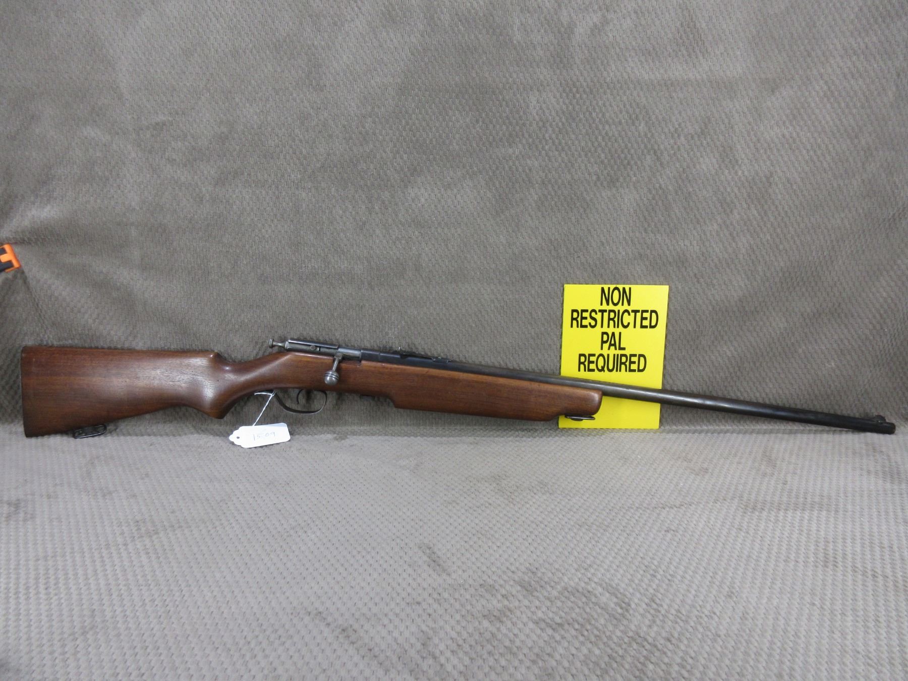 Non-Restricted - Range by Cooey (Model 75) in 22 LR - This single shot bolt action rifle appears to be in good to very good working order. Barrel 27", bluing is mostly grey, rifling is good to very good, has both sights, stock good with usual marks, metal butt plate and swivels, Ser # None