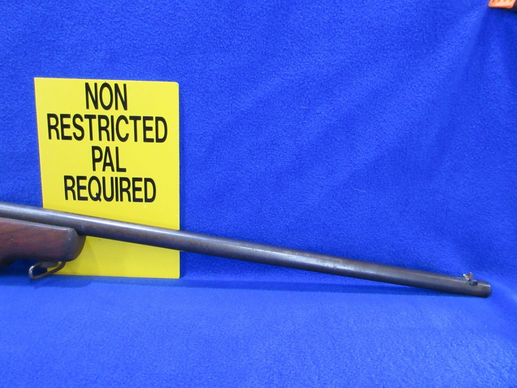 Non-Restricted - Ranger by Cooey in 22 LR - This single shot bolt action rifle appears to be in non working order as it is missing the extractor. Barrel is 27", rifling is good to very good, bluing is brown or gone, has both sights but front sight is not original, stock has been refinished and is fair to good, metal butt plate. Trigger guard is incorrect. Comes with swivels Ser # None