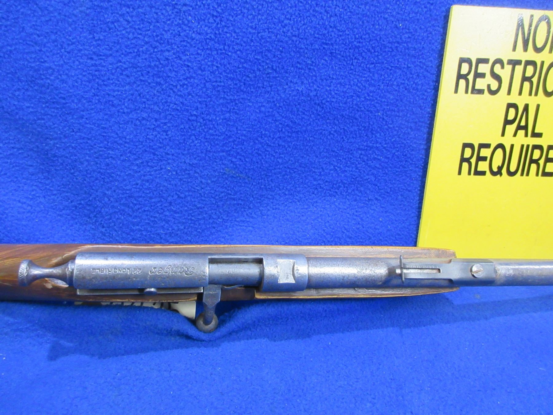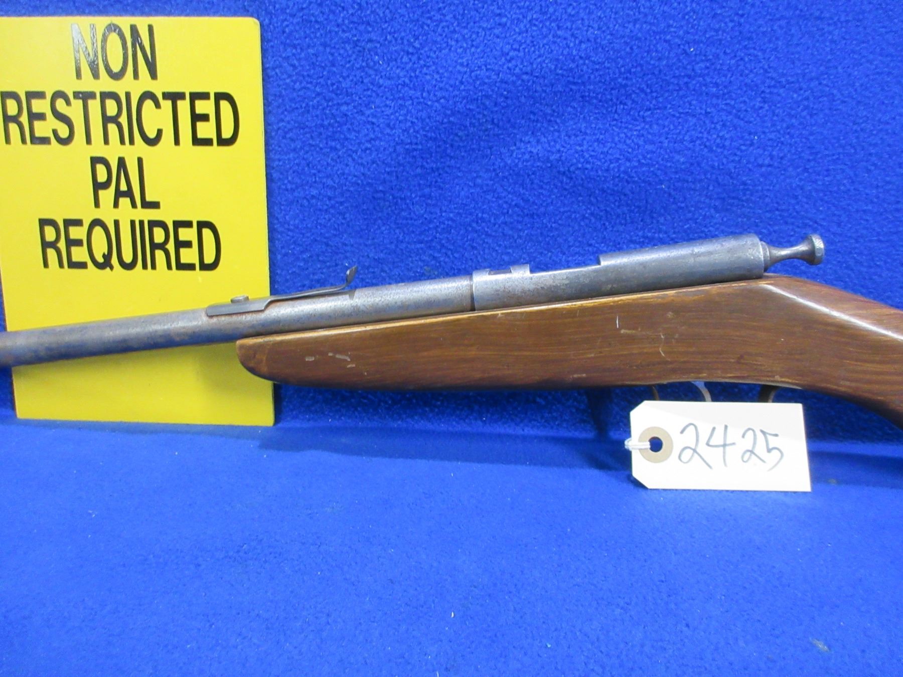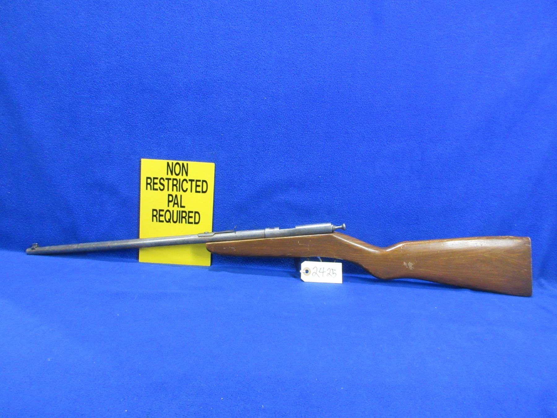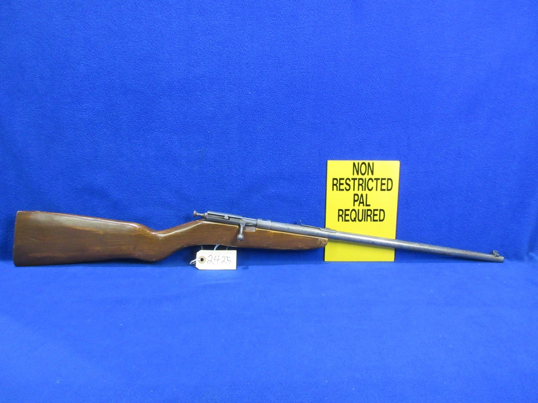 Non-Restricted - Ranger by Cooey in 22 LR - This is a single shot bolt action rifle, action appears to be in good to very good working order. Barrel is 18", rifling is fair to good, bluing is gone, has both sights but rear sight is missing the ramp, stock appears homemade and is good with usage marks, length of pull is 13 1/2". Ser # None