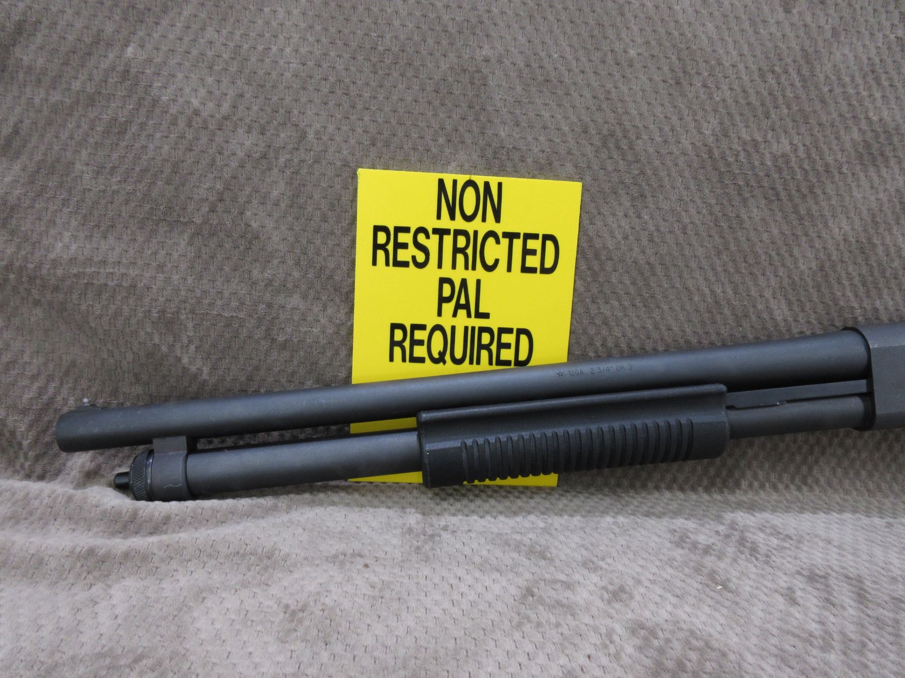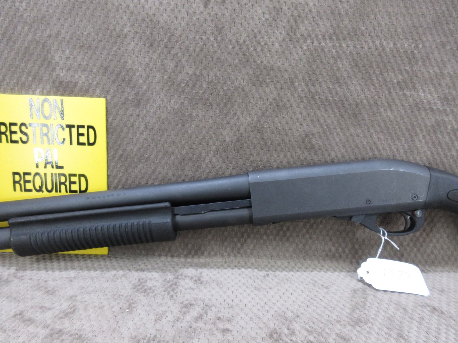 Non-Restricted - Rem. 870 Tactical Express in 12 ga 3" - This pump action shotgun with 7 shot tube magazine appears to be in very good working order. Barrel is 18 1/2", bore is shiny, black finish has some handling marks, has bead front sight, synthetic stock with recoil pad is like new, forearm is like new, Ser # RS29579M