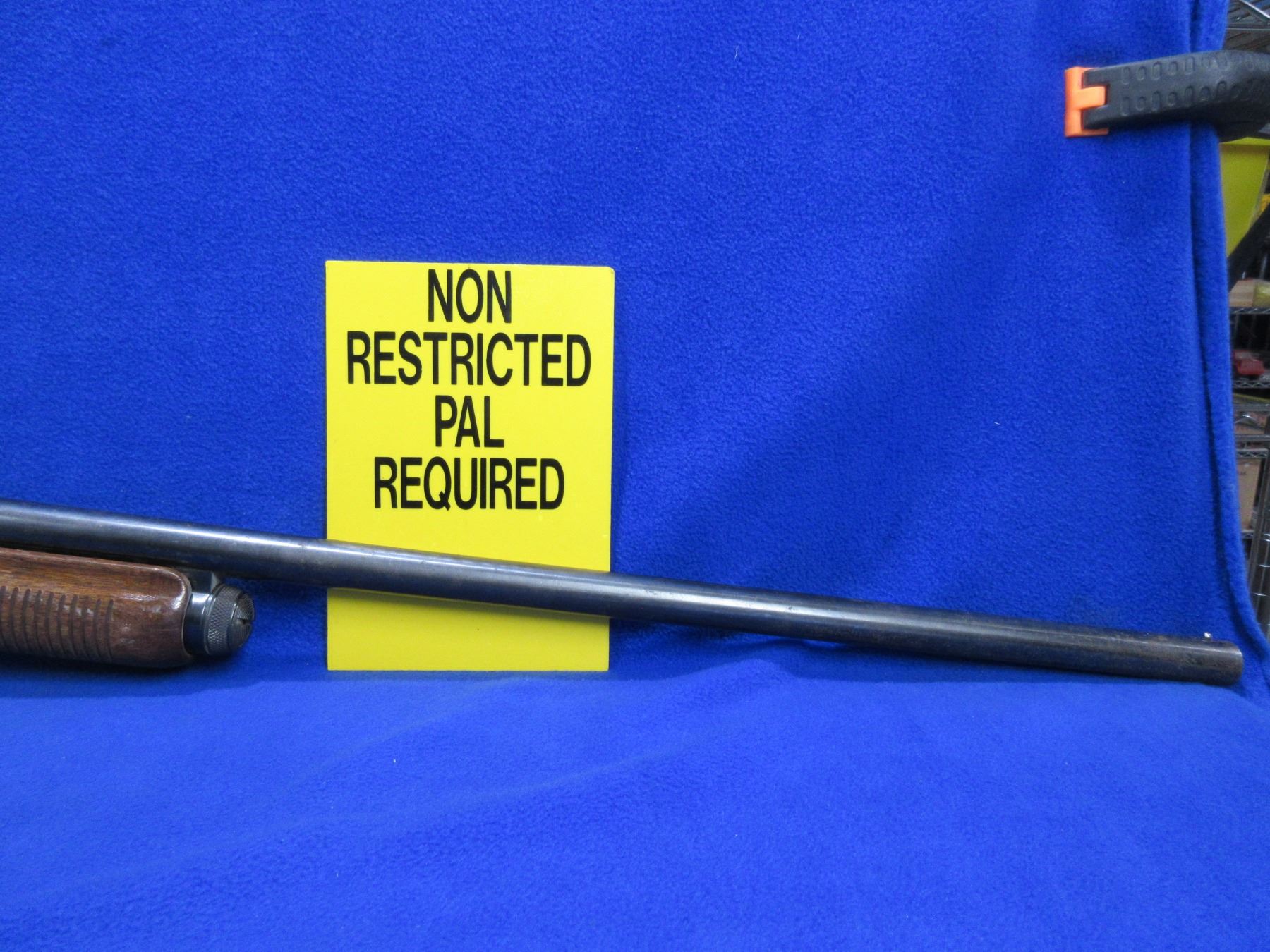 Non-Restricted - Remington Wingmaster 870 in 12 Ga. 2 3/4" Full- This pump action shotgun appears to be in good working order. Barrel is 30", bore is good to very good, bluing is mostly gone and pitted, has bead front sight, stock is good with usage marks and chip on the toe, forearm is good with usage marks, plastic butt plate has chip on the toe. Ser # 1500V