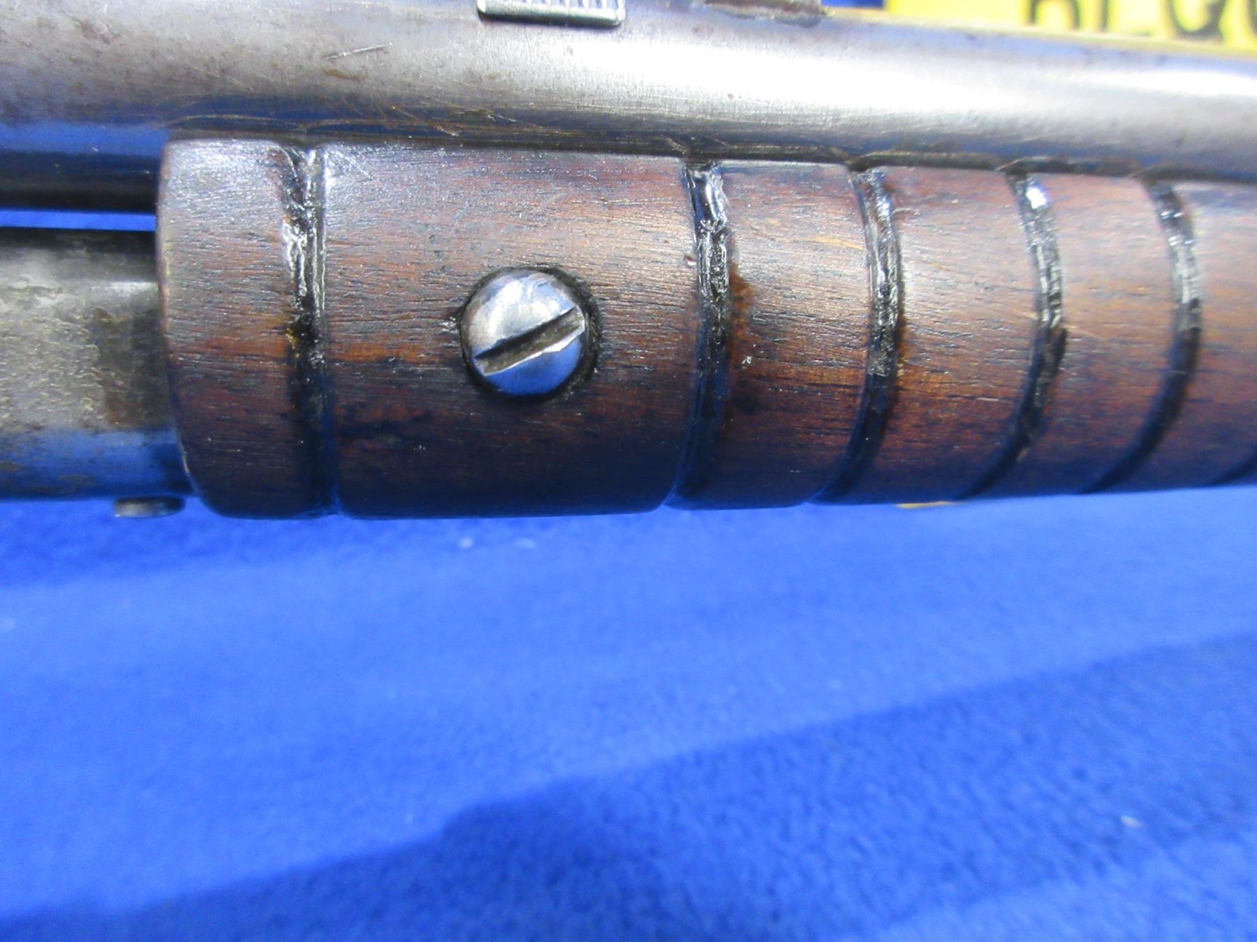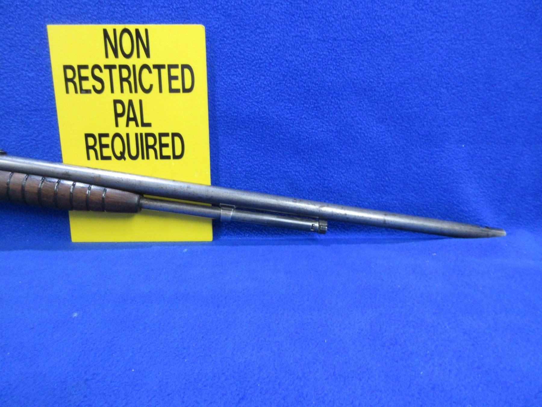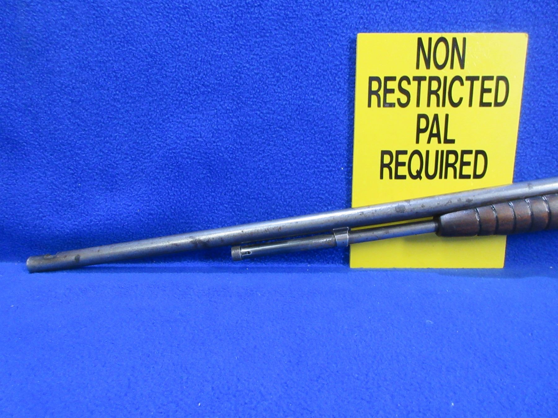 Non-Restricted - Remington Model 12 in 22 S/L/LR - This is a pump action takedown rifle with tube magazine, action appears to be in working order but it does not lock up. Barrel is 22", rifling is good, bluing is gone, has rear sight, front sight is missing, stock is good (no cracks) but both sides have a large section carved out about 1/8" deep, forearm is good but 1 screw is missing and the other is incorrect, length of pull is 13", butt plate missing. Ser # 325484