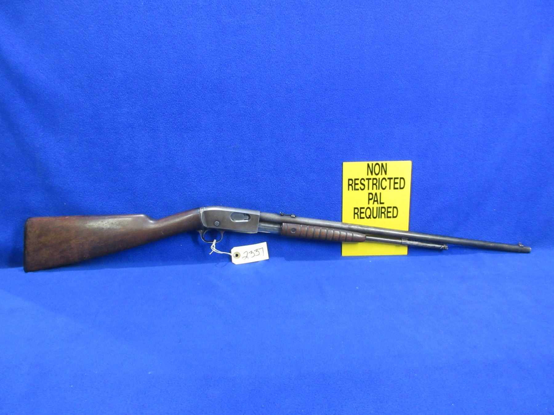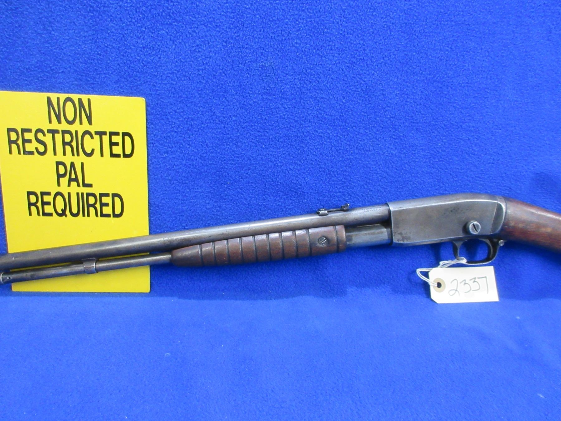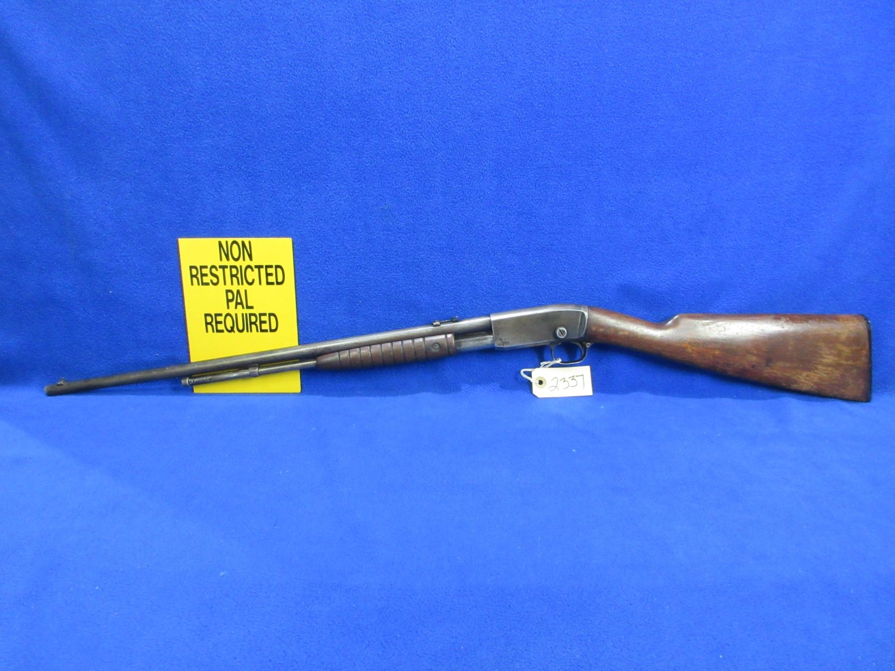 Non-Restricted - Remington Model 12 in 22 S/L/LR - This is a pump action takedown rifle with tube magazine, action appears to be in good working order. Barrel is 22", rifling is poor to fair, bluing is mostly gone, has both sights, stock has cracks in the wrist area, forearm is good with usage marks, length of pull is 13 1/4", butt plate good. Ser # 194497
