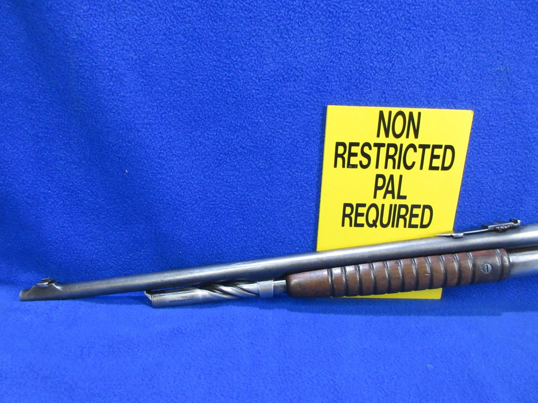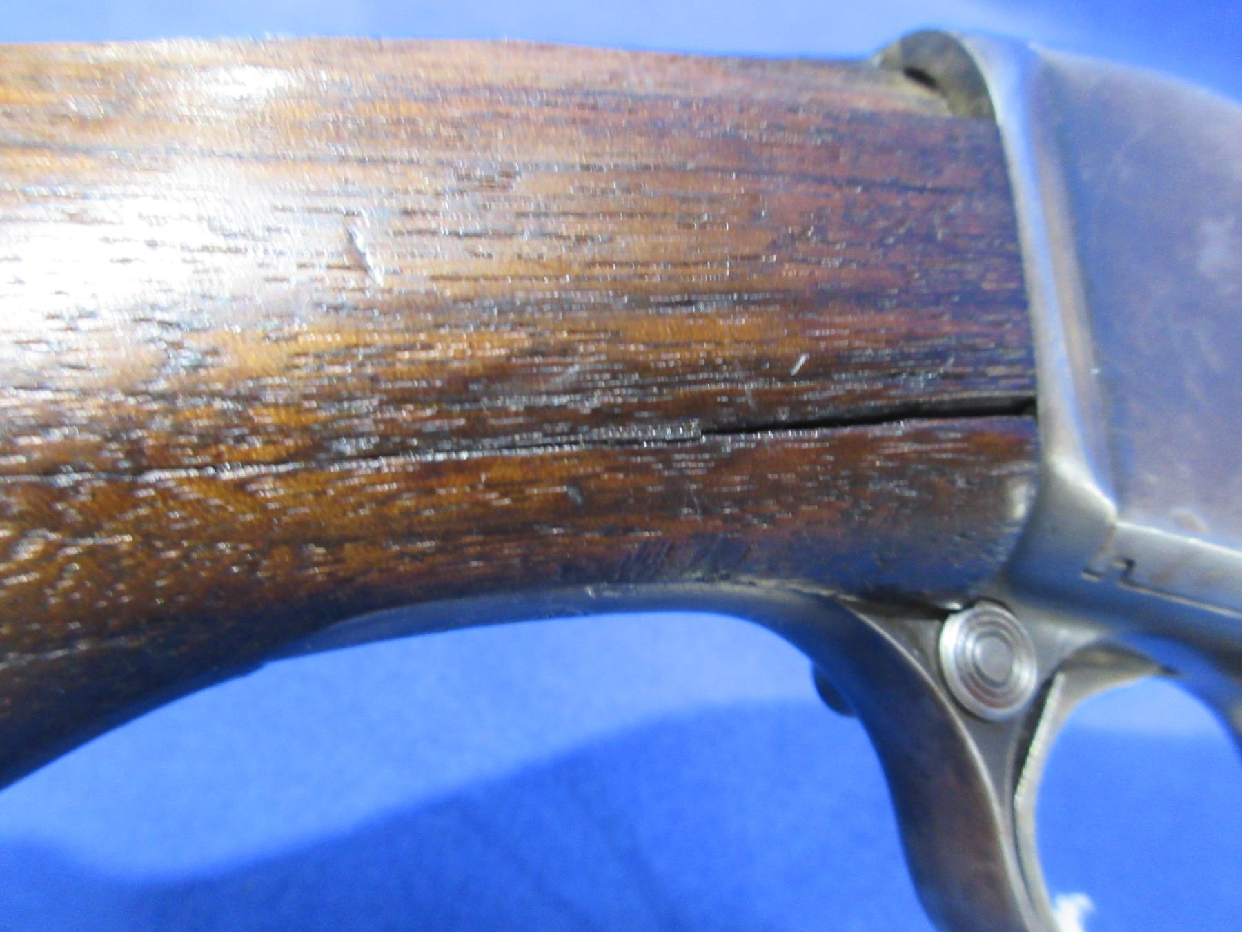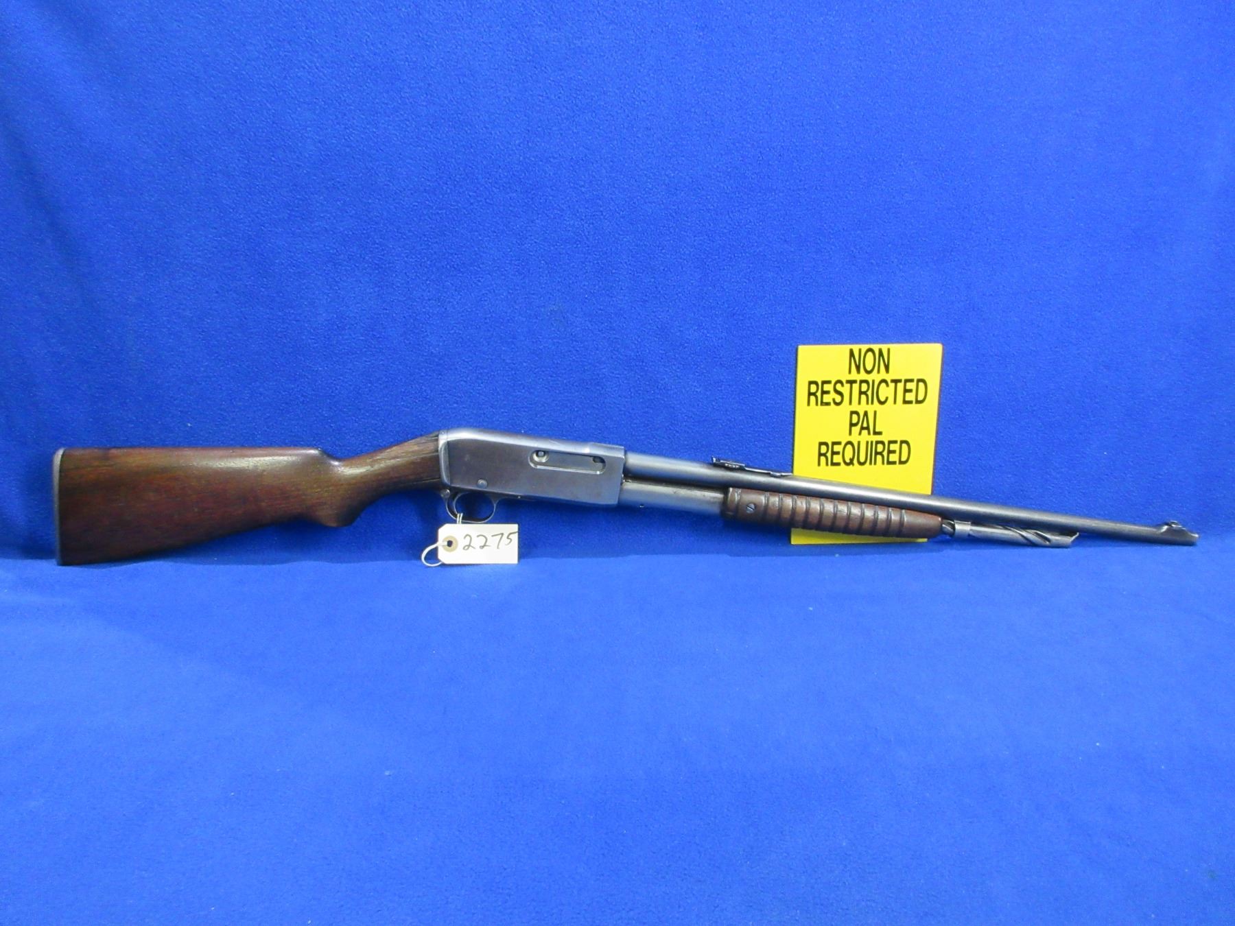 Non-Restricted - Remington Model 14 in 32 Rem. - This is a pump action takedown rifle with tube magazine, action appears to be in good working order but should not be fired as the stock has cracks. Barrel is 22", rifling is good to very good, bluing is turning grey or gone, has both sights, stock is cracked and chipped in the wrist area, forearm is good with usage marks, length of pull is 13 1/2", metal butt plate good. Ser # 62274