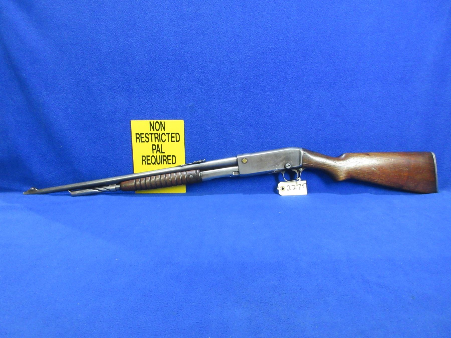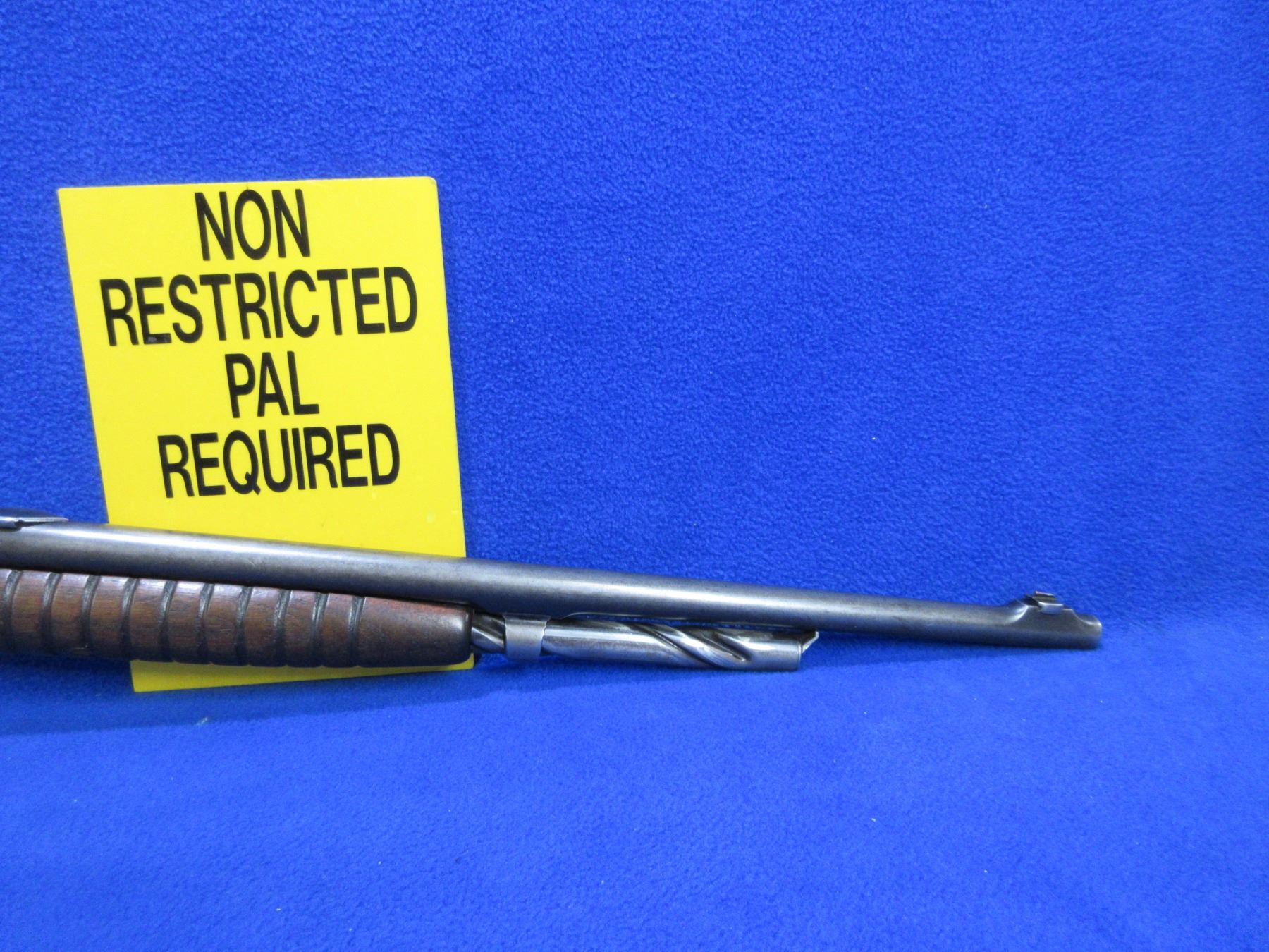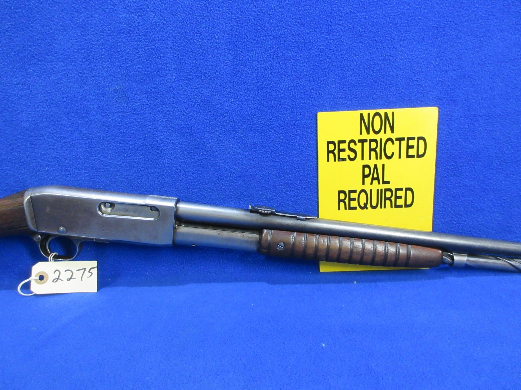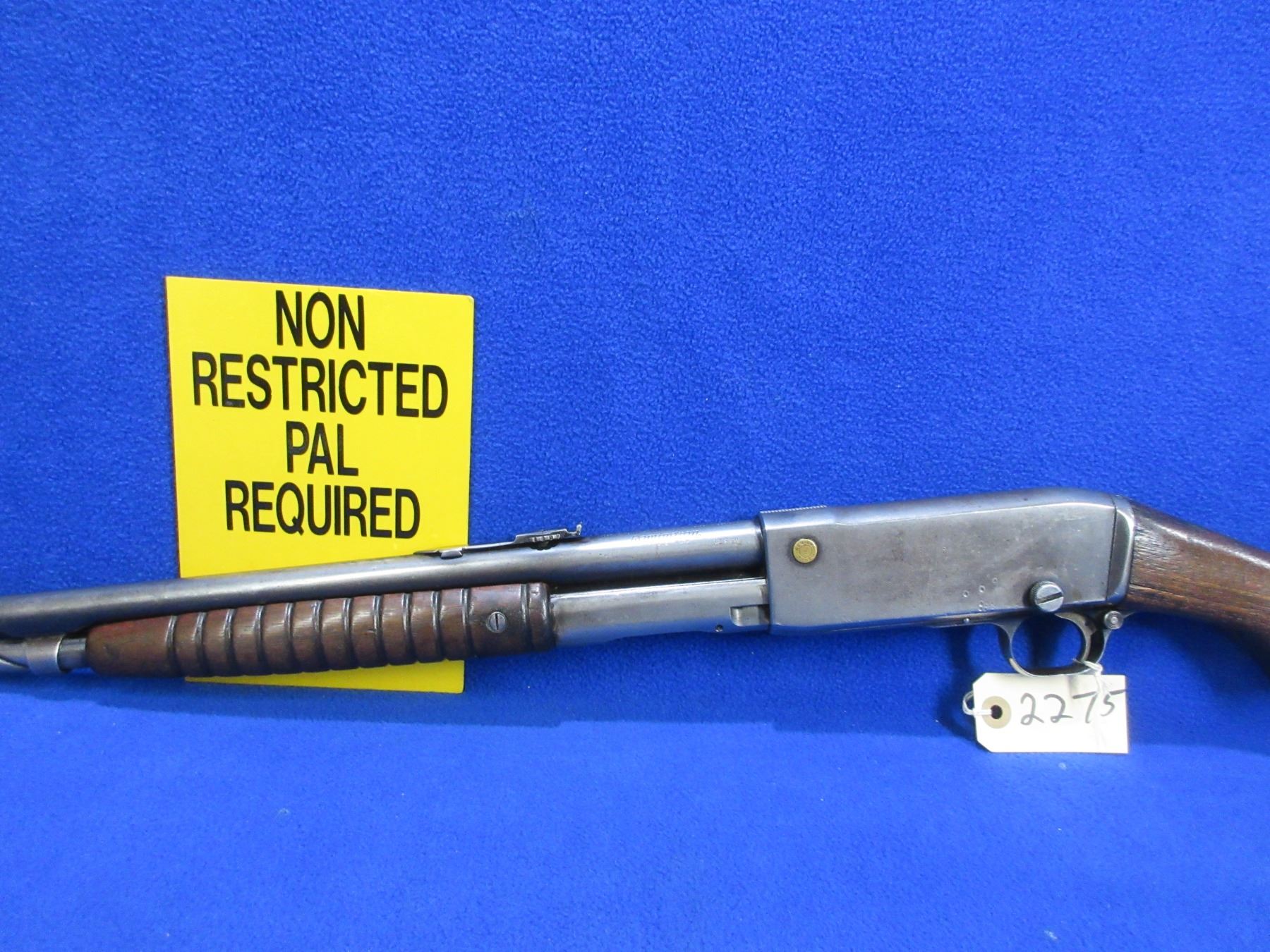 Non-Restricted - Remington Model 14 in 32 Rem. - This is a pump action takedown rifle with tube magazine, action appears to be in good working order but should not be fired as the stock has cracks. Barrel is 22", rifling is good to very good, bluing is turning grey or gone, has both sights, stock is cracked and chipped in the wrist area, forearm is good with usage marks, length of pull is 13 1/2", metal butt plate good. Ser # 62274