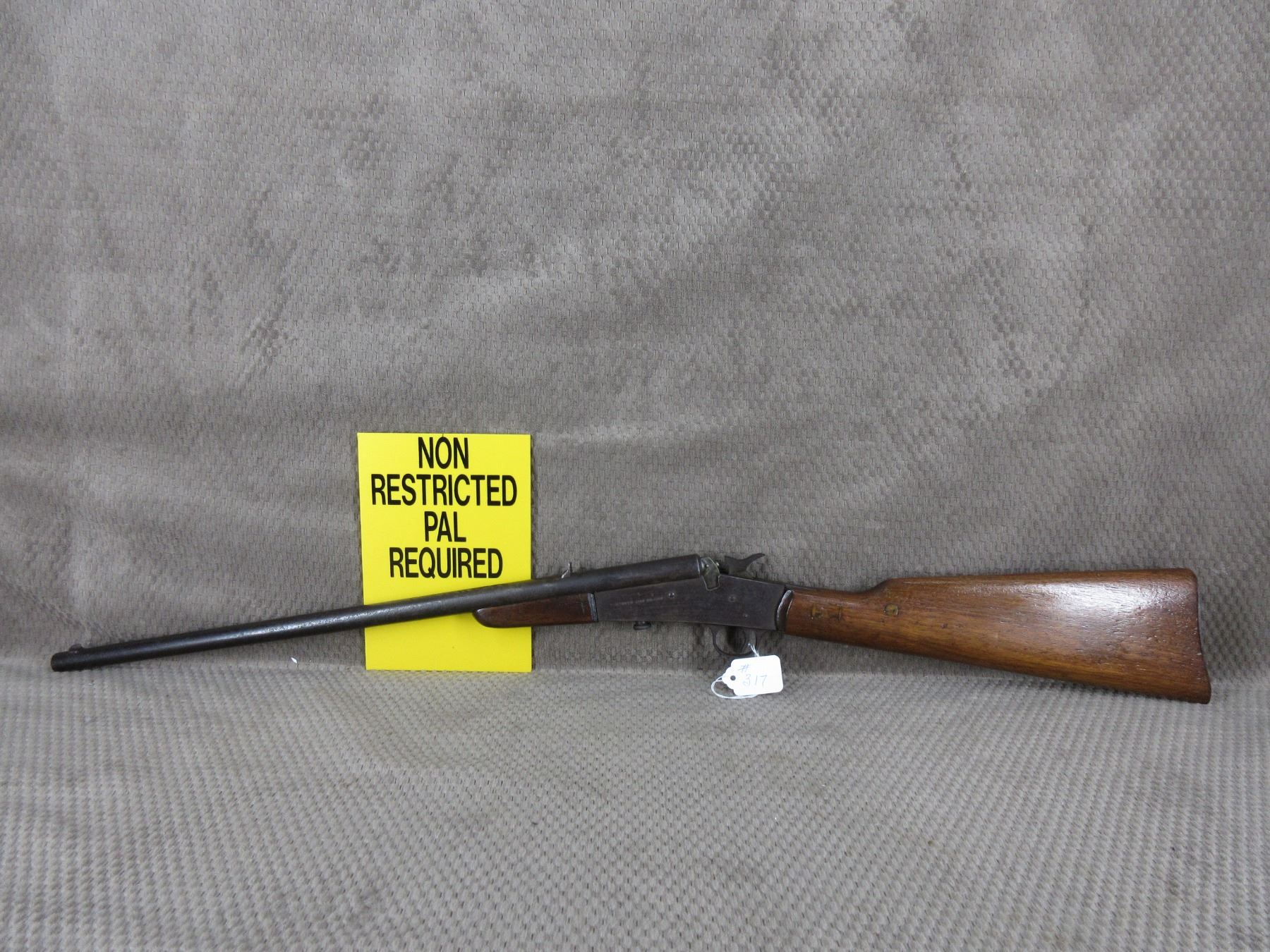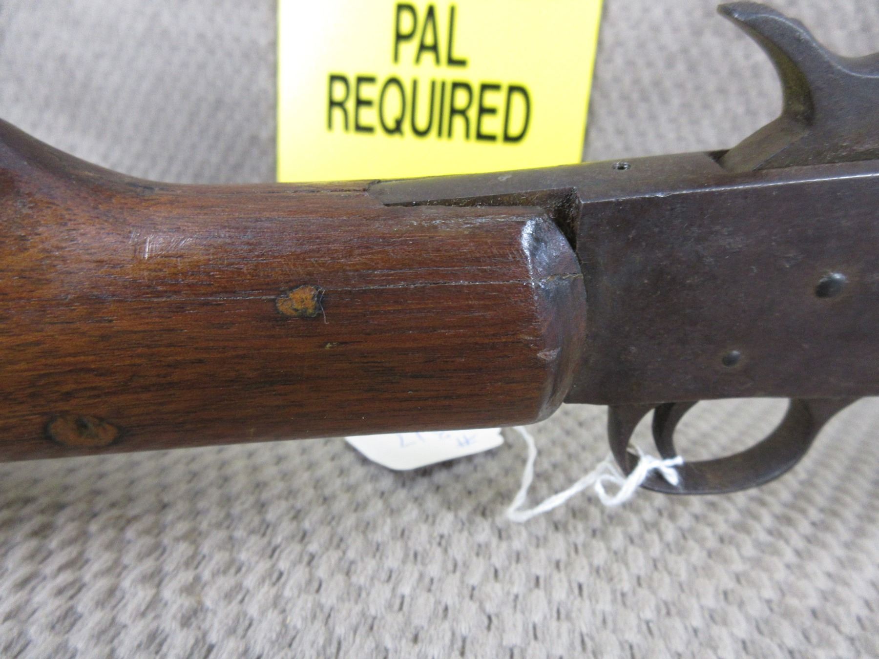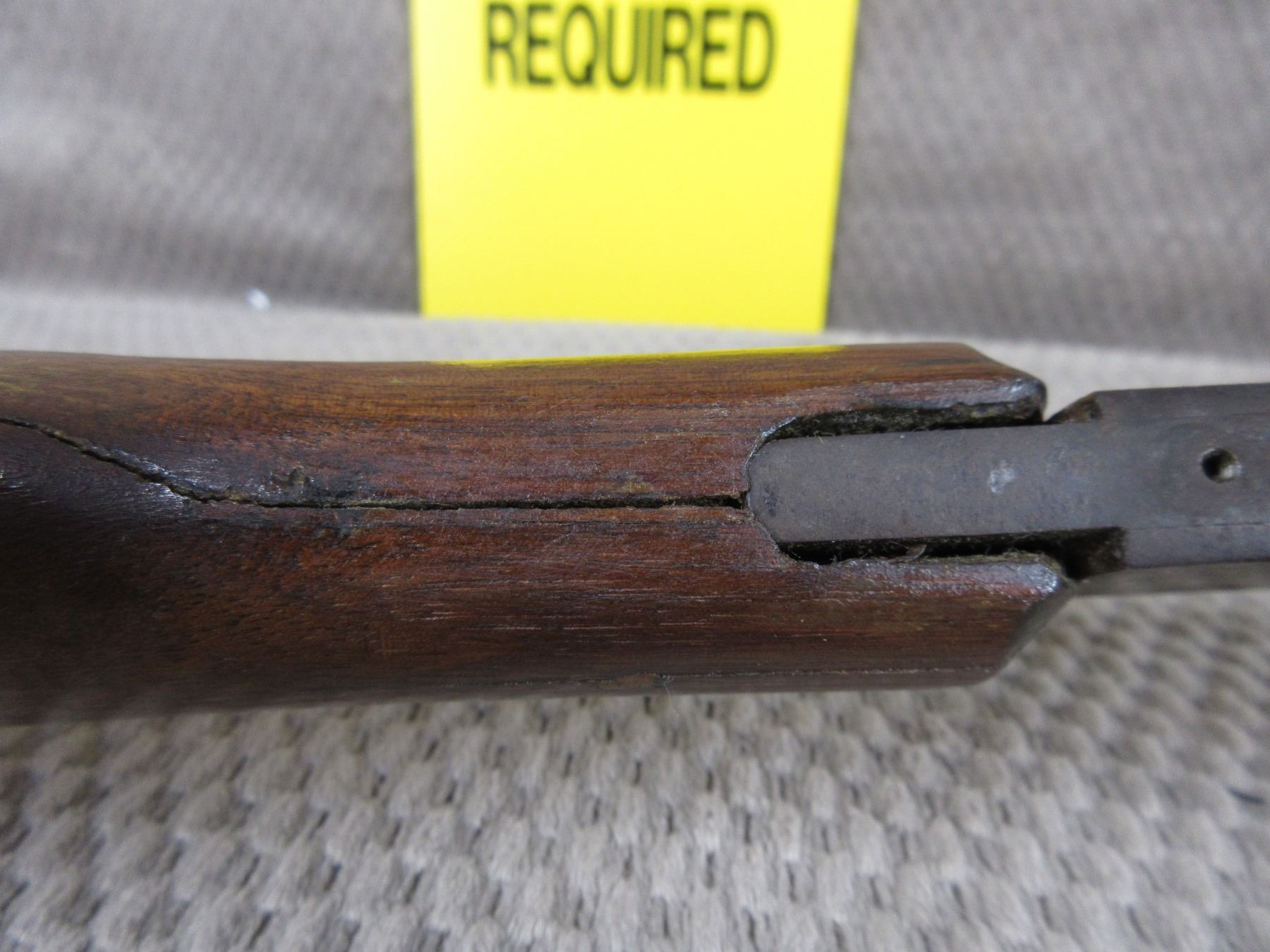 Non-Restricted - Remington Model 6 in 32 Rimfire - This falling block single shot rifle appears to be in working order. Barrel is 19 3/4", rifling is good, bluing is poor as it is pitted, has both sights, stock appears incorrect and has been broken and poorly repaired, forearm is good, metal butt plate, Ser # S100407