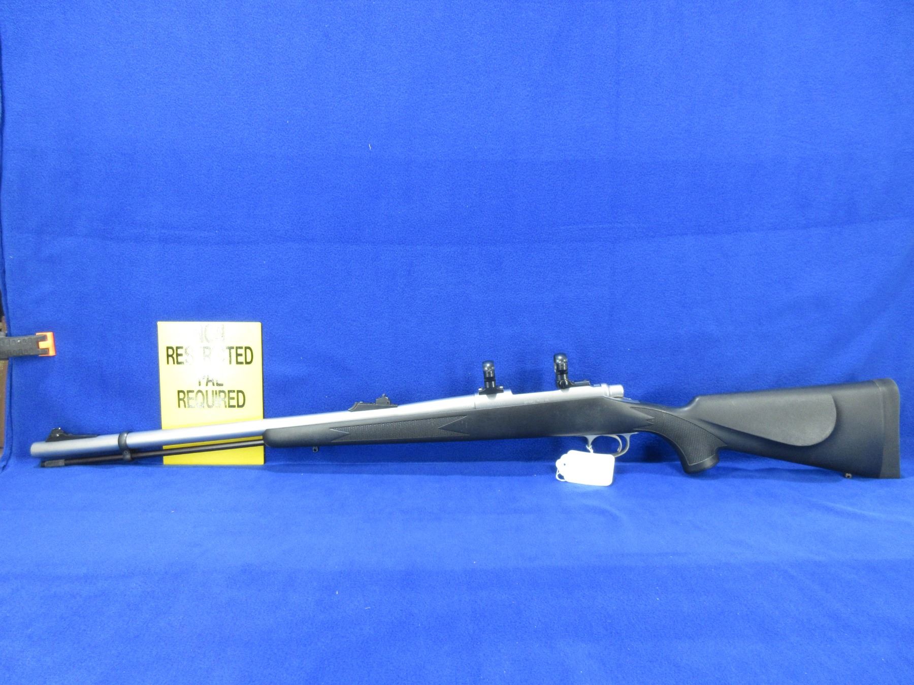 Non-Restricted - Remington Model 700ML in 50 Cal. - This bolt-action inline muzzleloading rifle appears to be in good to very good working order. Silver finish barrel is 24", finish is very good, rifling is good to very good, has both sights & scope rings, stock very good, rubber recoil pad good, Ser # ML002279