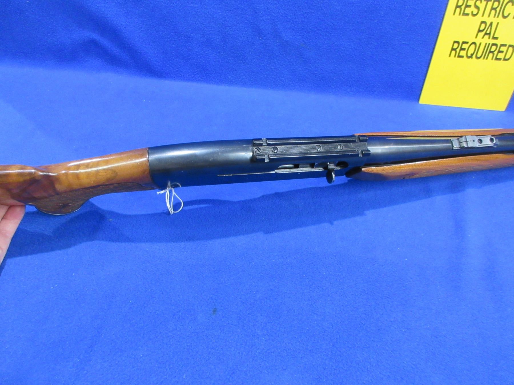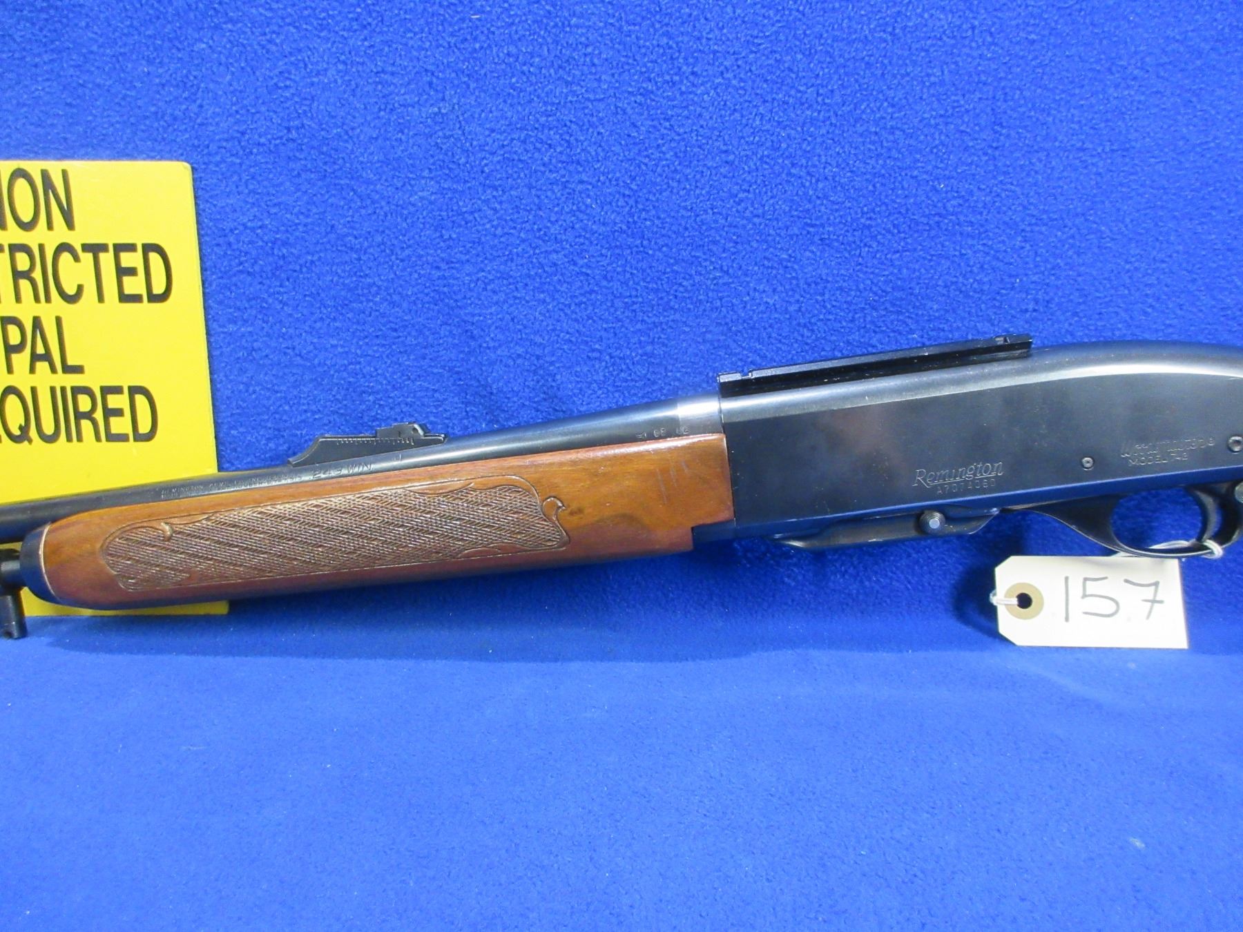 Non-Restricted - Remington Model 742 Woodsmaster in 243 Win. - This is a semi-auto rifle with removable magazine, action appears to be in good to very good working order. Barrel is 22", rifling is good to very good, bluing is good, has front sight, rear sight is missing but has a Weaver style base, stock and forearm are good to very good with minor usage marks, length of pull is 13 1/2", butt plate good. comes with swivel studs. Ser # A7074060