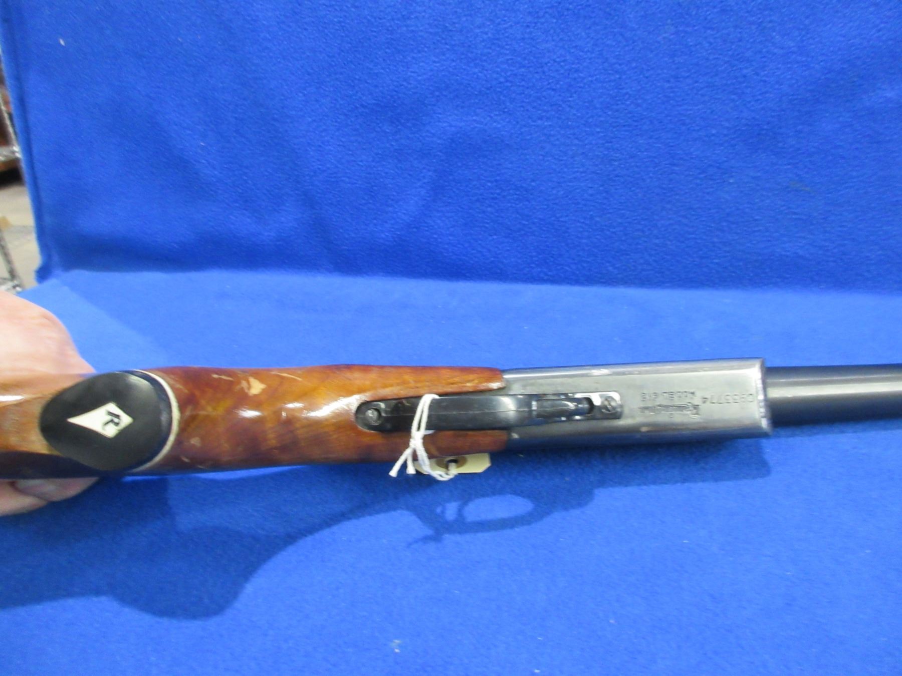 Non-Restricted - Remington Model 812 in 12 Ga. 2 3/4" Full - This is a tip up single shot shotgun in non working order as forearm is missing, action is tight. Barrel is 30", bore is good, bluing is good to very good, bead front sight is missing, stock is good with finish wear and flaking, forearm is missing, length of pull is 14", butt plate good. Has front swivel, rear stud is missing. Ser # C933774