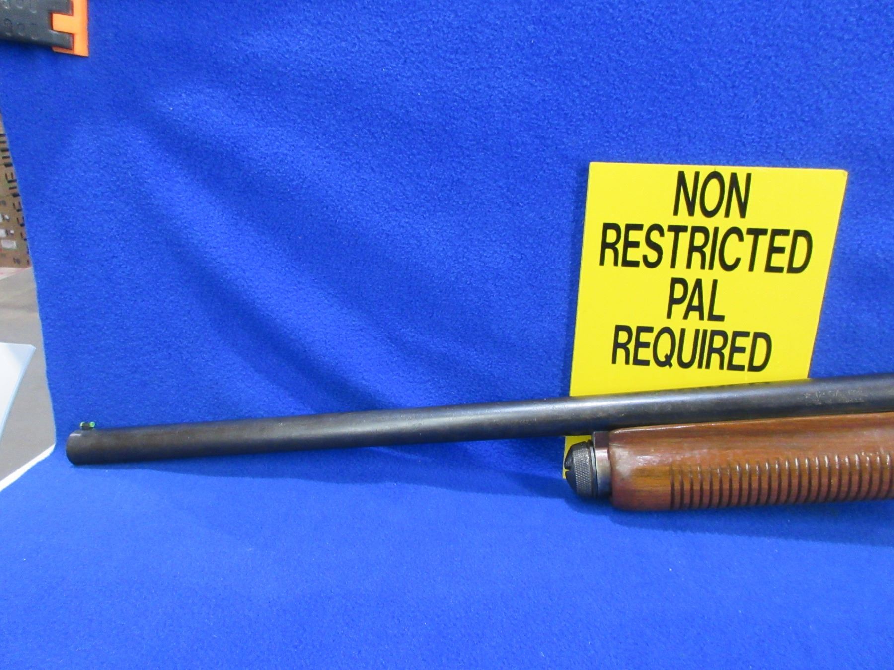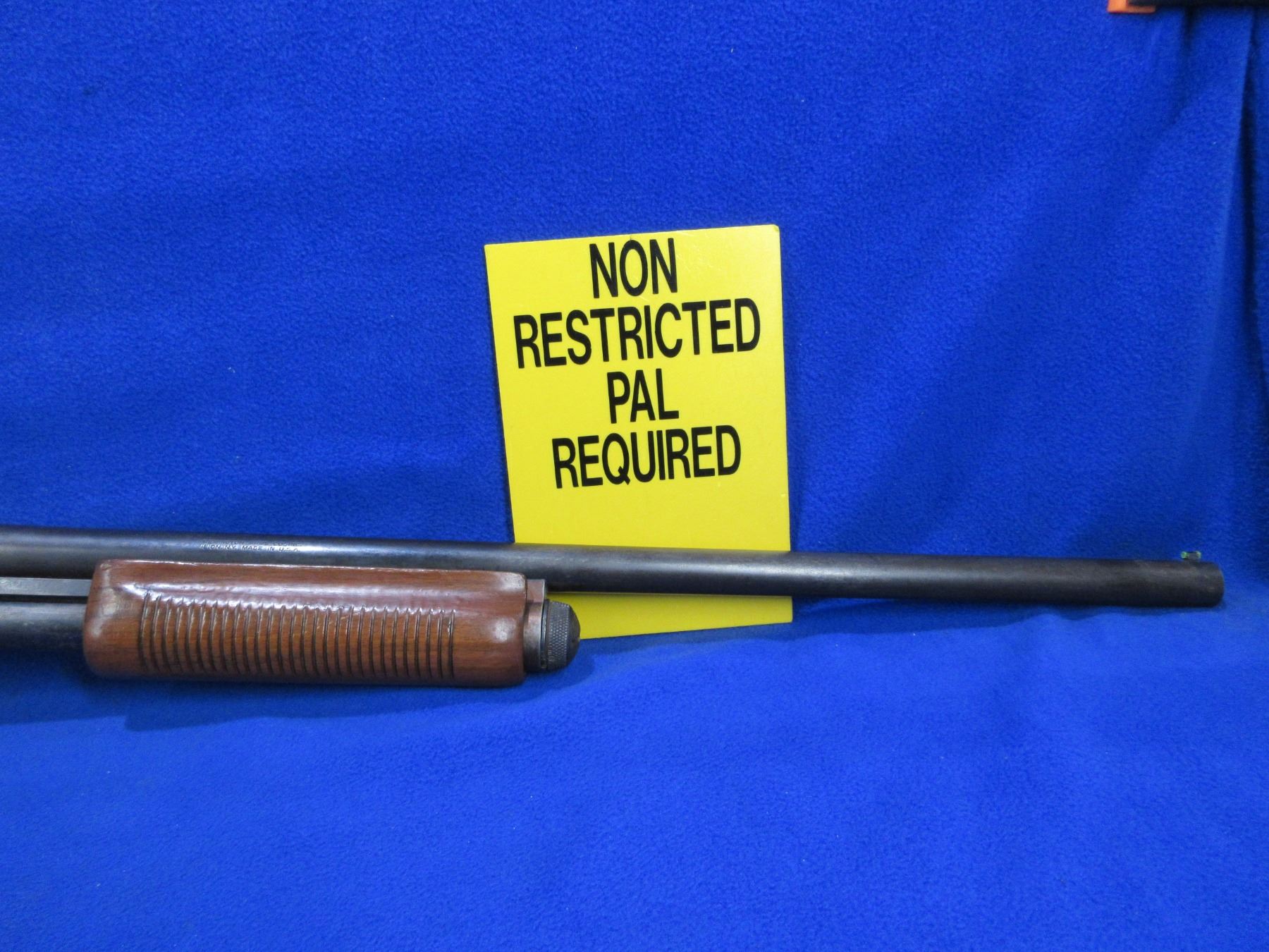 Non-Restricted - Remington Model 870 in 12 Ga. 2 3/4" Full - This pump action shotgun appears to be in good to very good working order. Barrel is 24", bore is good to very good, bluing is fair to good, has firer optic front sight, stock has a major toe repair and appears refinished and the logo is missing from the gripcap, forearm is good but has been refinished, rubber recoil pad. Ser # T198630V