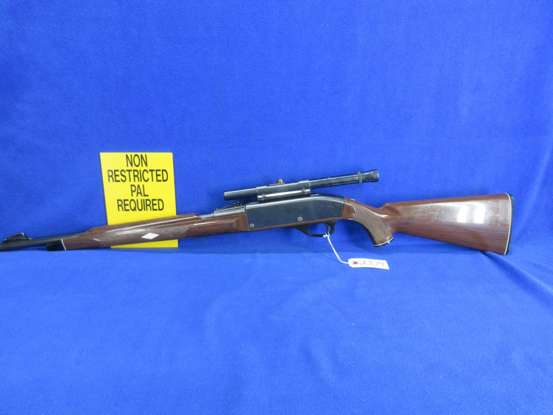 Non-Restricted - Remington Model Nylon 66 in 22 LR - This semi-auto rifle with tube magazine appears to be in good to very good working order. Barrel is 19 1/2", rifling is good to very good, bluing is good with scratches and wear, has both sights and a Weaver B4 riflescope - appears not clear, fine crosshair, nylon stock is fair to good with usage marks and some gouges by the heel, butt plate good. Ser # None