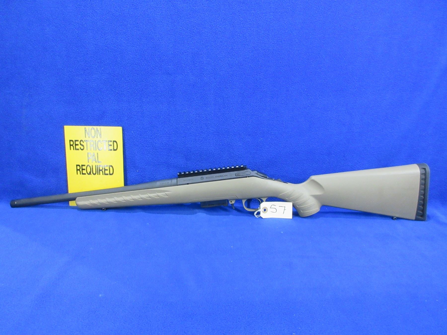 Non-Restricted - Ruger American Ranch in 7.62x39 - This is a bolt action rifle with removable magazine, action appears to be in good to very good working order, Ruger Marksman adjustable trigger. Compact threaded barrel is 16.12", rifling is fair to good, matte black finish is good to very good, has no sights but has picatinny rail, synthetic stock is good to very good, length of pull is 14", rubber recoil pad good, comes with swivel studs. Ser #691518519