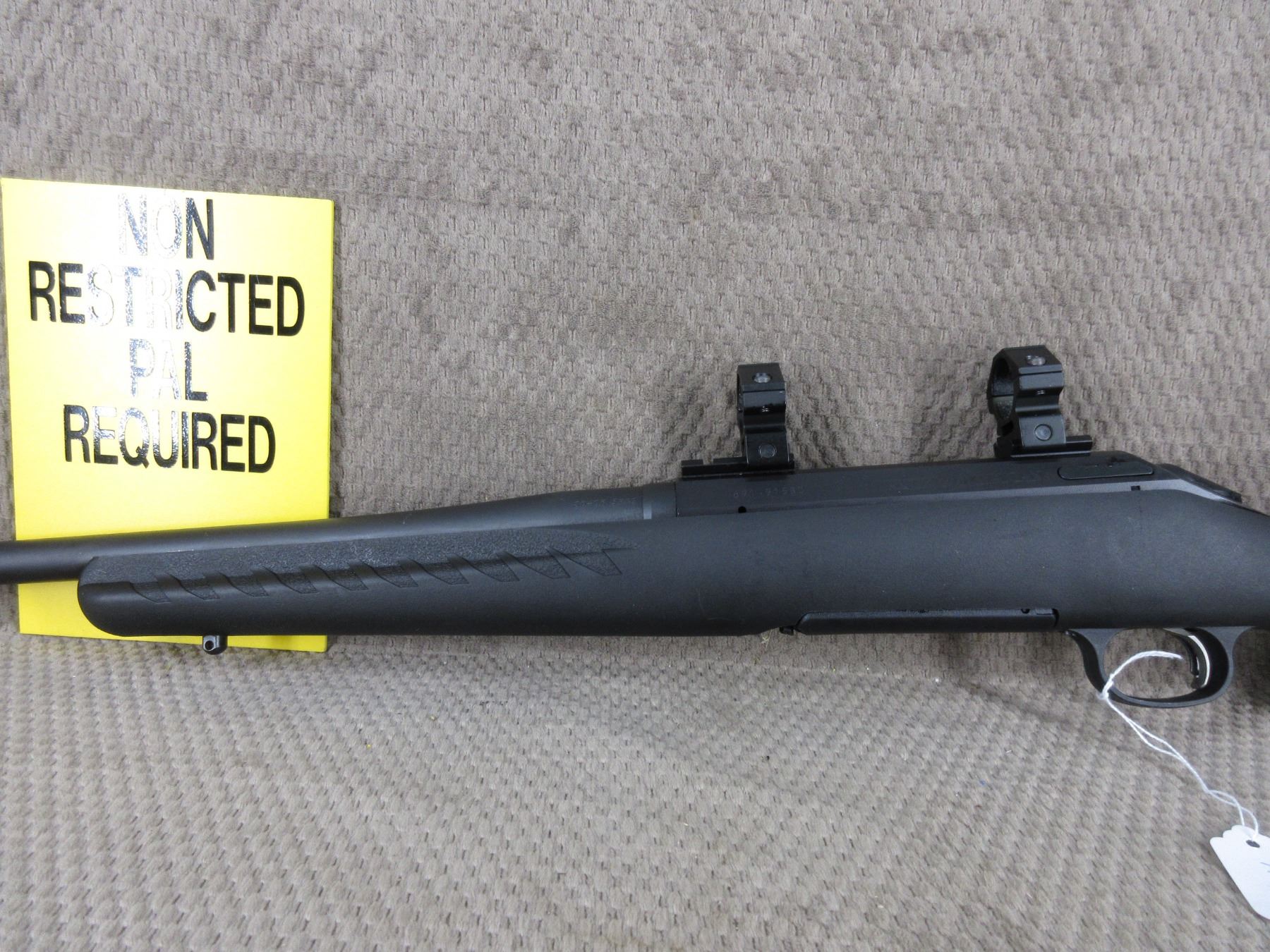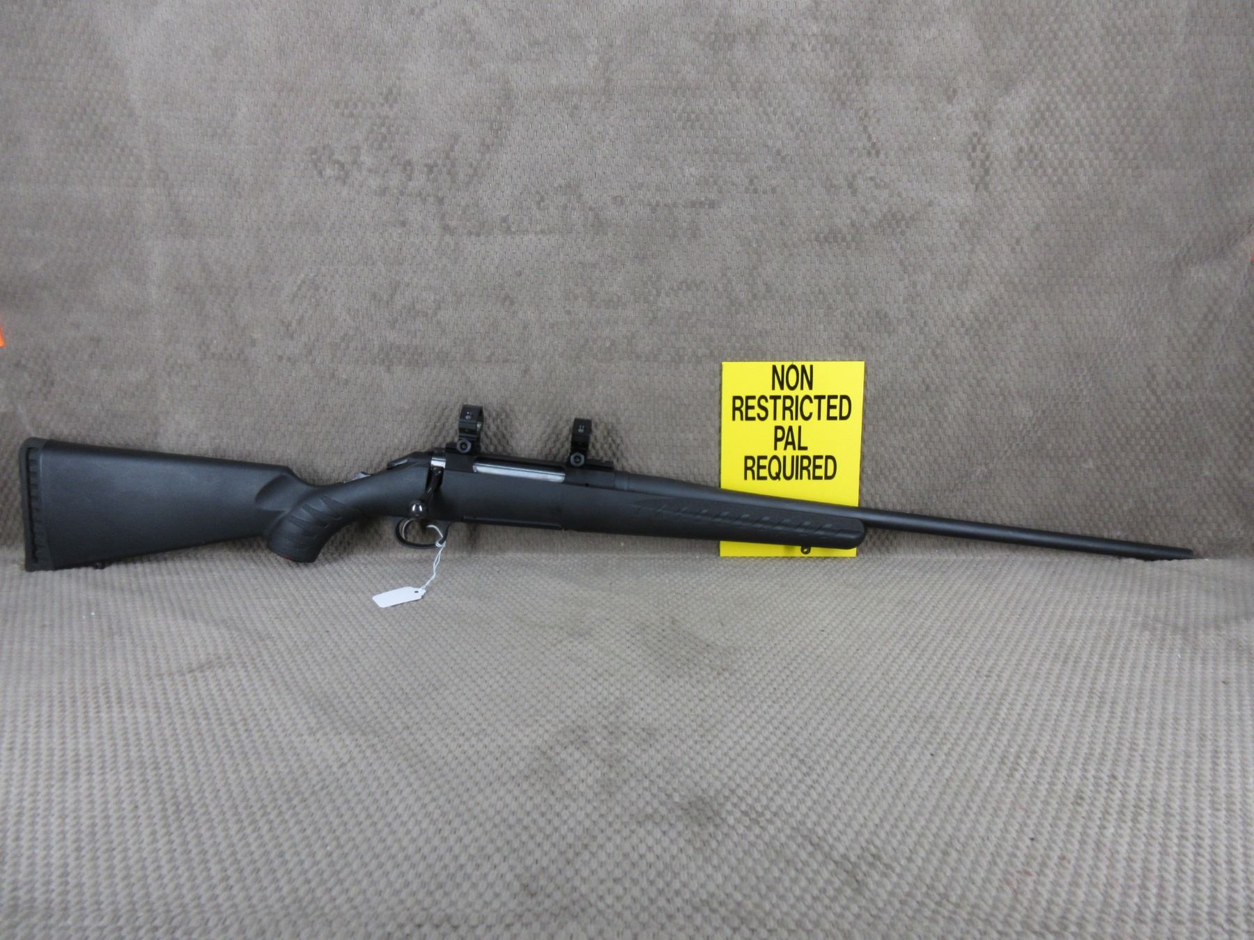 Non-Restricted - Ruger American in 30-06 Springfield - This bolt action rifle with magazine appears to be in like new condition. Barrel 22", bluing is excellent, rifling is excellent, has no sights but comes with bases & rings, synthetic stock is excellent, recoil pad, has swivel studs, Ser # 691-91580