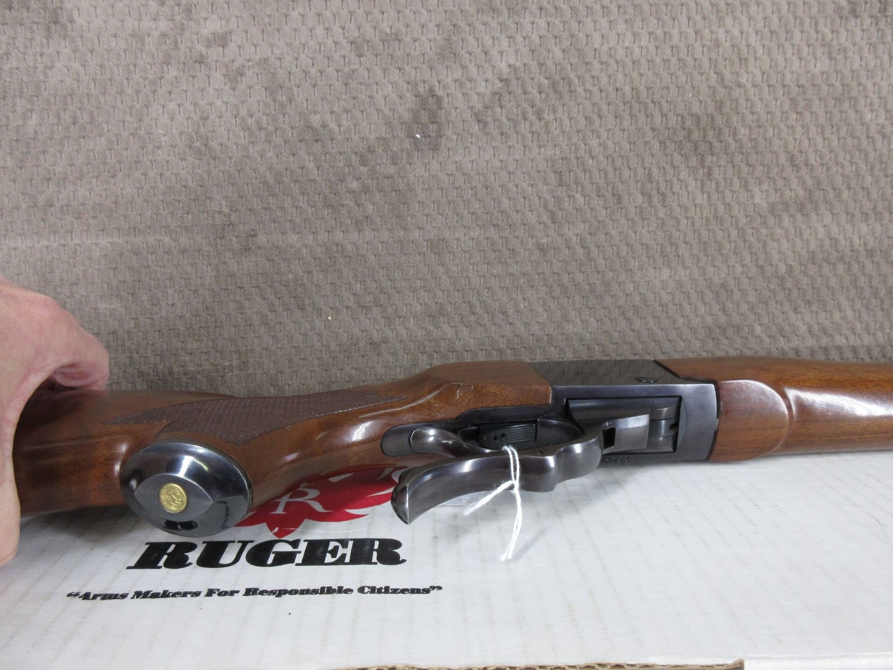 Non-Restricted - Ruger Number 1 in 7X57 - This single shot rifle with full walnut Mannlicher stock appears as new in box. Has minor handling marks, comes with 20" light weight barrel, open sights and ruger rings, box, papers.
