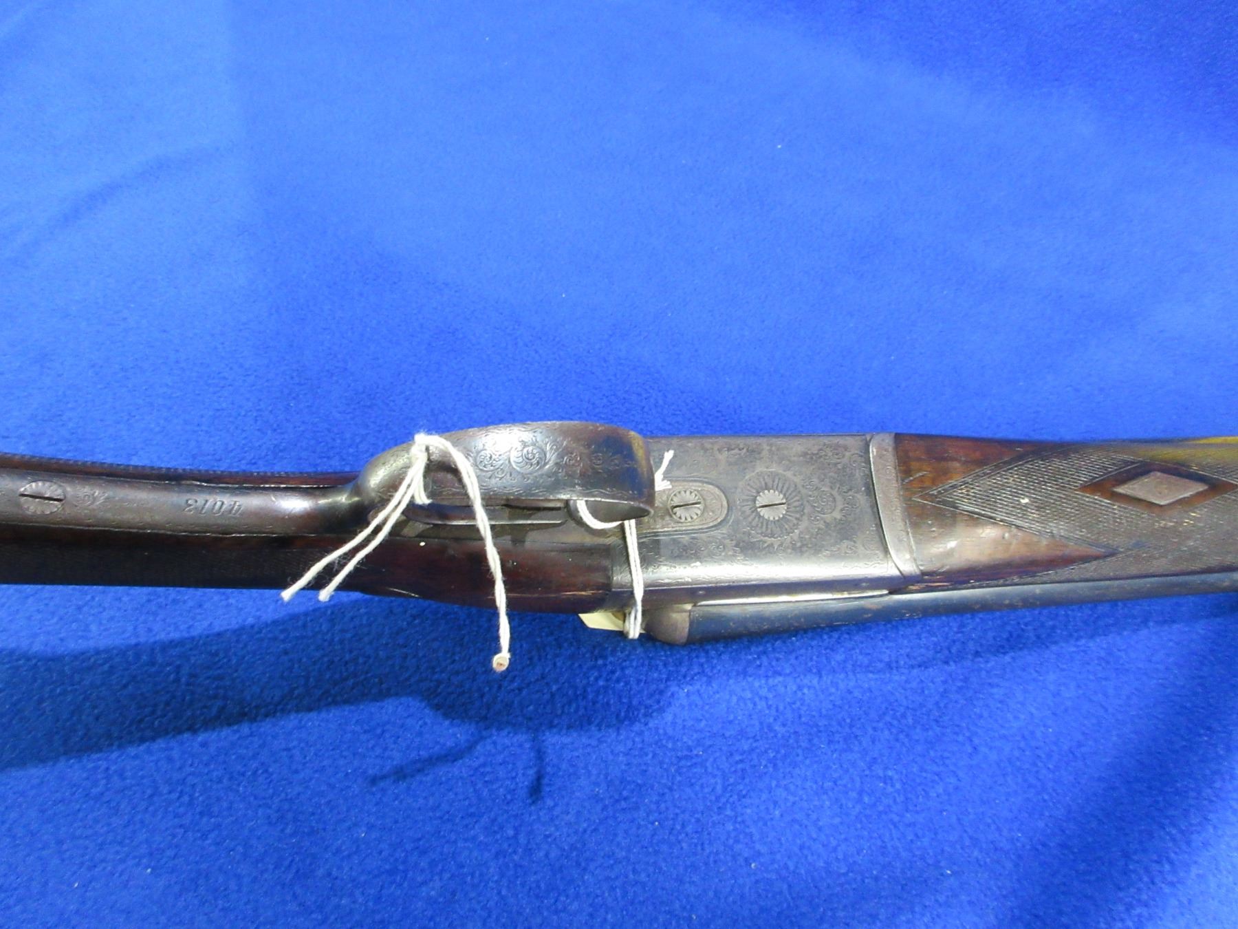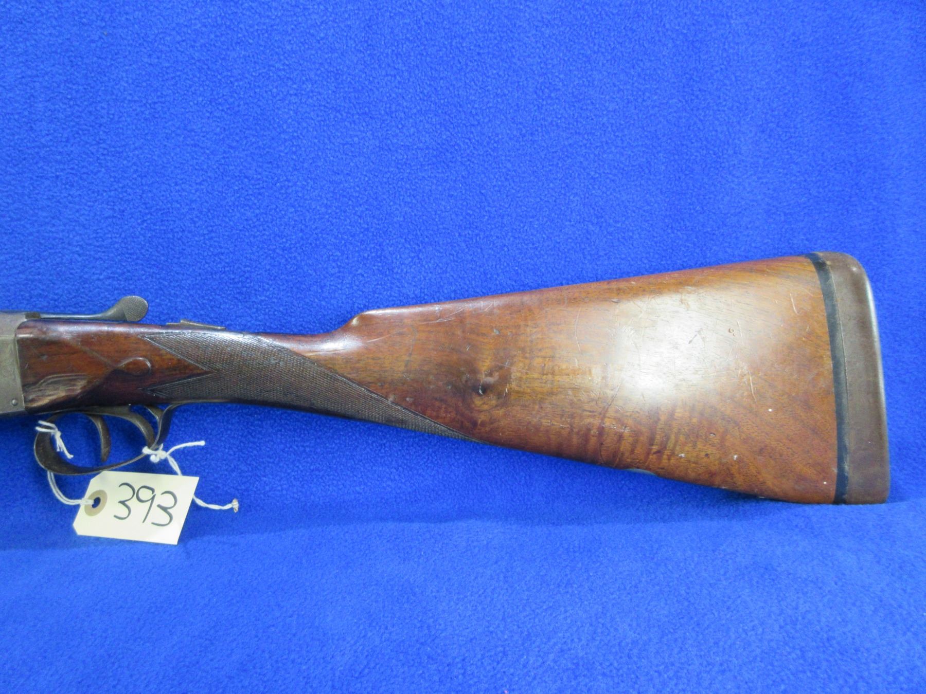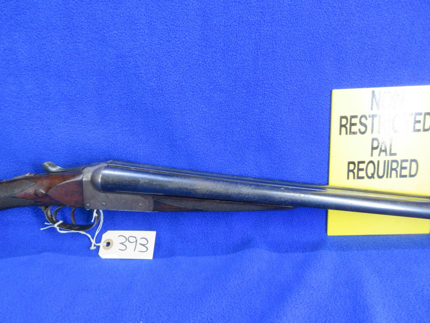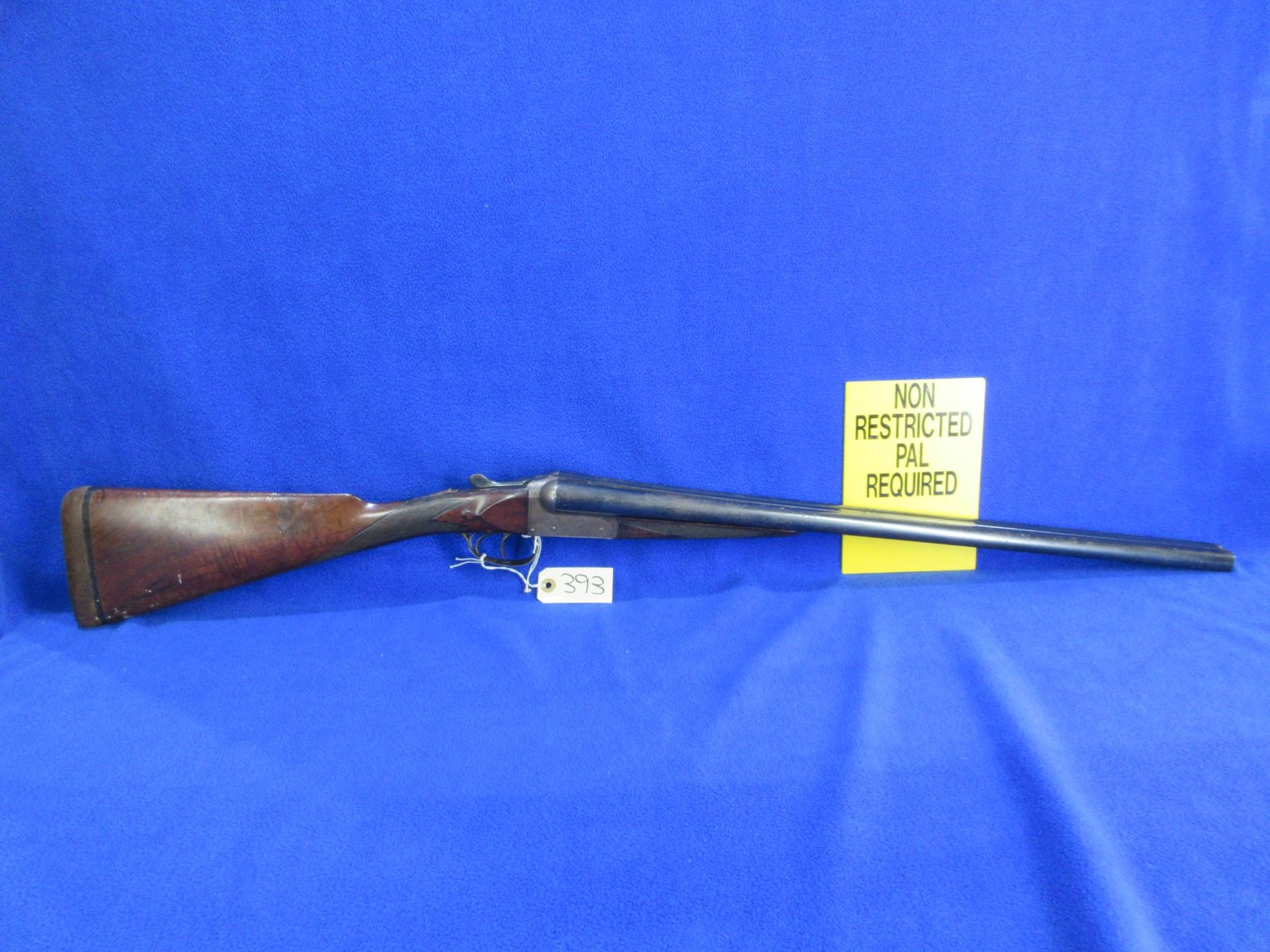 Non-Restricted - Russell Hillsdon SxS in 12 Ga. 2 1/2" - This is a tip up SXS shotgun, action is tight and appears to be in good working order. Barrels are 25", bores are good, bluing has some rust and pitting, has bead front sight, stock is good for age with many usage marks, forearm is good for age with many usage marks, rubber recoil pad good. Ser # 4013