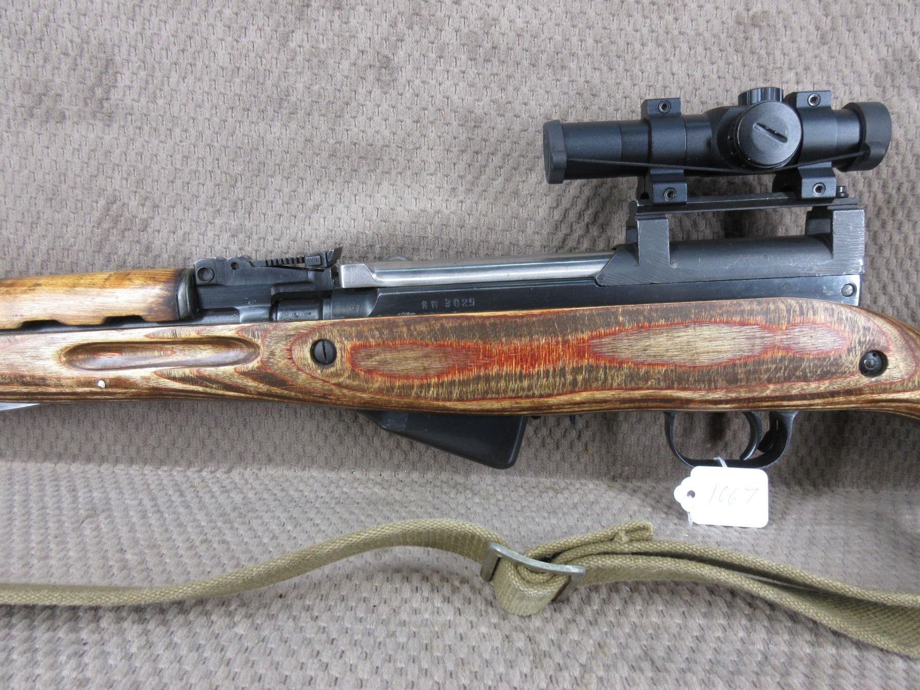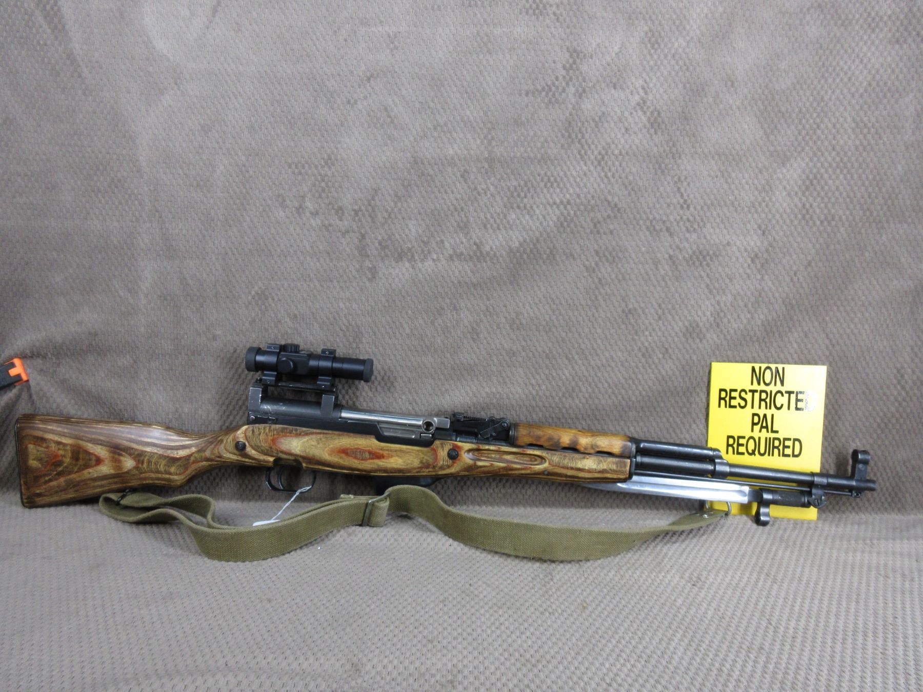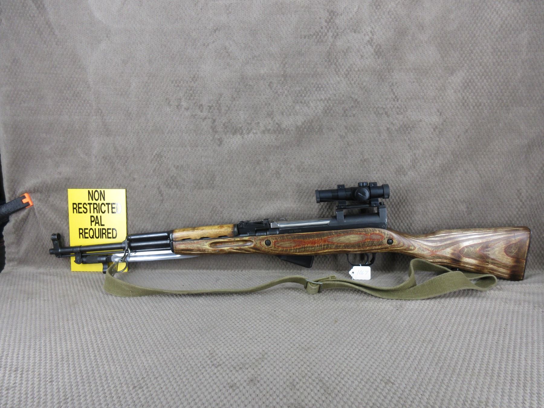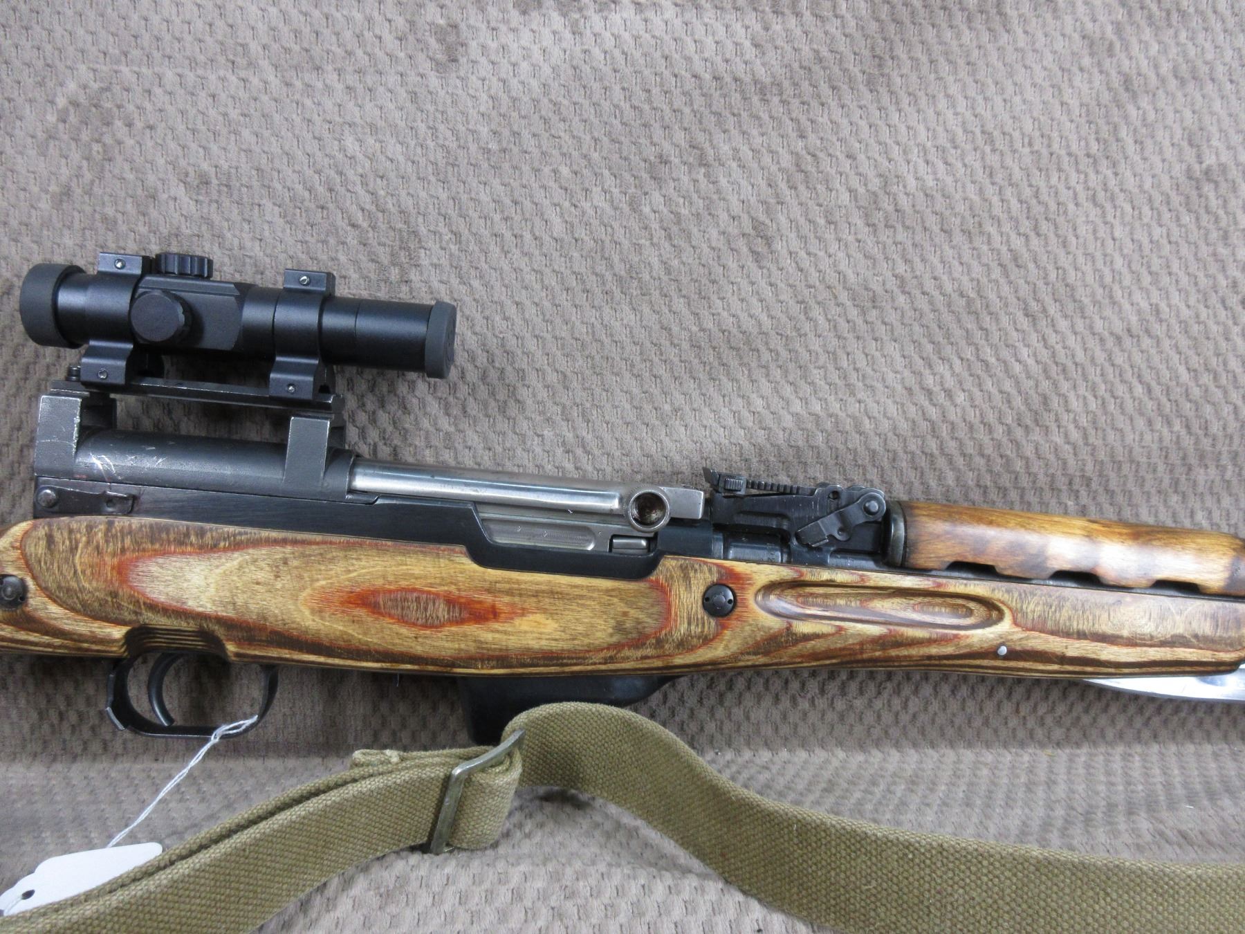 Non-Restricted - Russian SKS in 7.62X39MM - This semi-auto SKS appears to be in good to very good working order. Bluing is good to very good, rifling is very good, laminated wood stock is very good, Bushnell Sportsman Red Dot scope is clear and dot lights up, has bayonet, cleaning rod, cleaning kit in the stock, strap. Does not appear to be numbers correct. Ser # AH3029