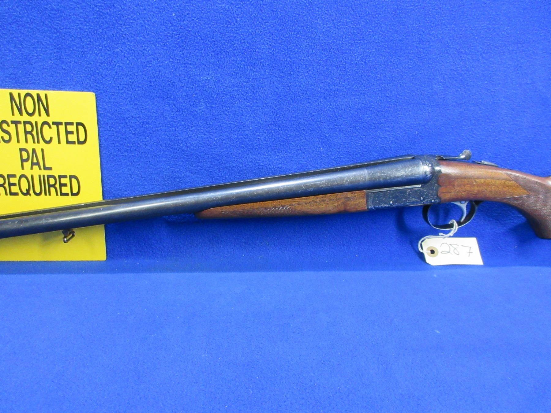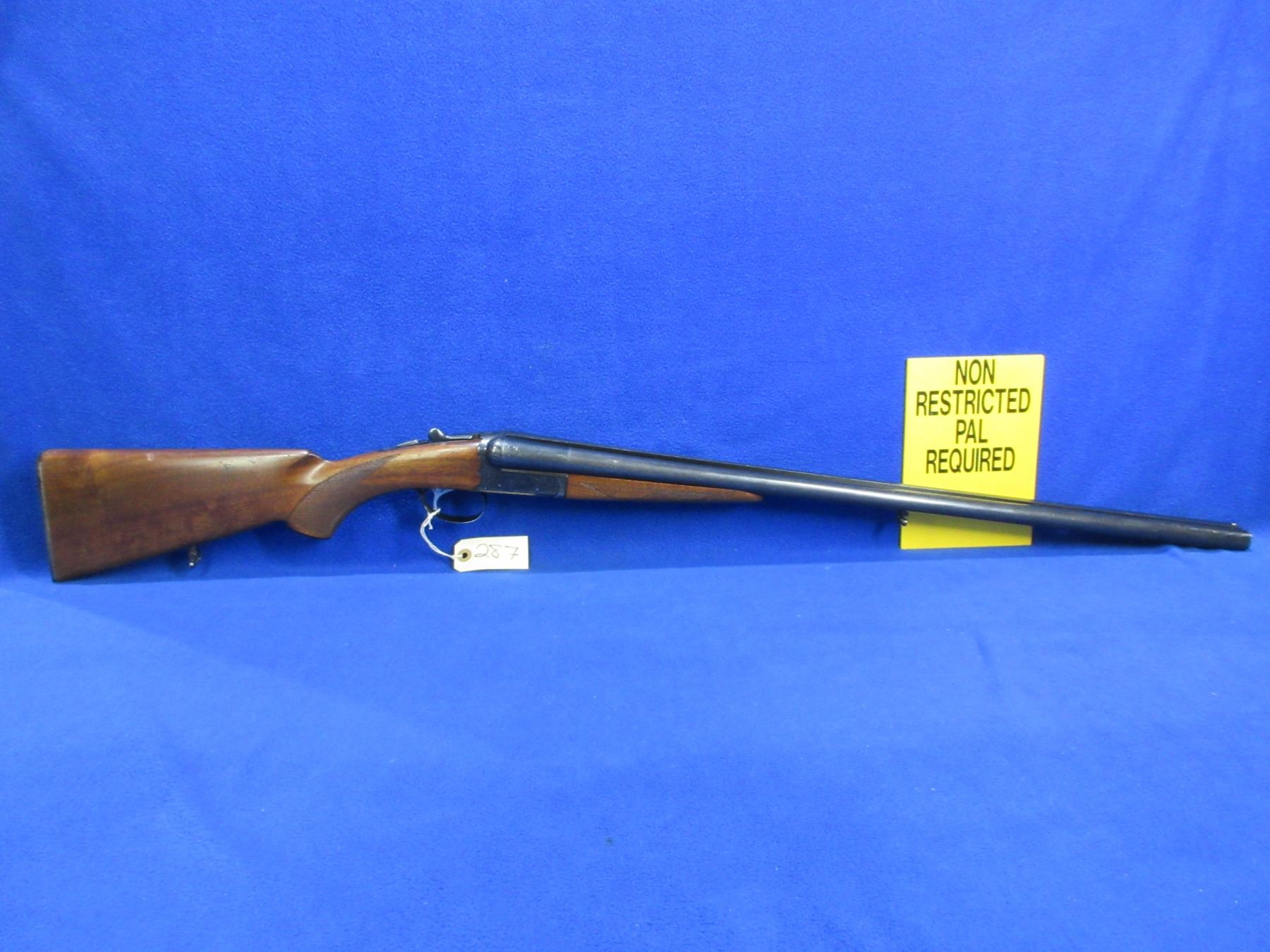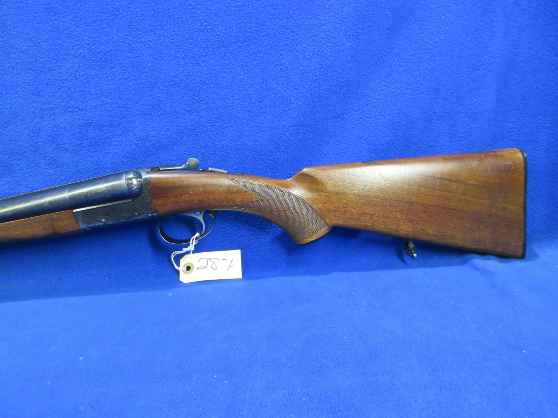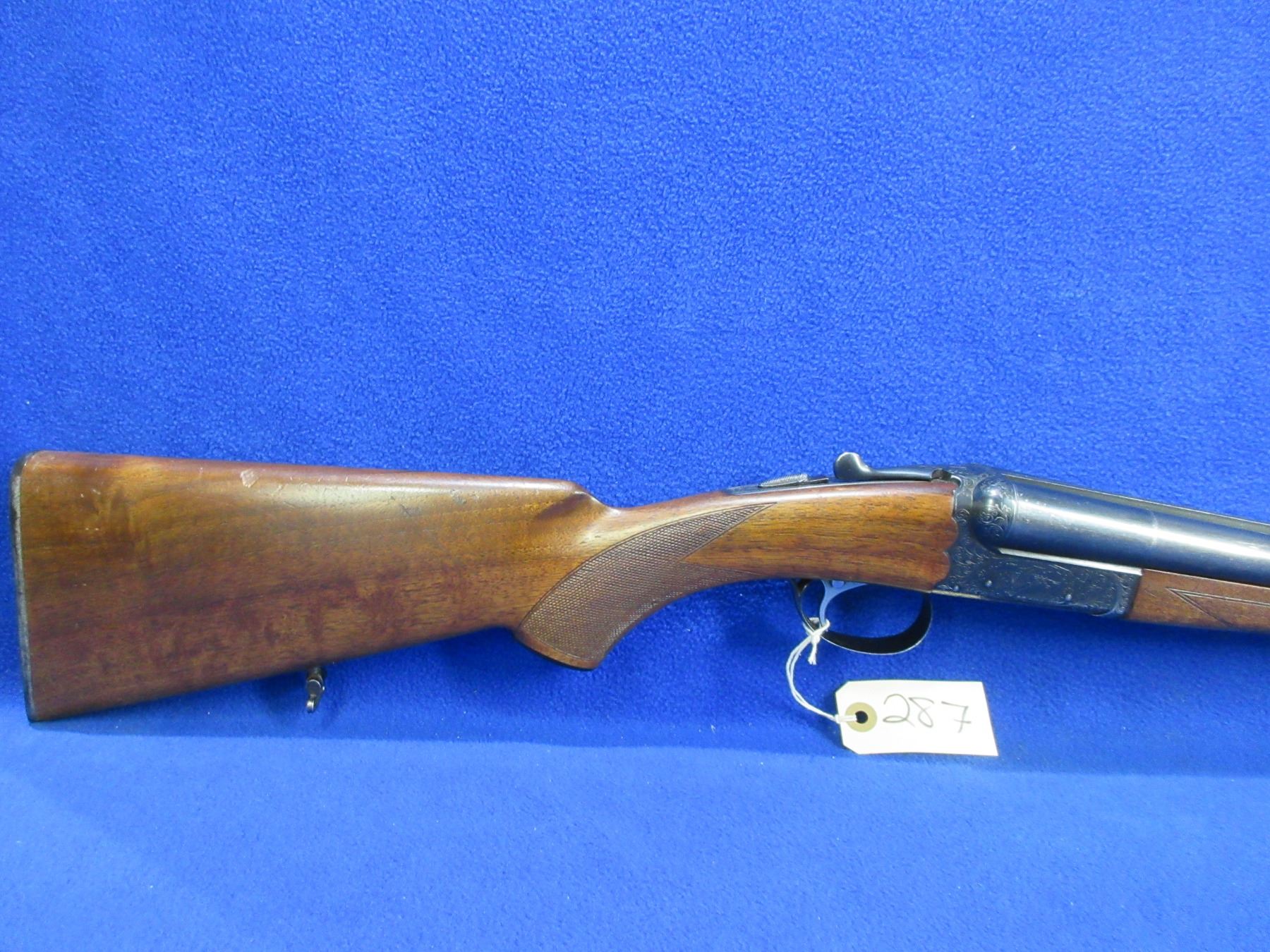 Non-Restricted - SKB Arms Co. Model 100 in 12 Ga. 2 3/4" - This is a tip up SXS shotgun, nicely engraved action is tight and appears to be in good working order. Barrels are 28", bores are good but right barrel has two small dents approx 4" and 9" from muzzle, bluing is good with many light scratches, has bead front sight, stock is good with usage marks, forearm is good with usage marks, length of pull is 14", butt plate good, comes with swivels. Ser # S5134889