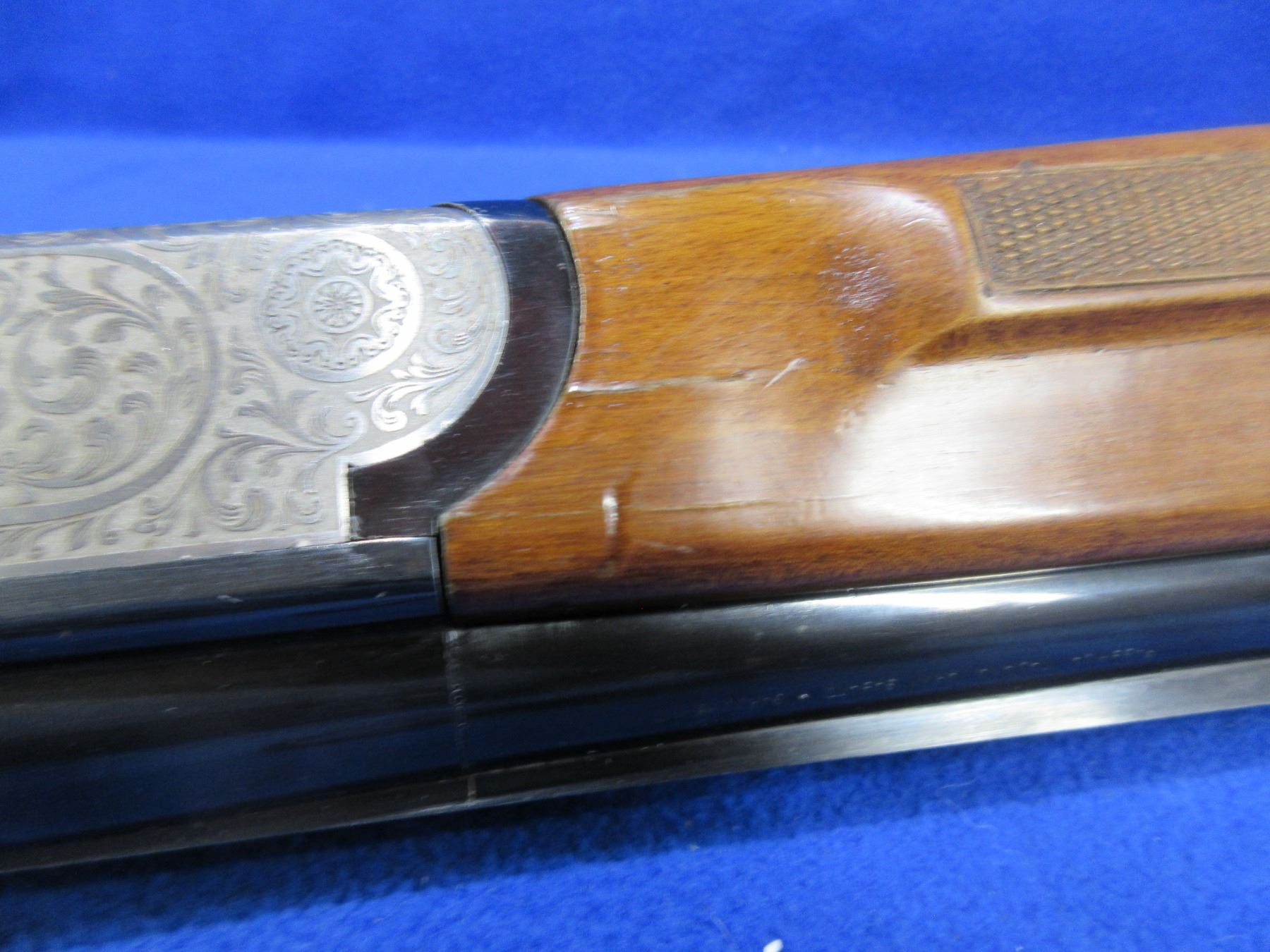 Non-Restricted - Sabatti O/U in 12 Ga. 3" - This is an over/under shotgun, action is tight and appears to be in good to very good working order. Vent rib barrels are 28", bores are good to very good, bluing is good with some light scratches, has bead front sight, stock has very nice grain and is good with usage marks, forearm is good but has 2 finish drying cracks on the back left side, length of pull is 13 3/4", butt plate good, comes with swivel studs. Ser # 47537