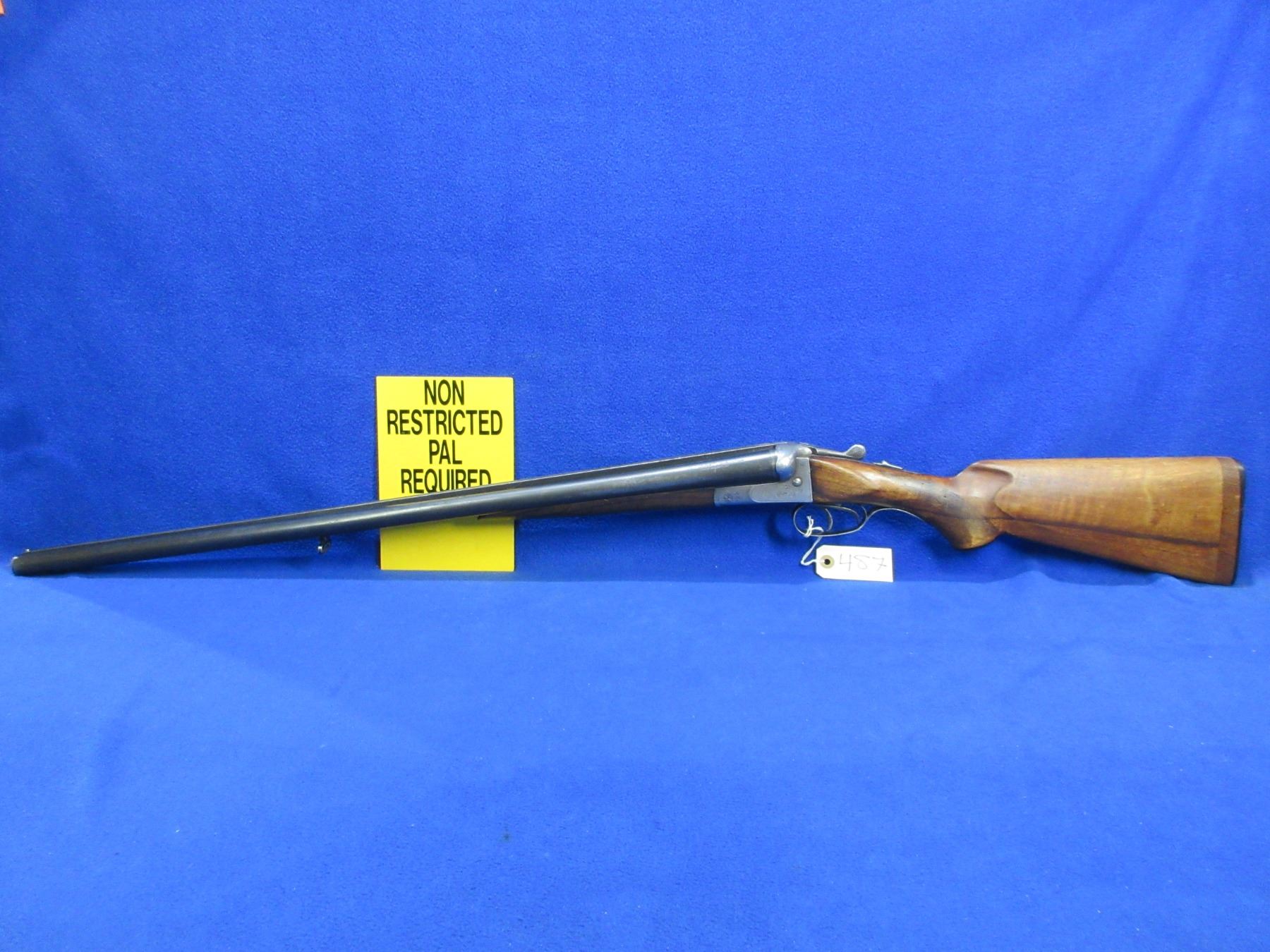 Non-Restricted - Sauer & Sohn Model 8 in 12 Ga.2 3/4" - This is a tip up SXS shotgun, action is tight and appears to be in good to very good working order. Barrels are 28 1/4", bores are good, bluing is good with some wear spots, has bead front sight, stock has a hairline crack on each side behind the action and has been extended, forearm is good with usage marks, length of pull is 14 3/4", butt plate good, comes with front swivel, rear swivel stud missing. Ser # 3672