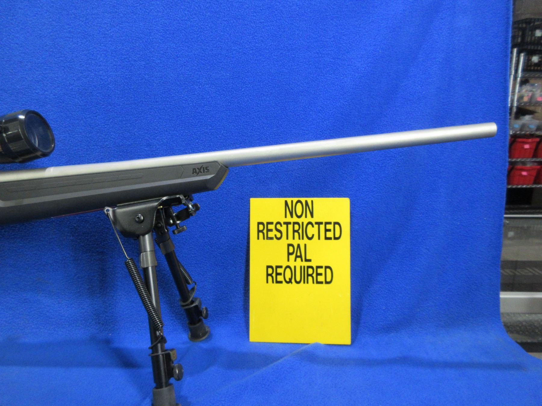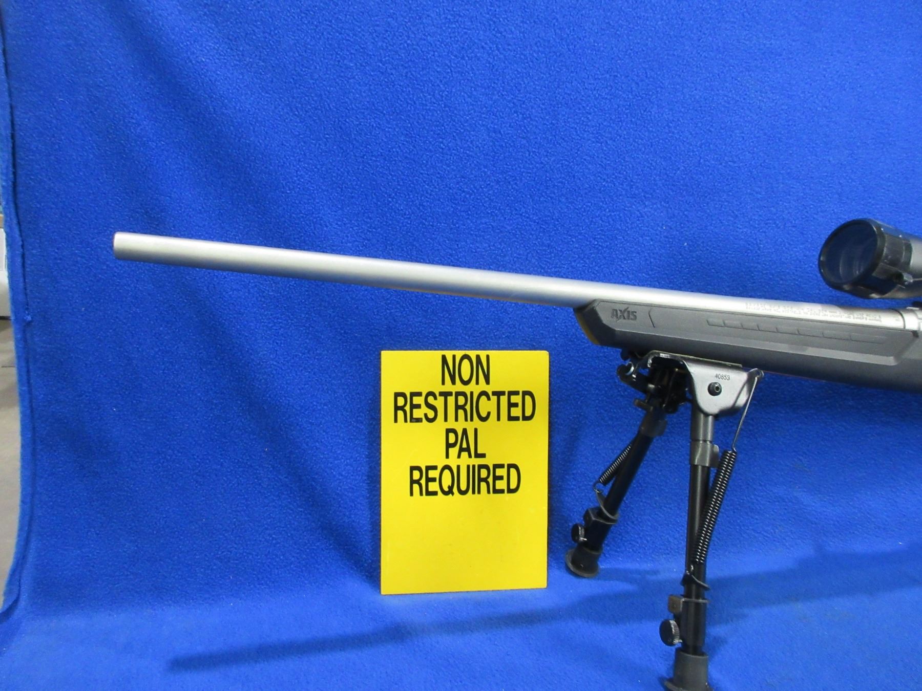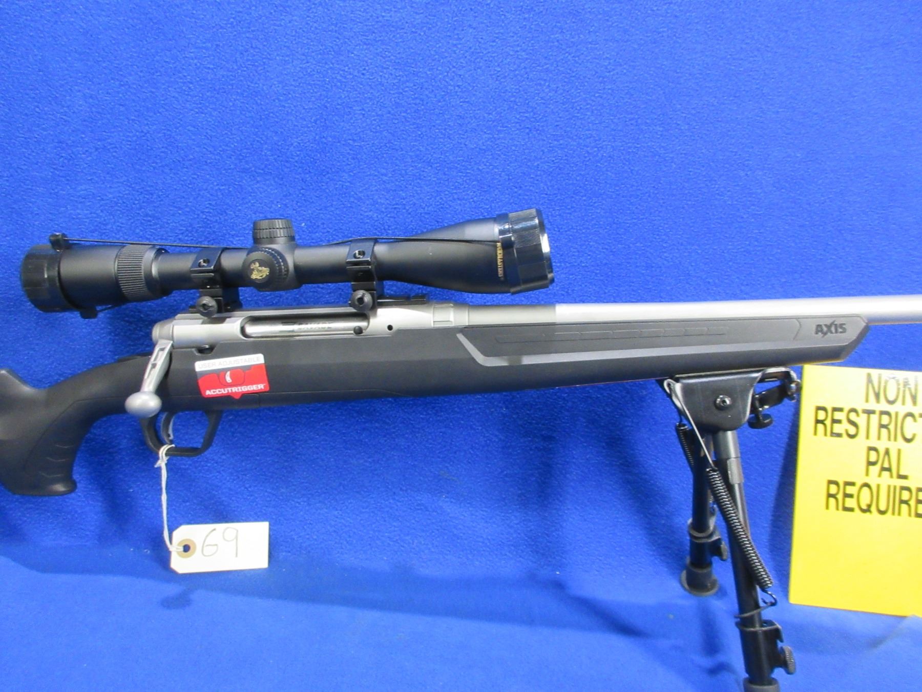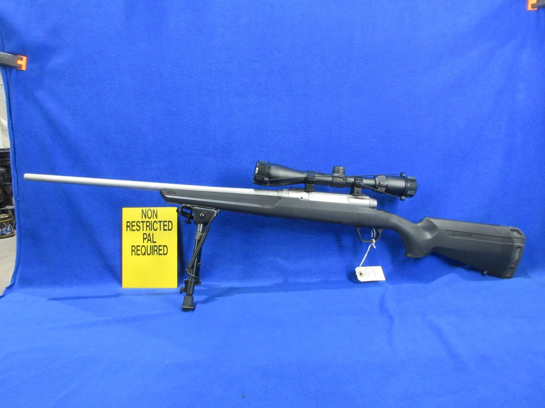 Non-Restricted - Savage Axis in 308 Win - This is a bolt action rifle with AccuTrigger and removable magazine, action appears to be in very good working order. Stainless Barrel is 22", rifling is very good, stainless finish is good to very good, has no sights but has Nikon Buckmasters 3-9x40 scope with lens covers - appears clear - duplex reticle, synthetic stock is good to very good, length of pull is 13 1/2", rubber recoil pad good, comes with scope paperwork, rear swivel stud and Champion (40853) 9" - 13" bipod. Ser # N272680