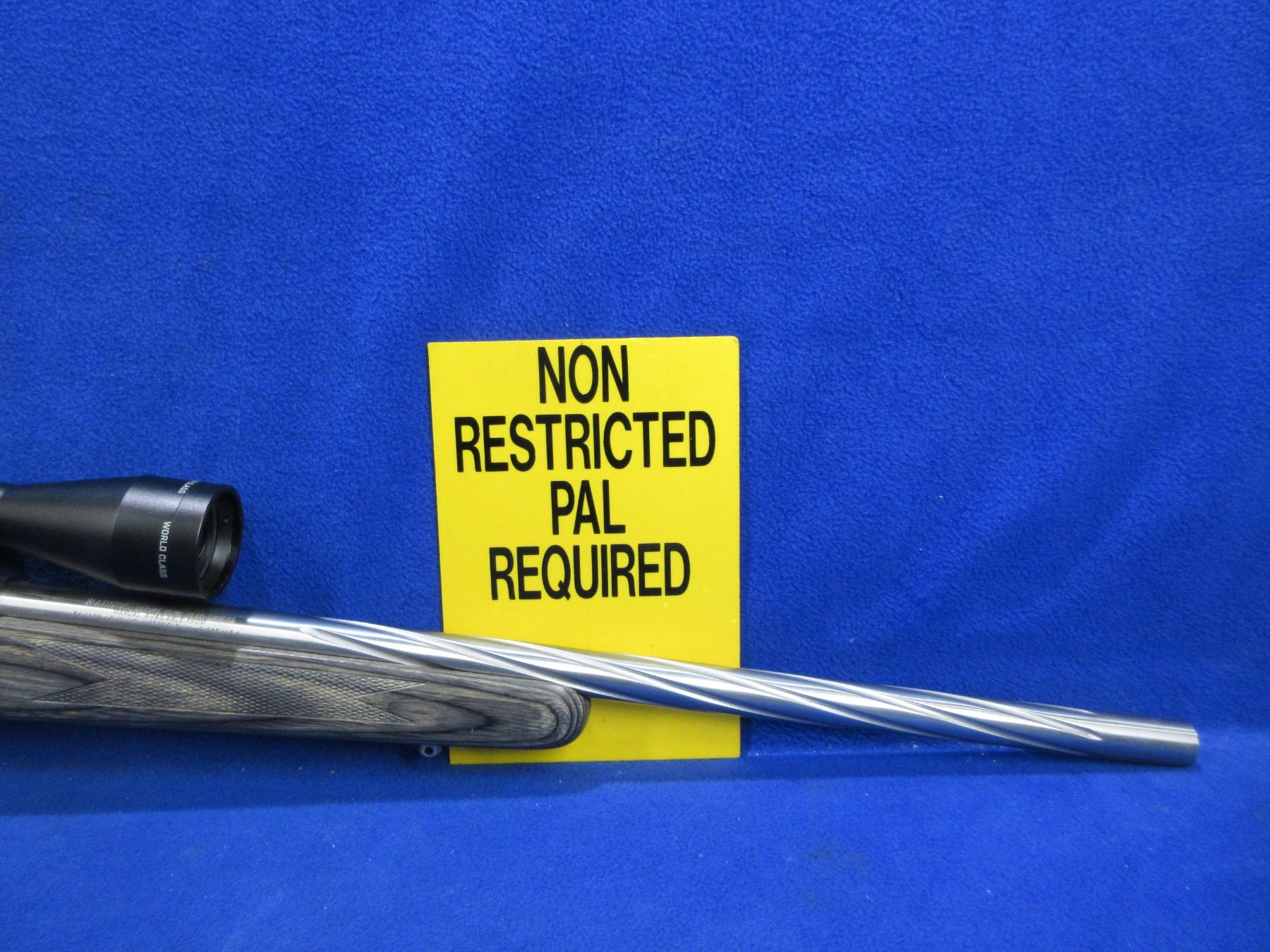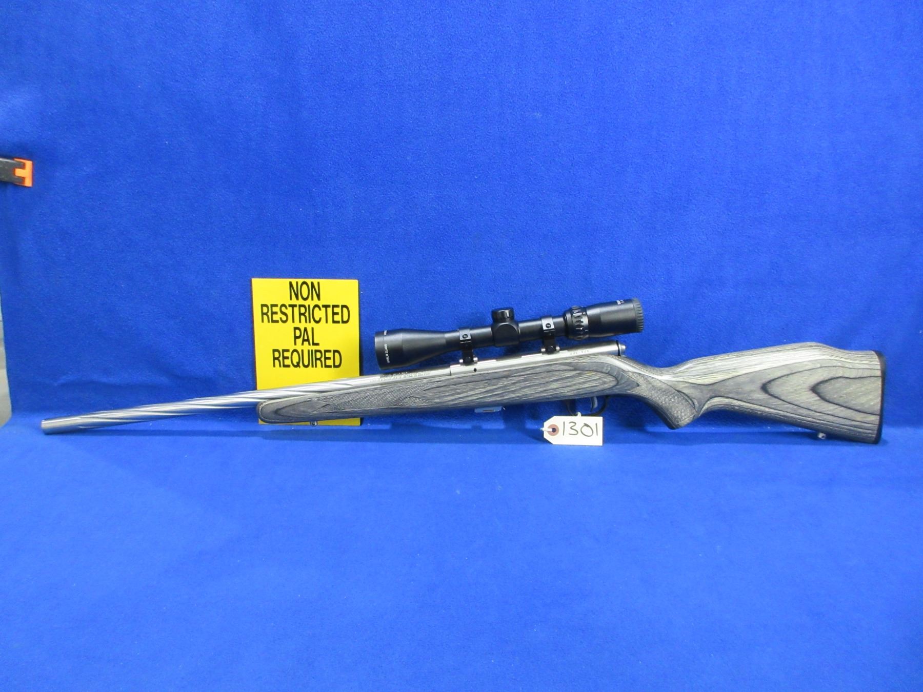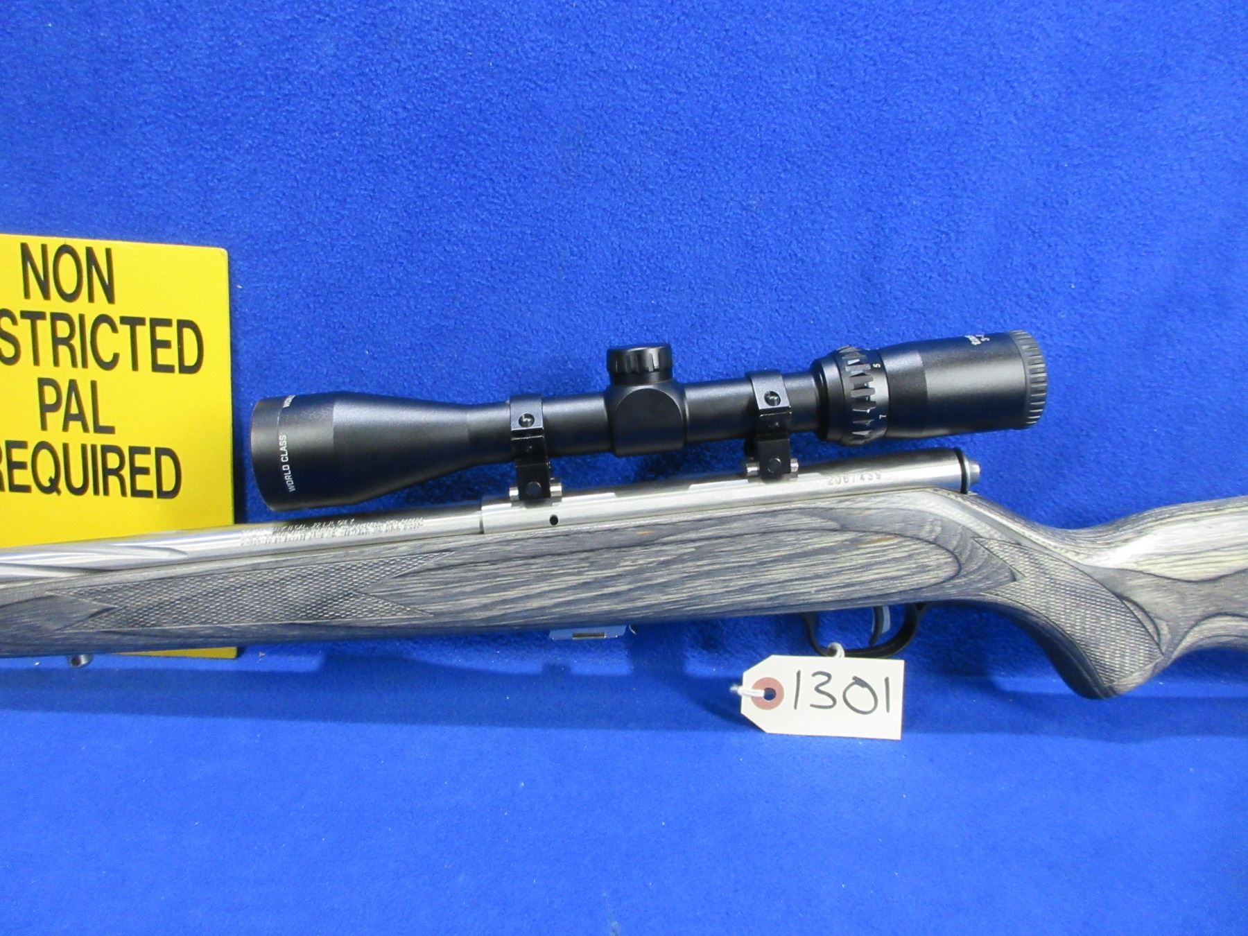 Non-Restricted - Savage Mark II in 22 LR - This bolt action rifle with AccuTrigger and removable magazine appears to be in very good working order. Stainless fluted barrel is 20 3/4", rifling is very good, stainless finish is very good, has no sights but has Tasco World Class 3-9x40 scope - appears clear, duplex reticle. Laminated stock is very good, butt plate good, comes with swivel studs. Ser #2067439