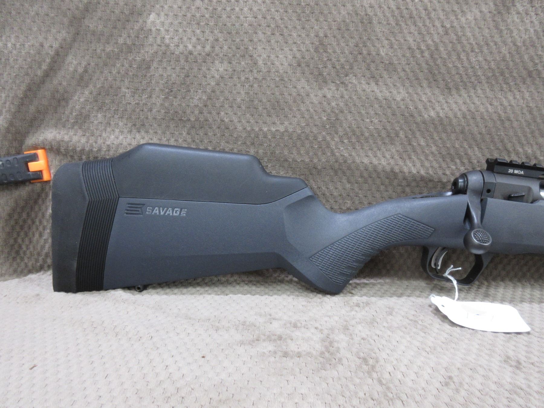 Non-Restricted - Savage Model 110 in 224 Valkyrie - This bolt-action rifle with magazine feed appears to be in like new condition. Heavy barrel is 22 1/4" with threaded barrel end, bluing is very good, rifling very good, has no sights but has Picatinny Rail, synthetic stock very good, rubber recoil pad good, comes with 3 swivel studs, Ser # N610754