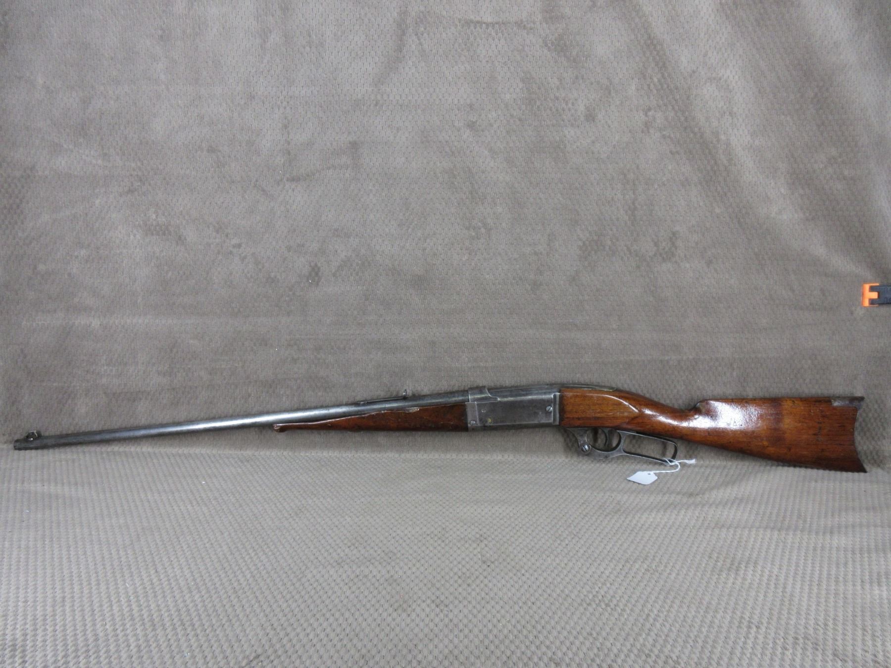 Non-Restricted - Savage Model 1899 in 30-30 Win. - This lever action rifle appears to be in working order. Barrel is 26", bluing is mostly gone, rifling is good but dark, has both sights, rear sight missing ramp, stock is repaired & coming apart again, stock is loose to action, forearm poor to fair, cresent metal butt plate.