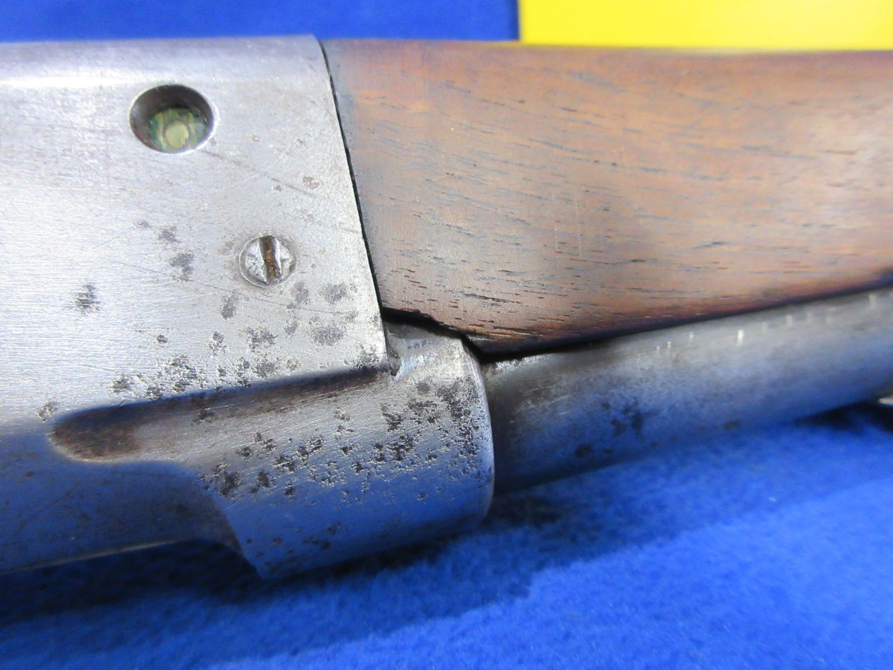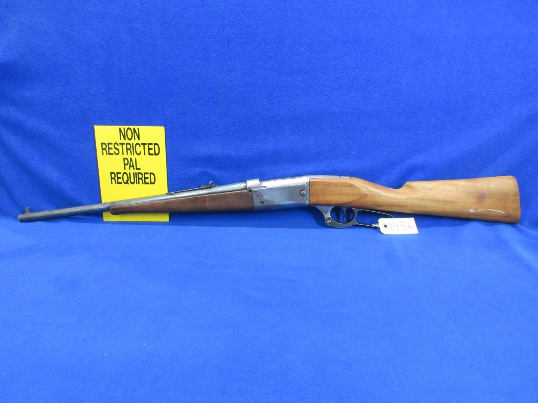 Non-Restricted - Savage Model 1899 in 38-55 - This lever action rifle with internal rotary magazine appears to be in good working order. Barrel is 18 1/2" and appears to have been shortened, rifling is fair to good, bluing is gone, has both sights but front sight appears incorrect to the gun, stock (not original) and forearm are good with many usage marks, forearm appears to have an incorrect screw. Ser #68300