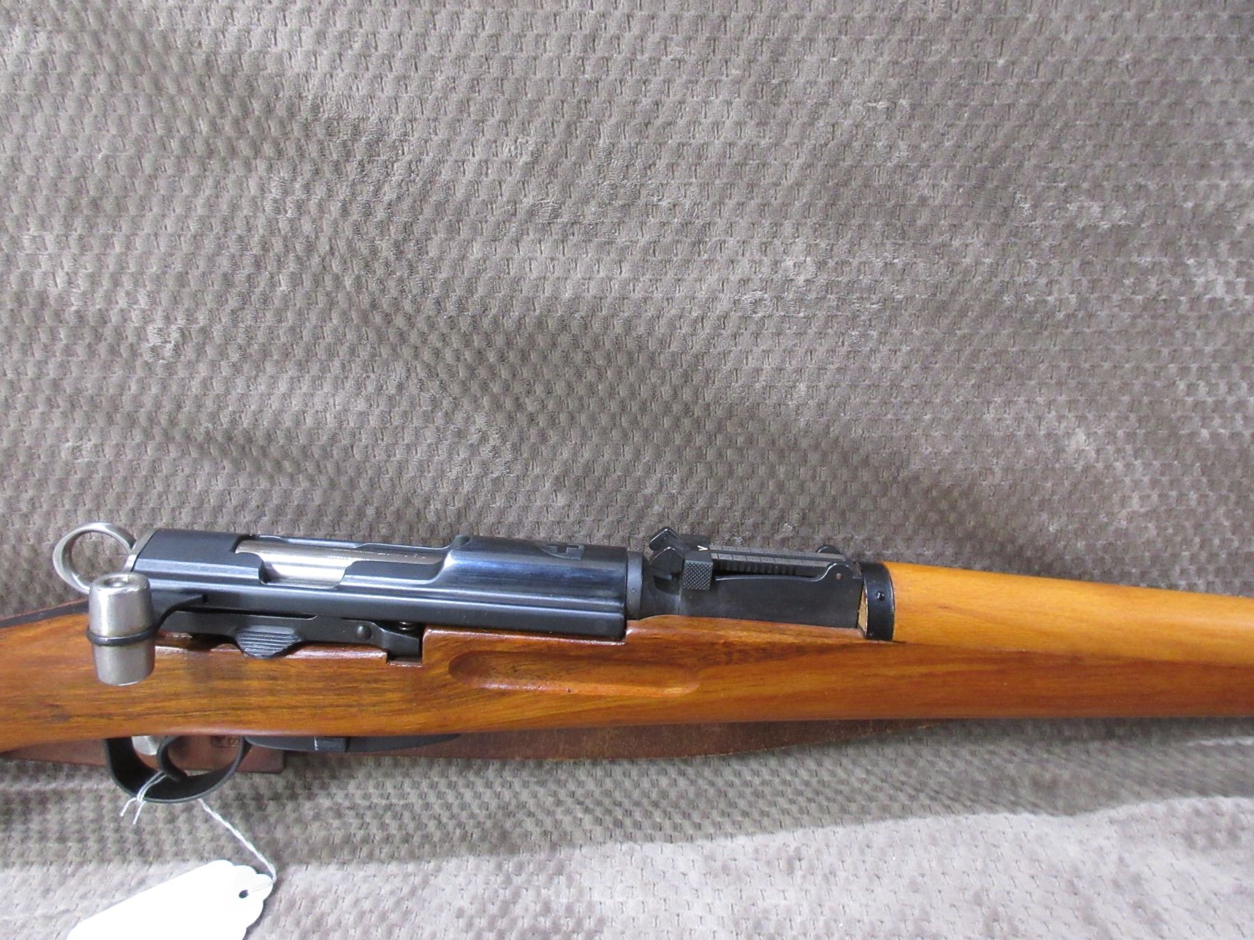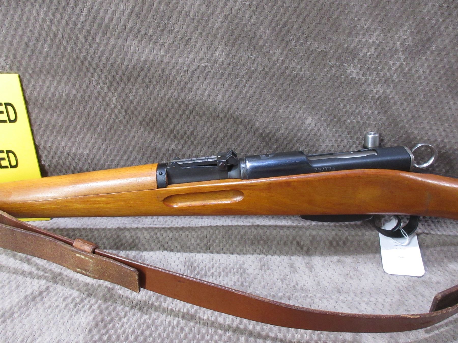 Non-Restricted - Schmidt Ruben Model K31 in 7.5 x 55 - This straight pull bolt-action rifle with magazine feed appears to be in good to very good working order. Barrel 25 1/2", bluing is good to very good, rifling is good to very good, has both sights, stock good to very good with large mark on pistol grip, metal butt plate good, appears to be all numbers matching, includes muzzle cover, has swivels and leather strap, Ser # 797773