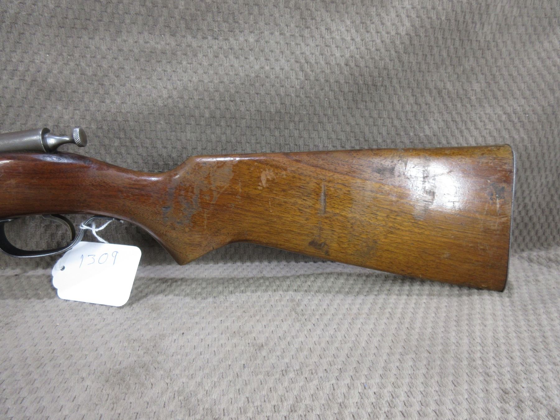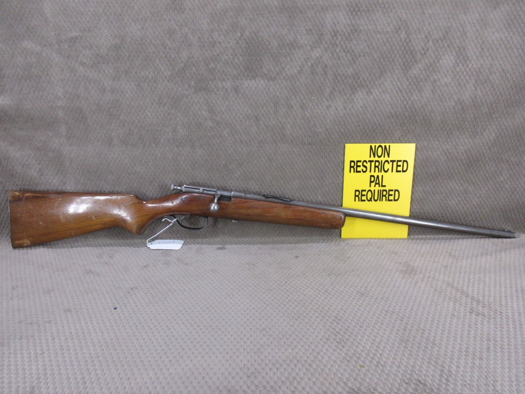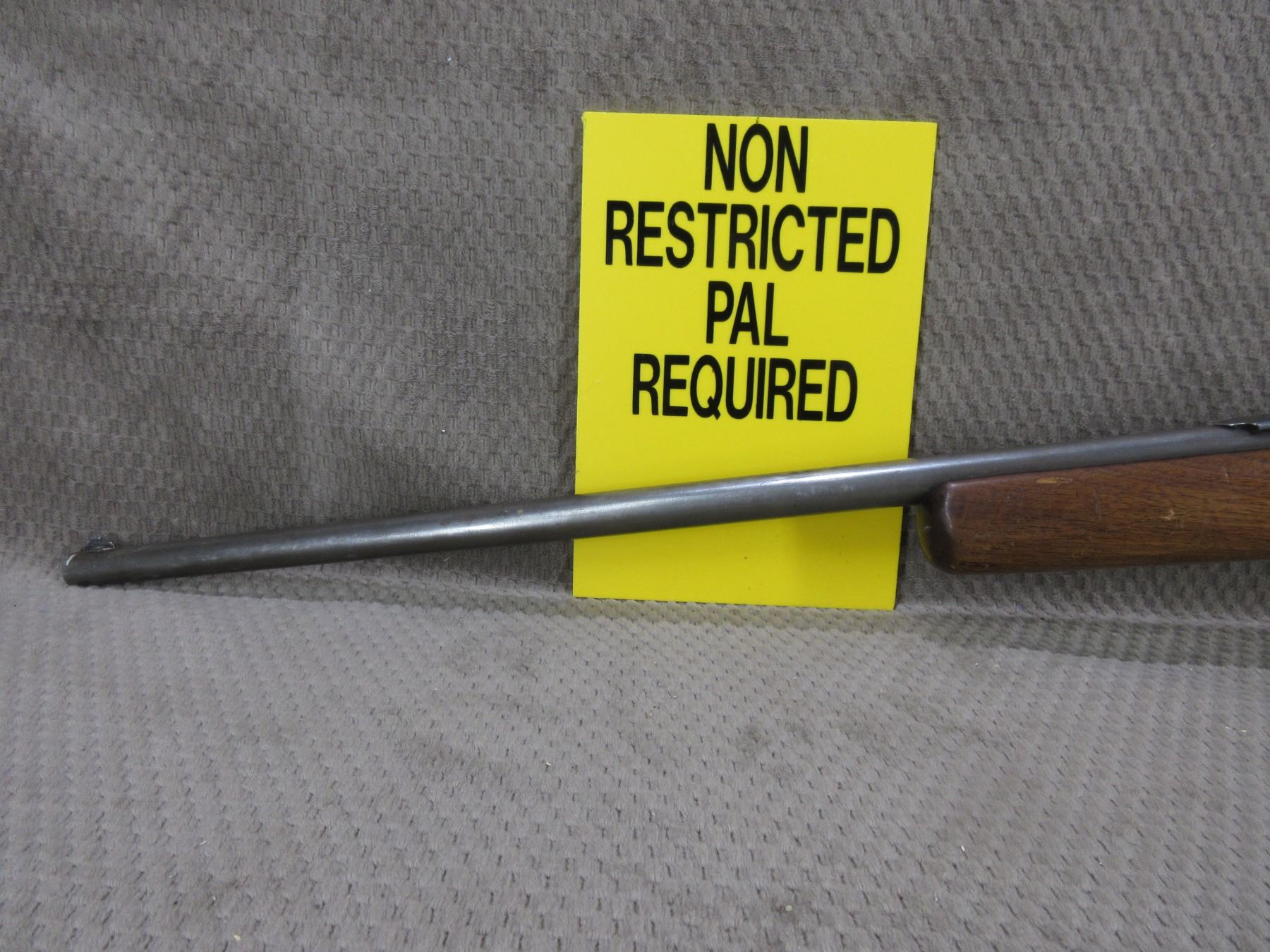 Non-Restricted - Sniper by Cooey like Model 39 in 22 LR - This single shot bolt-action rifle appears to be in good to very good working order. Barrel 22", bluing is grey, rifling is good to very good, has both sights, stock original with 2 swivel holes and finish is fair, metal butt plate, made 1937 - 1950's for Marshall Wells Hardware, Ser # None